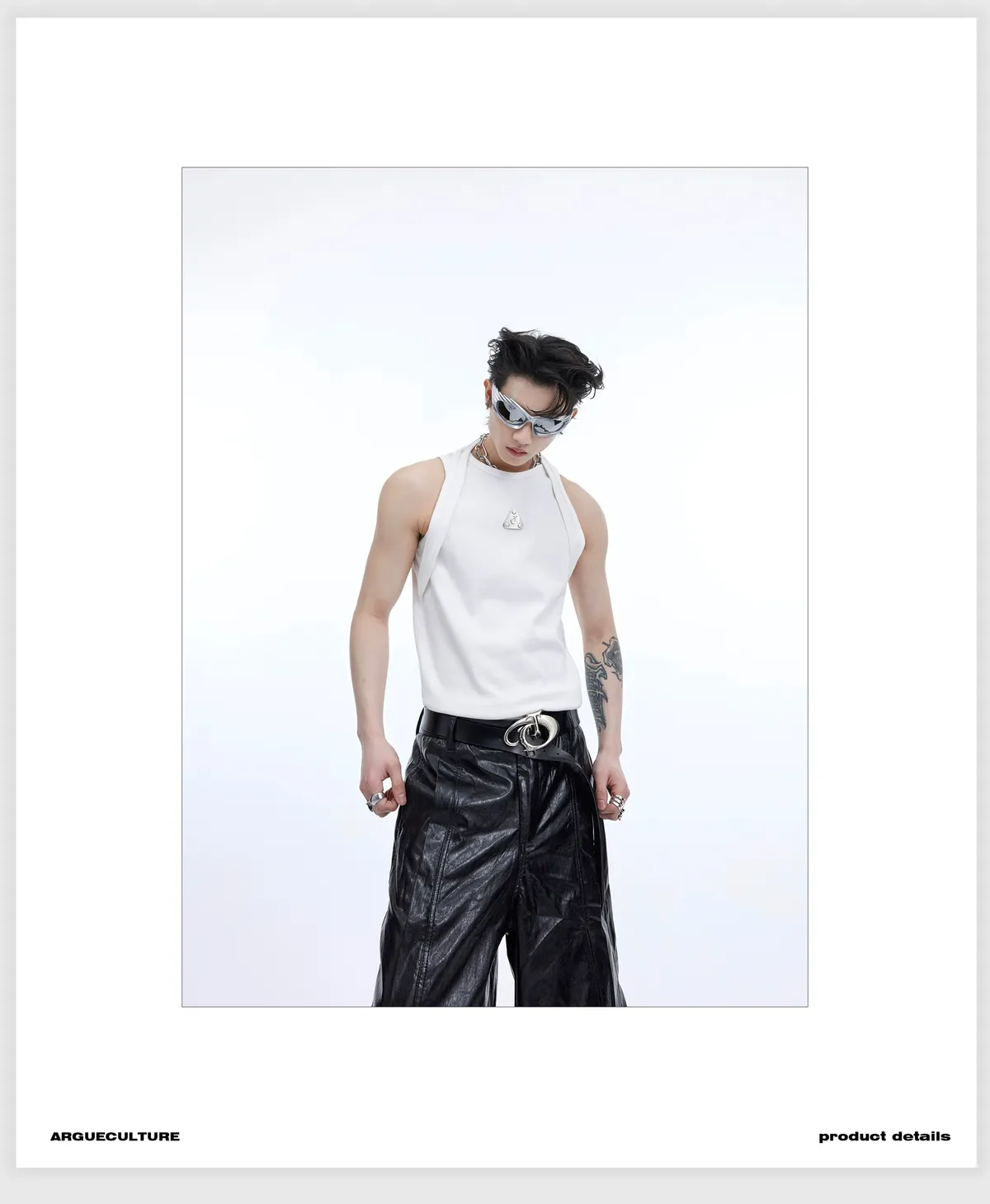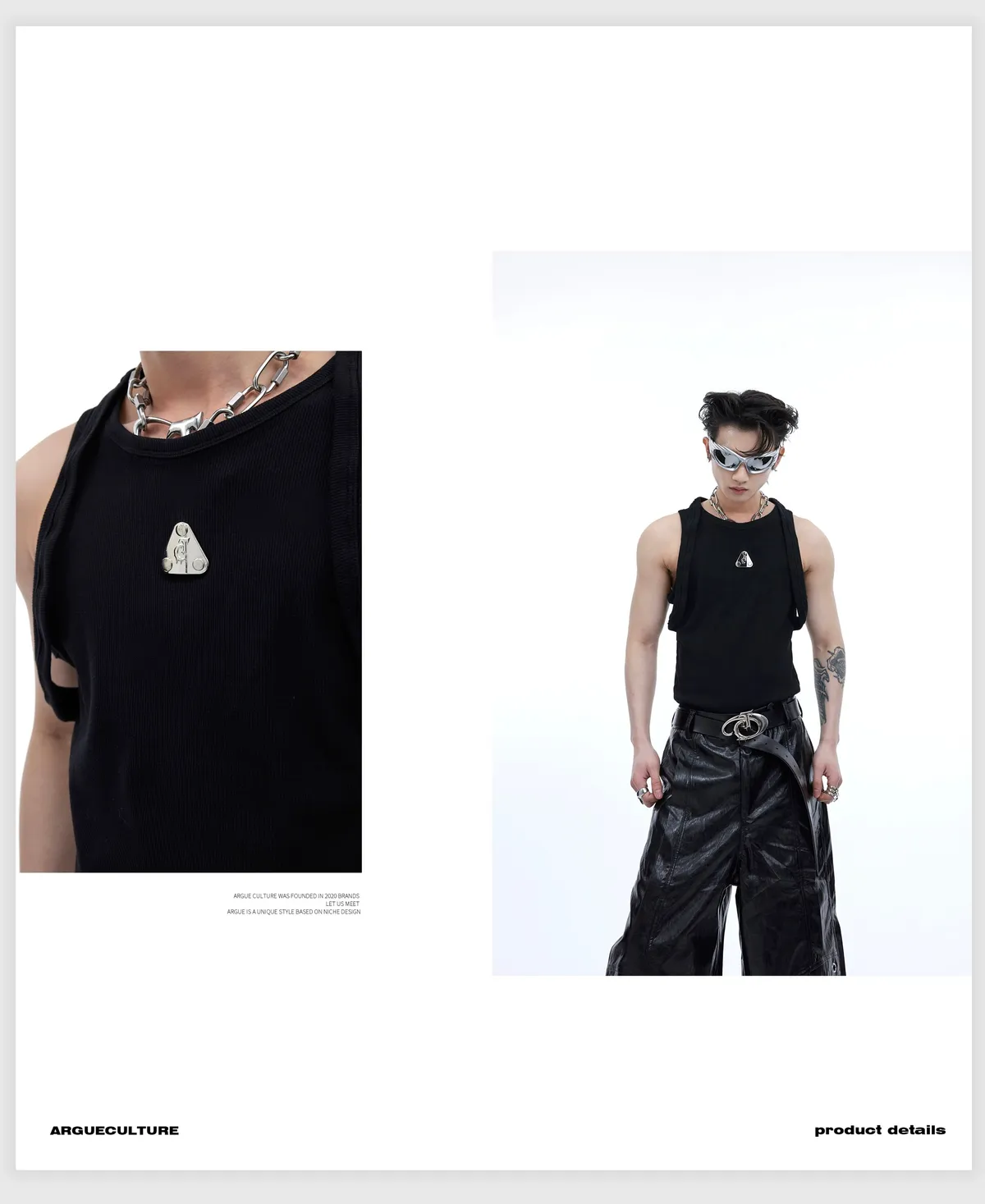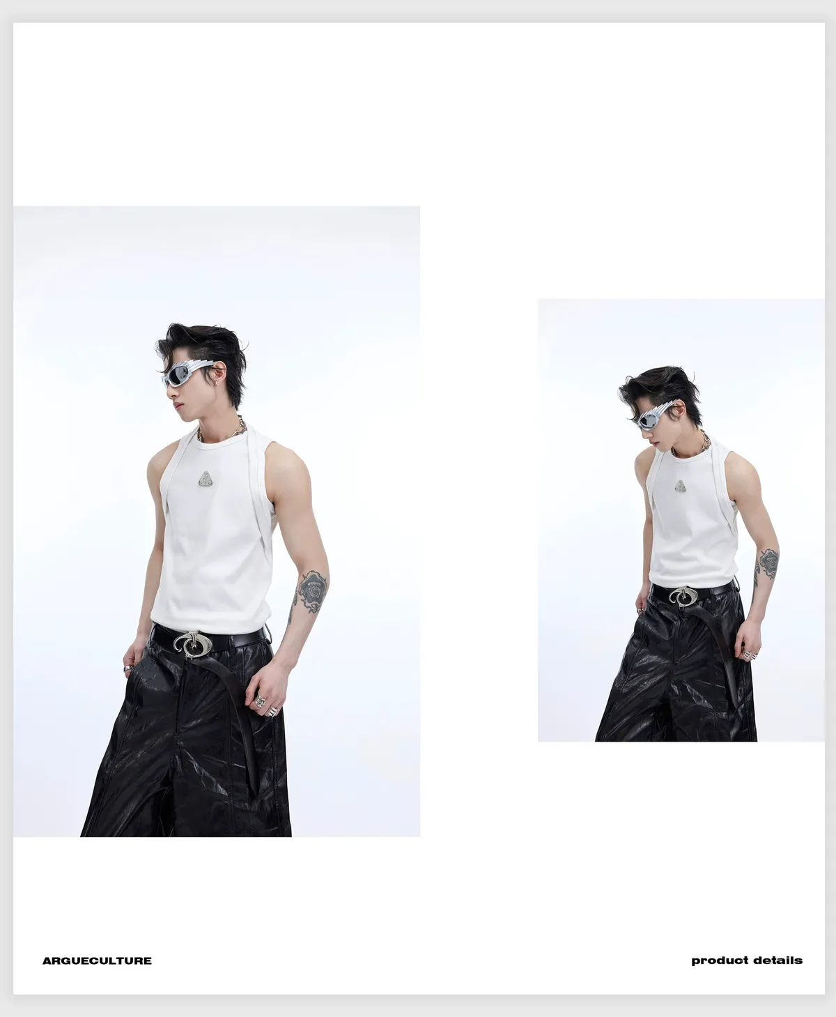 設計感 雙層肩帶 金屬LOGO 背心(黑/白)
