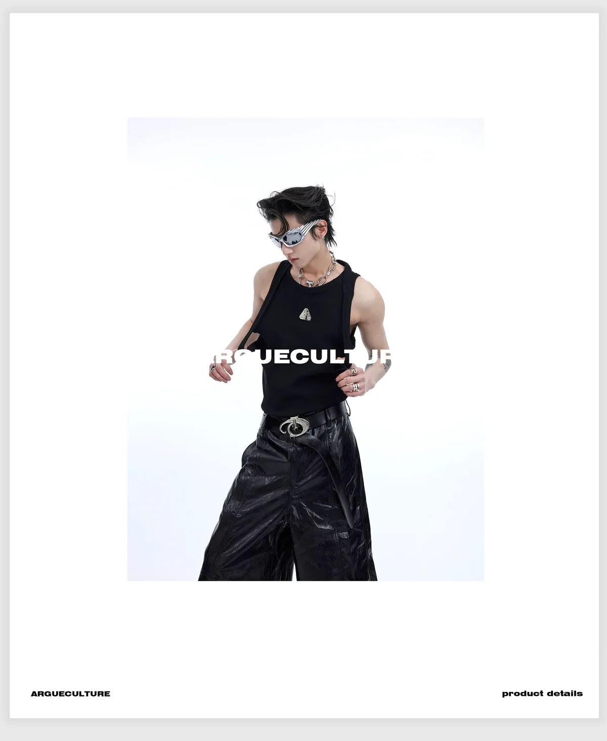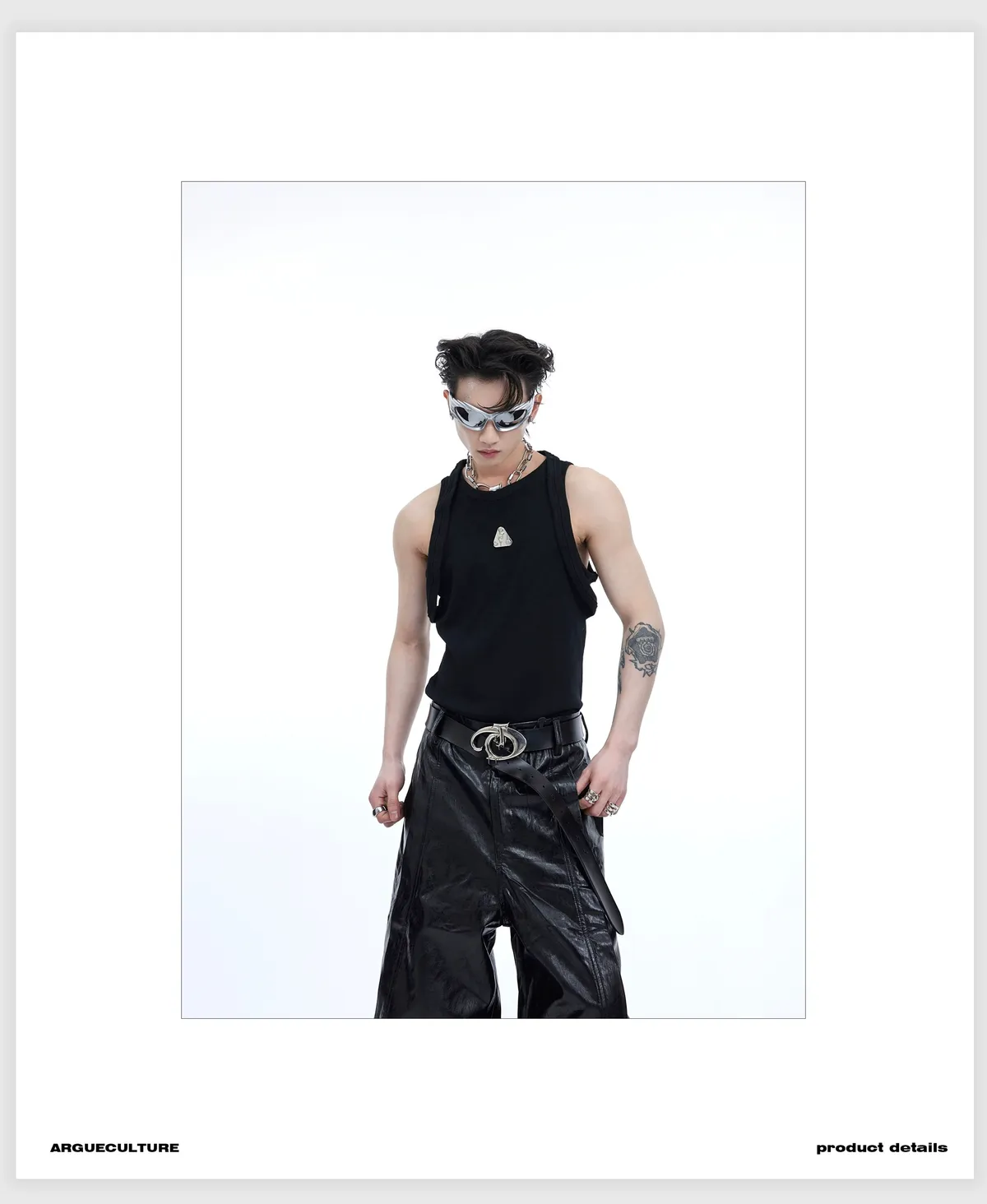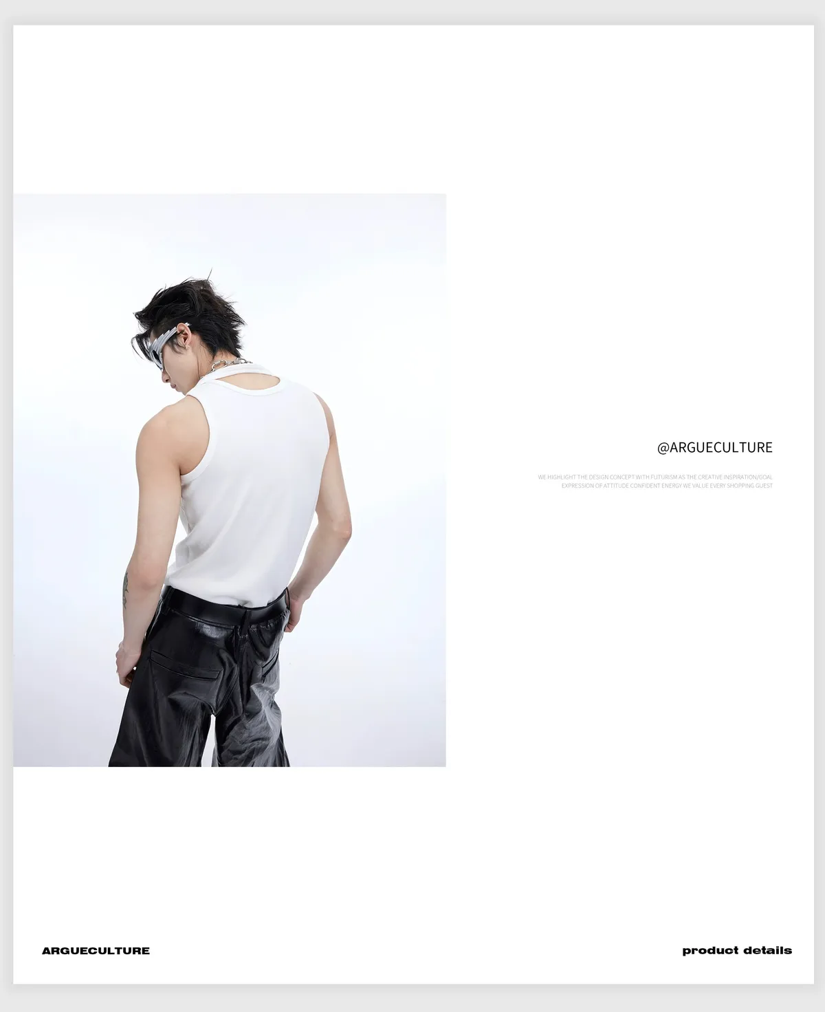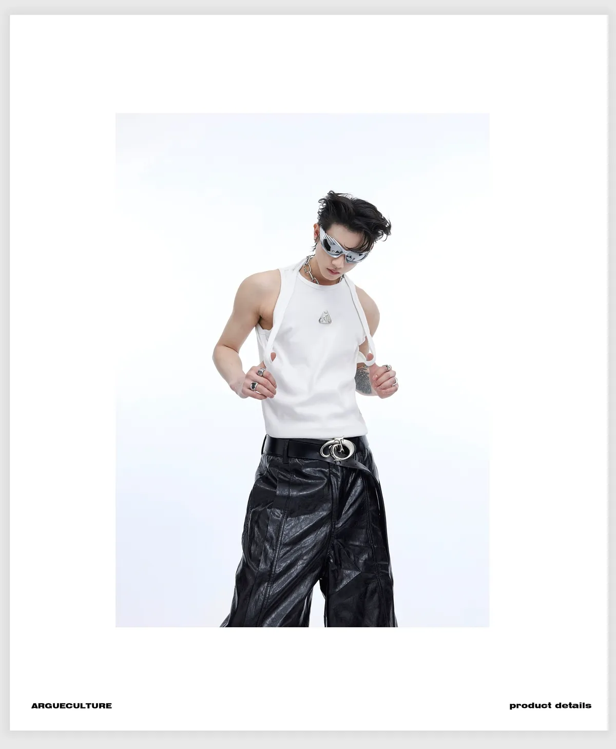 設計感 雙層肩帶 金屬LOGO 背心(黑/白)