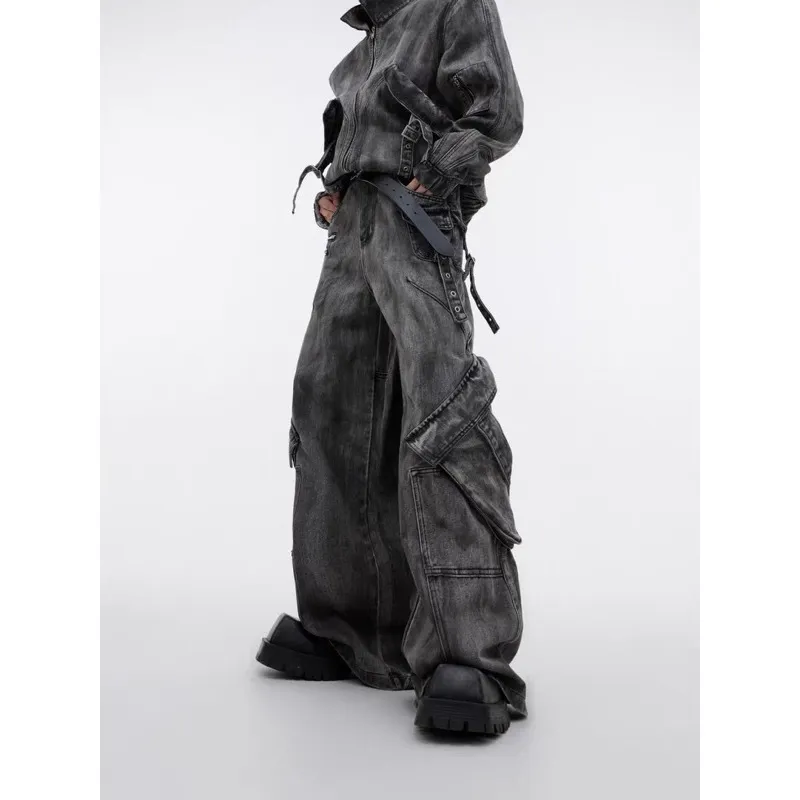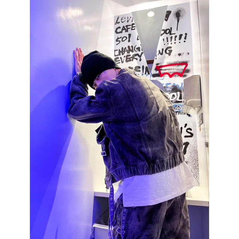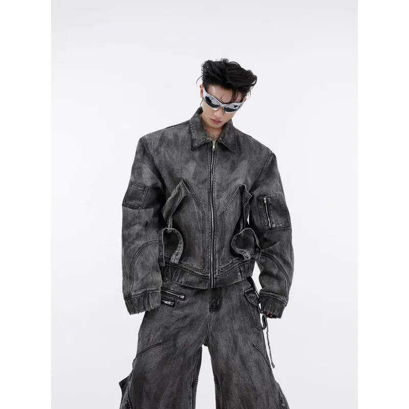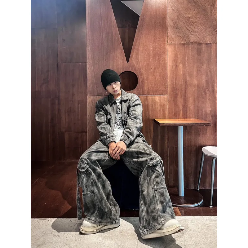 ARGUE 舞台公演常見單品 水洗灰 做舊重磅 牛仔外套 牛仔褲 套裝