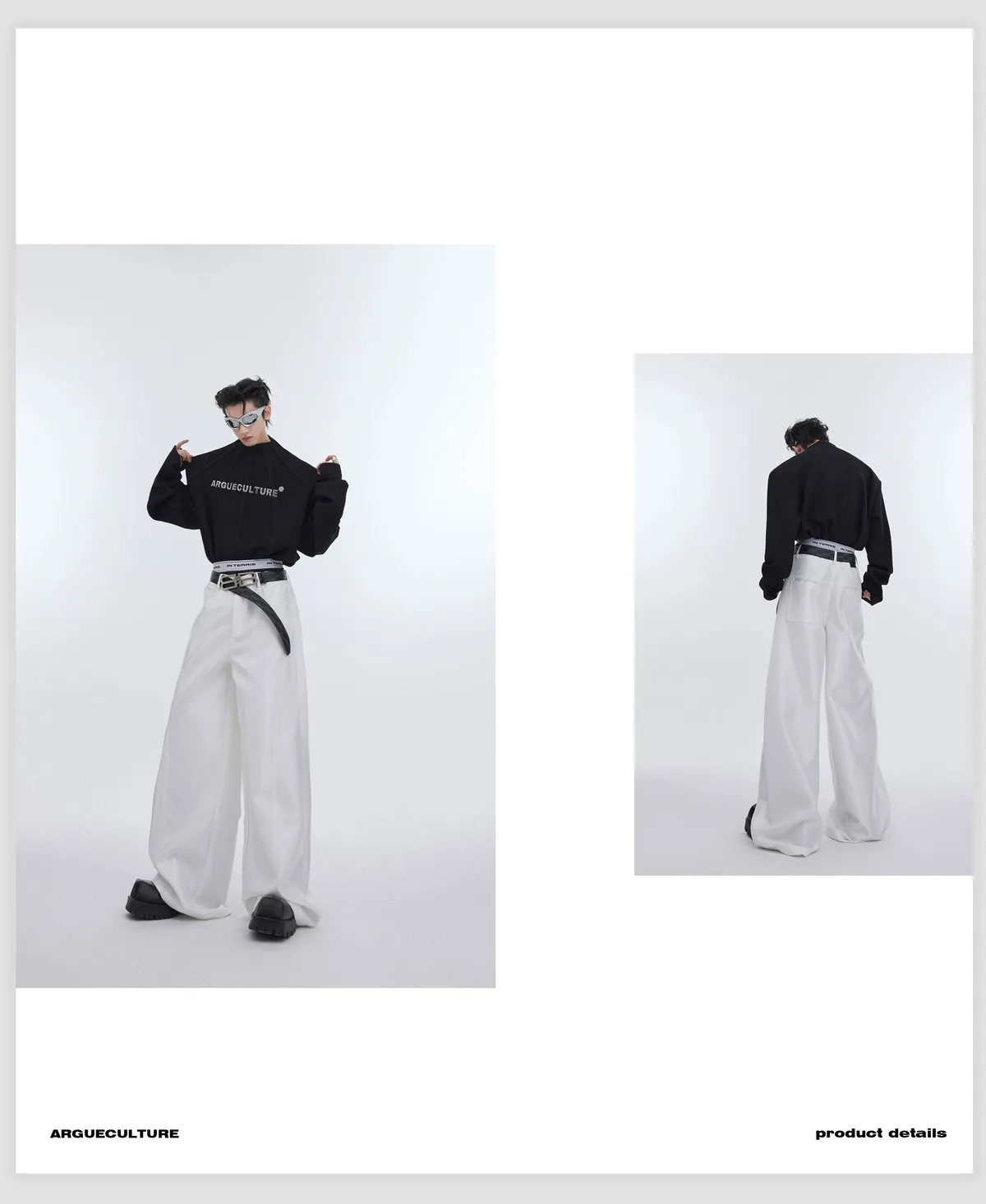 AC 液態流光 闊腿 西裝褲 長褲(黑/白)