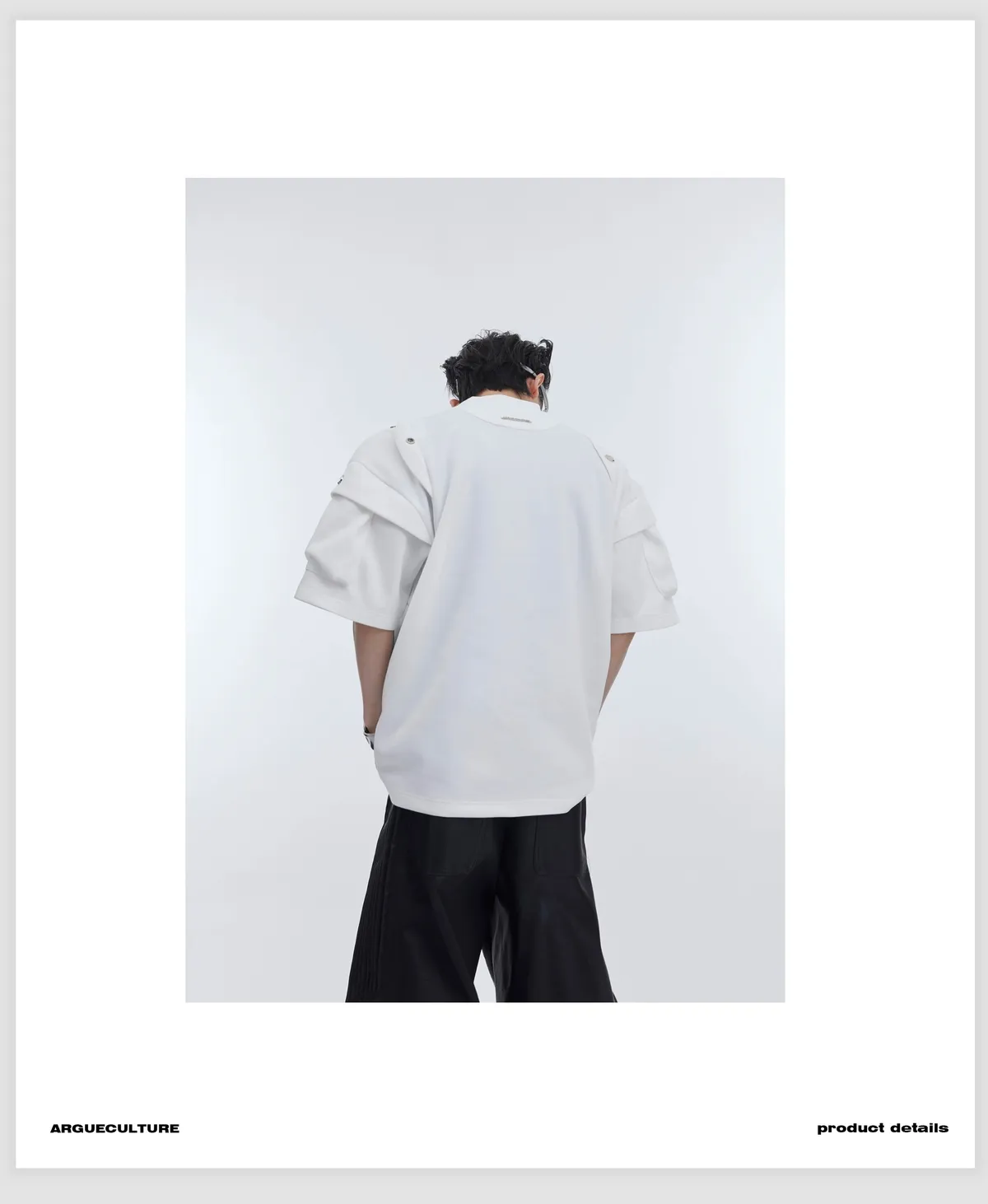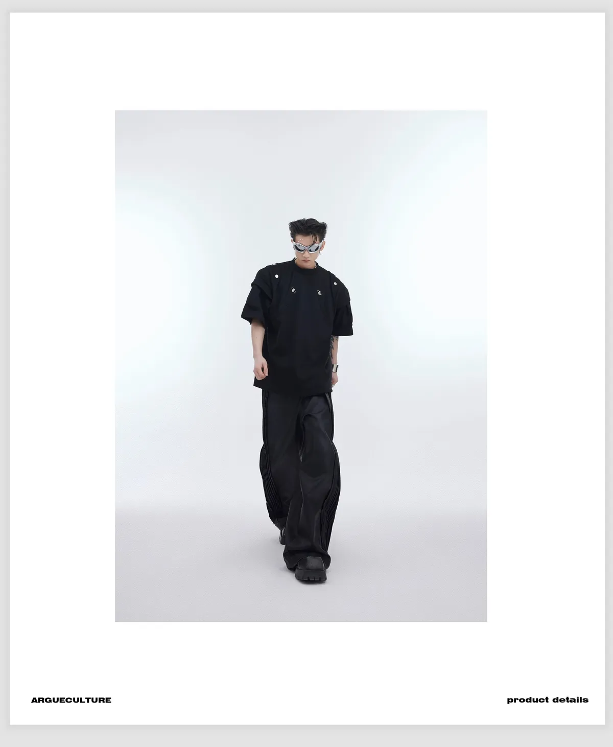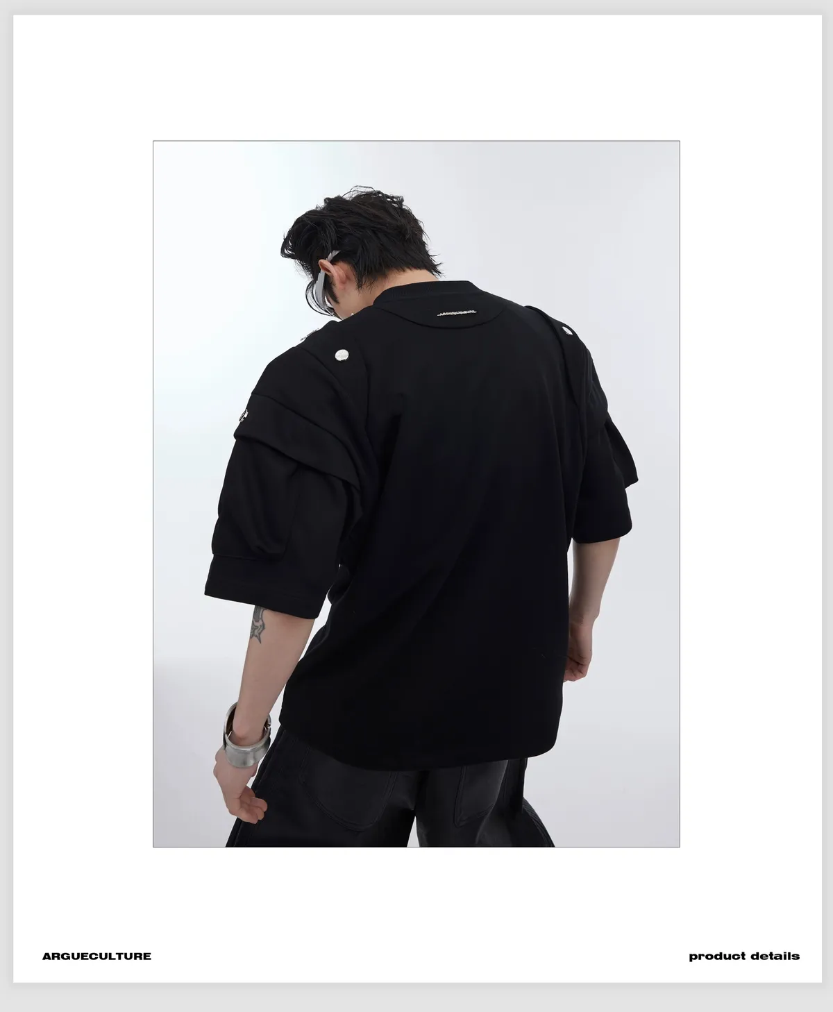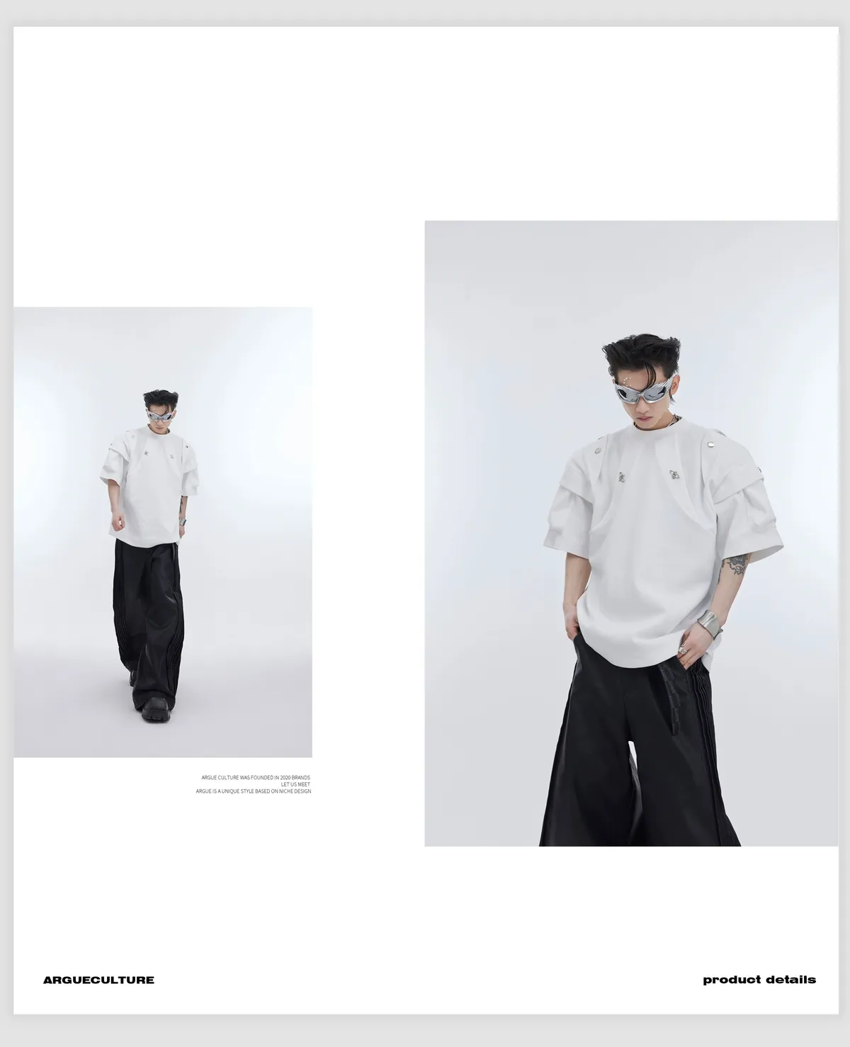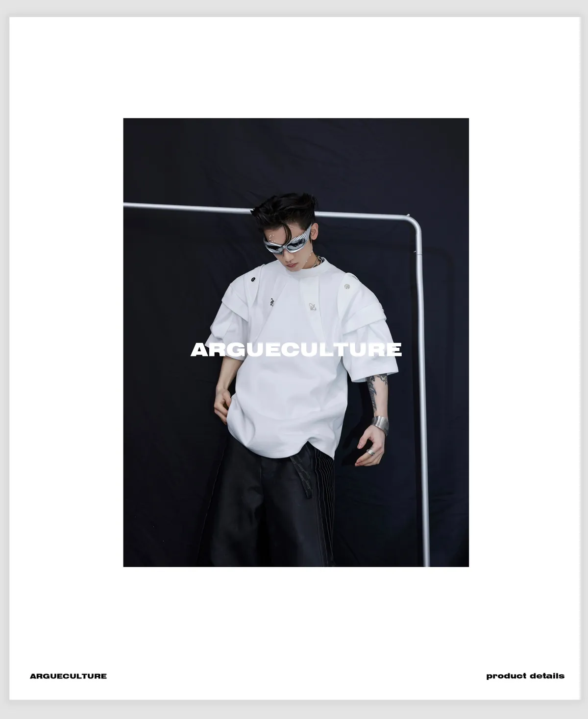 AC 重磅 盔甲感 大牌 分割設計 短袖 TEE(黑/白)