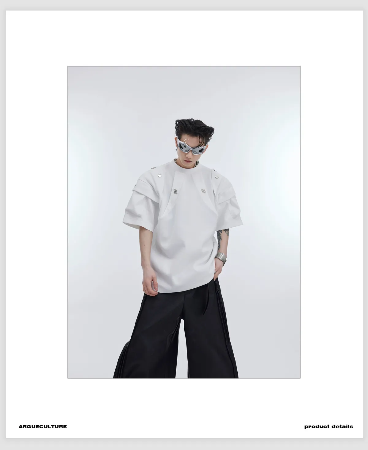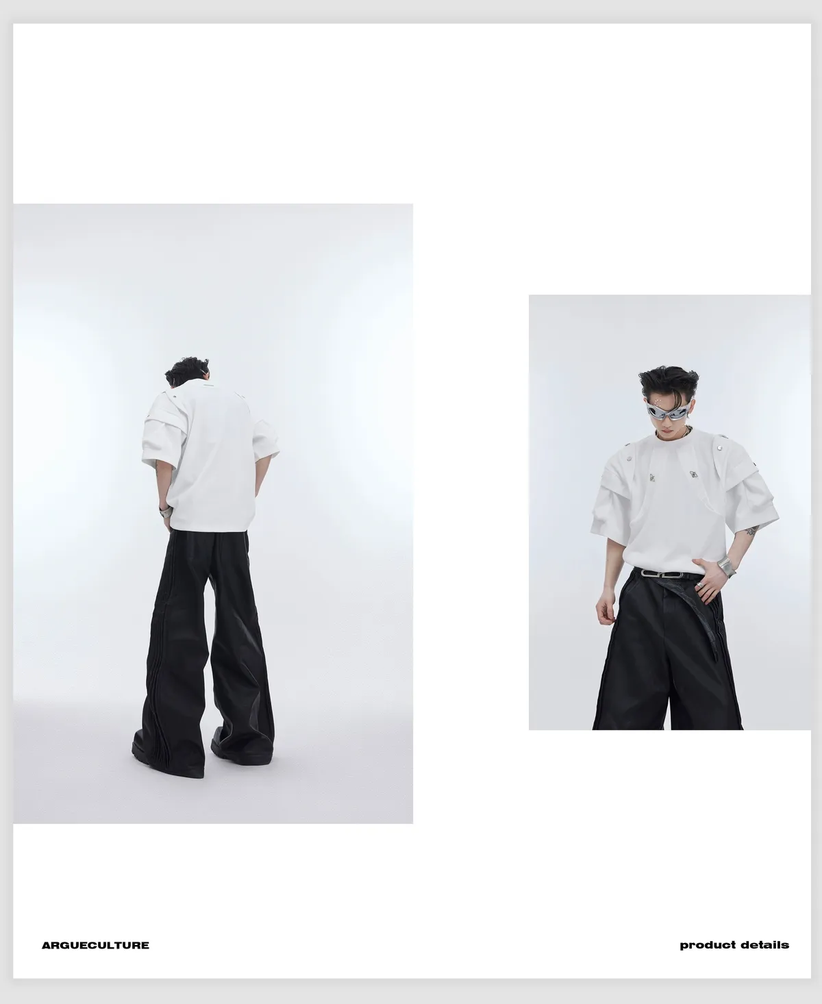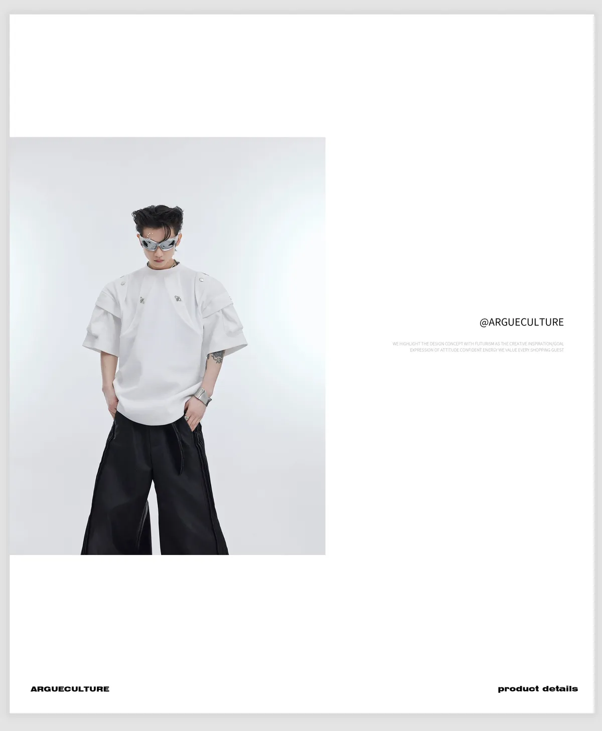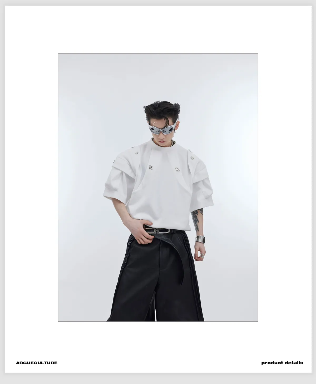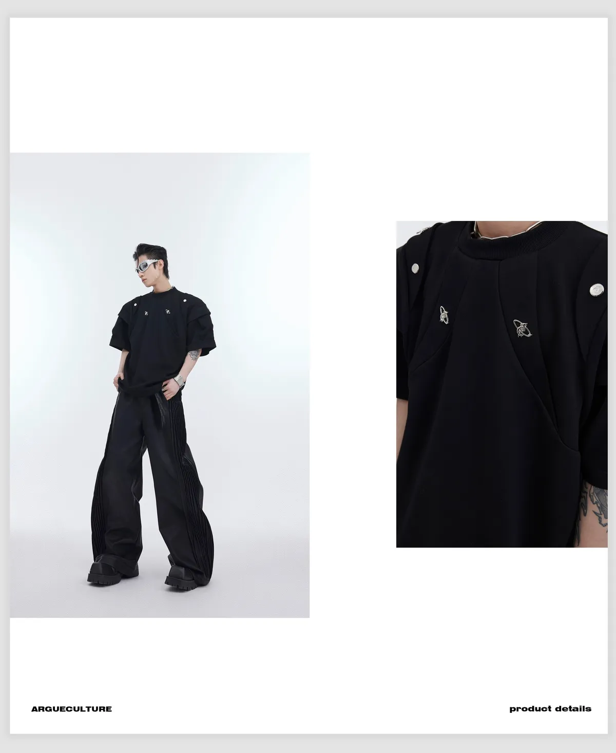 AC 重磅 盔甲感 大牌 分割設計 短袖 TEE(黑/白)