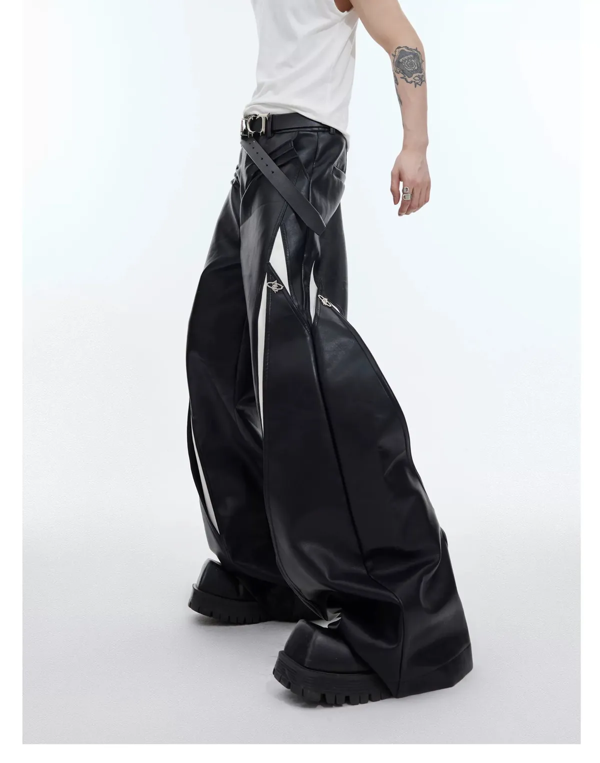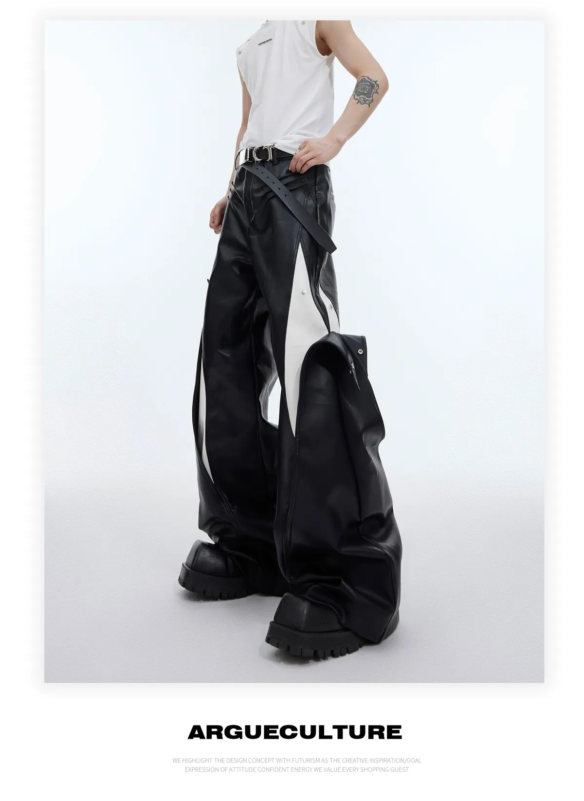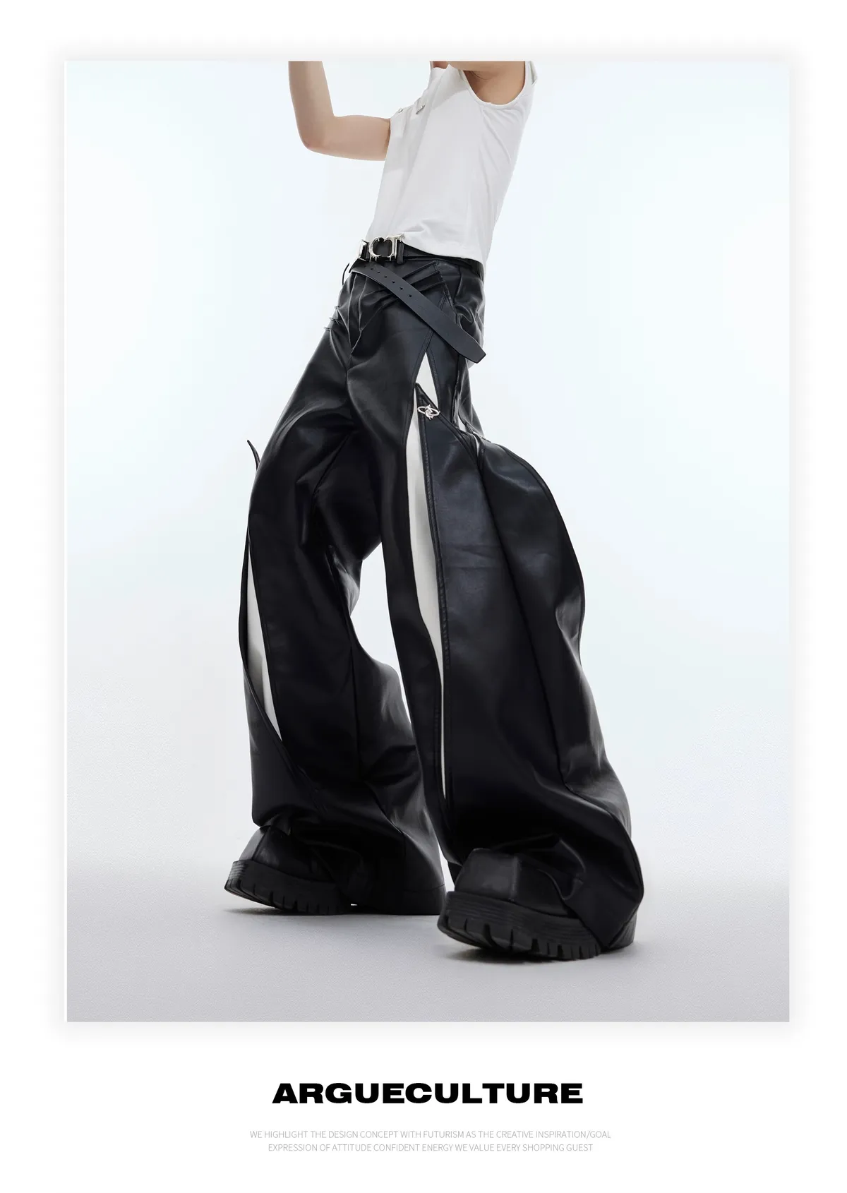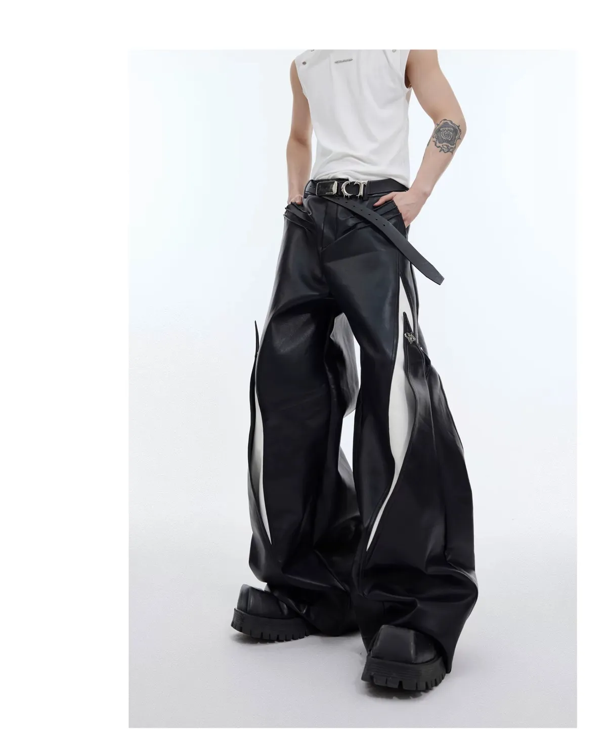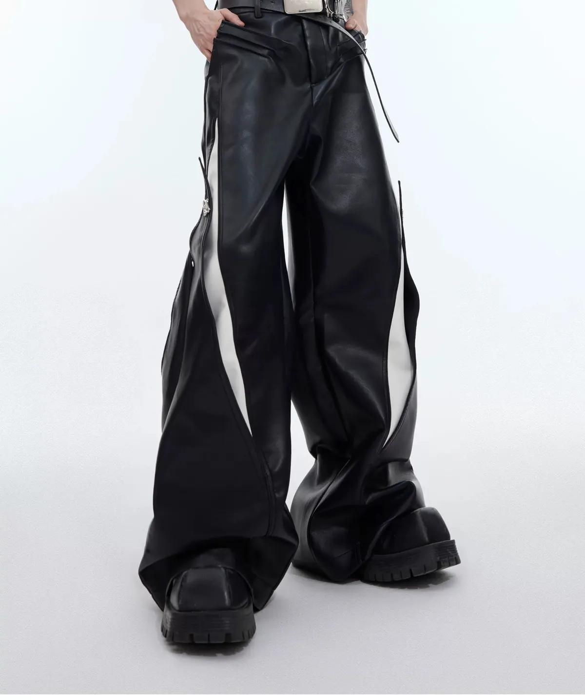 AC 大牌感 可調式設計 黑白 撞色 皮褲