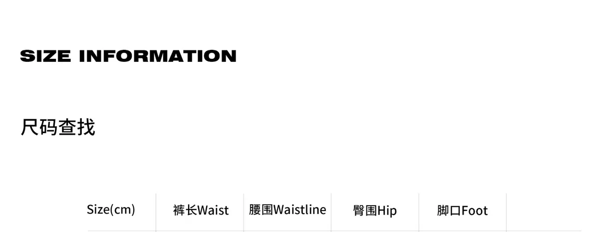 | 尺寸(cm) | 腰圍 | 褲長 | 褲口 | 臀圍 |