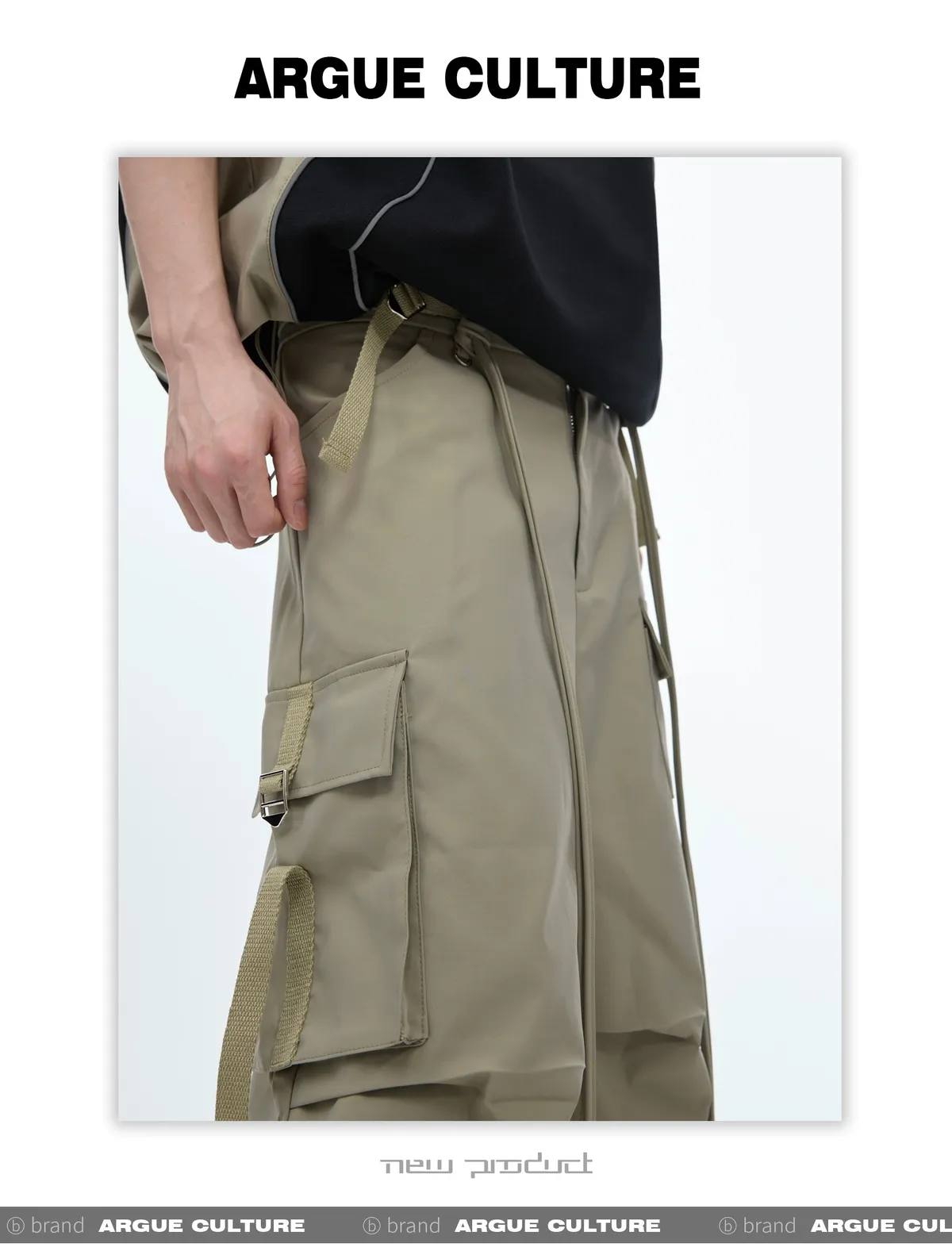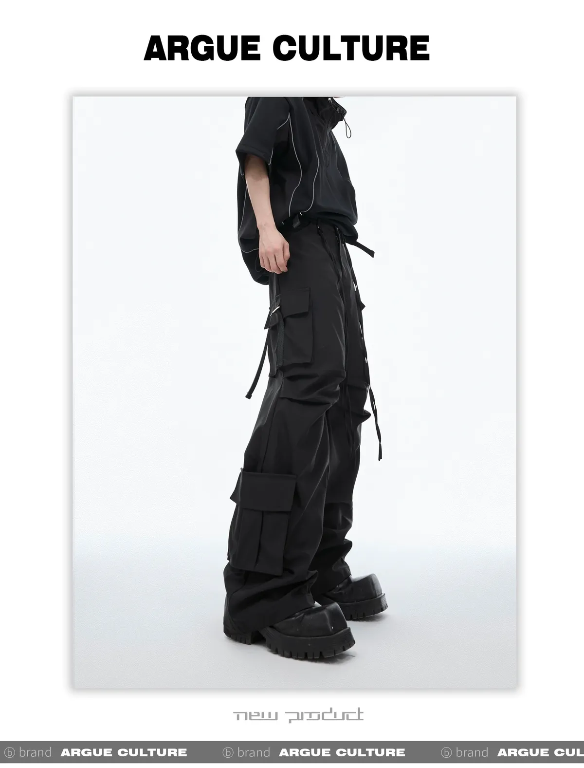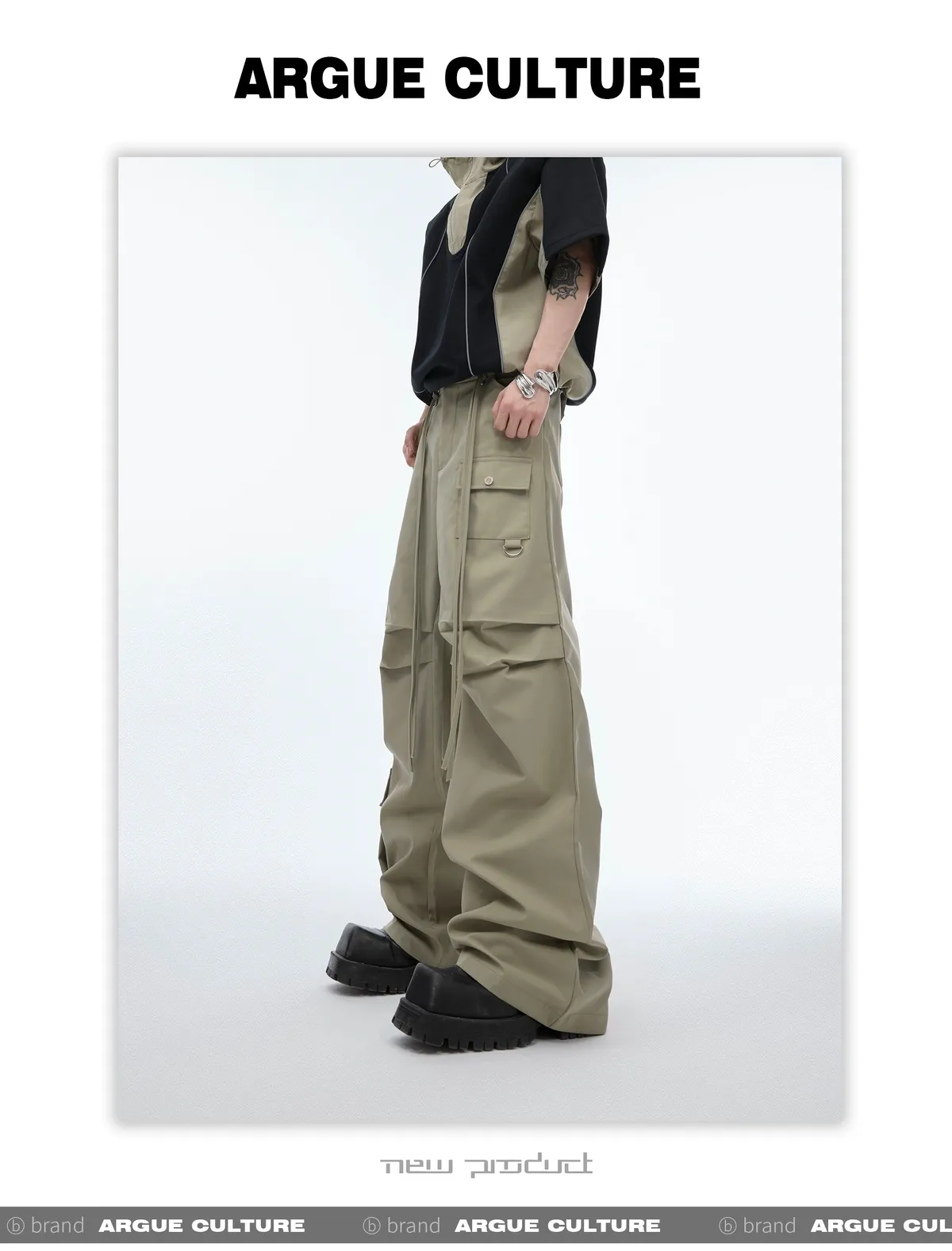 影面流液 尼龍 工裝感 小立領 紮染 背心 闊腿褲 套裝(黑/棕)