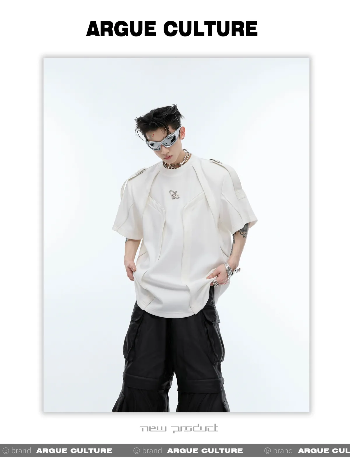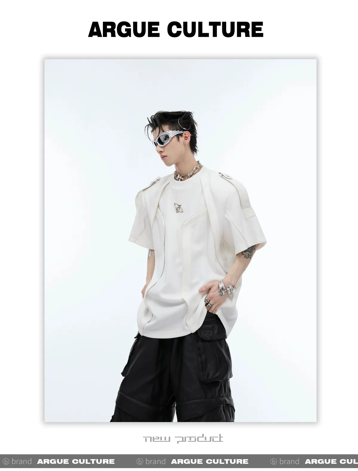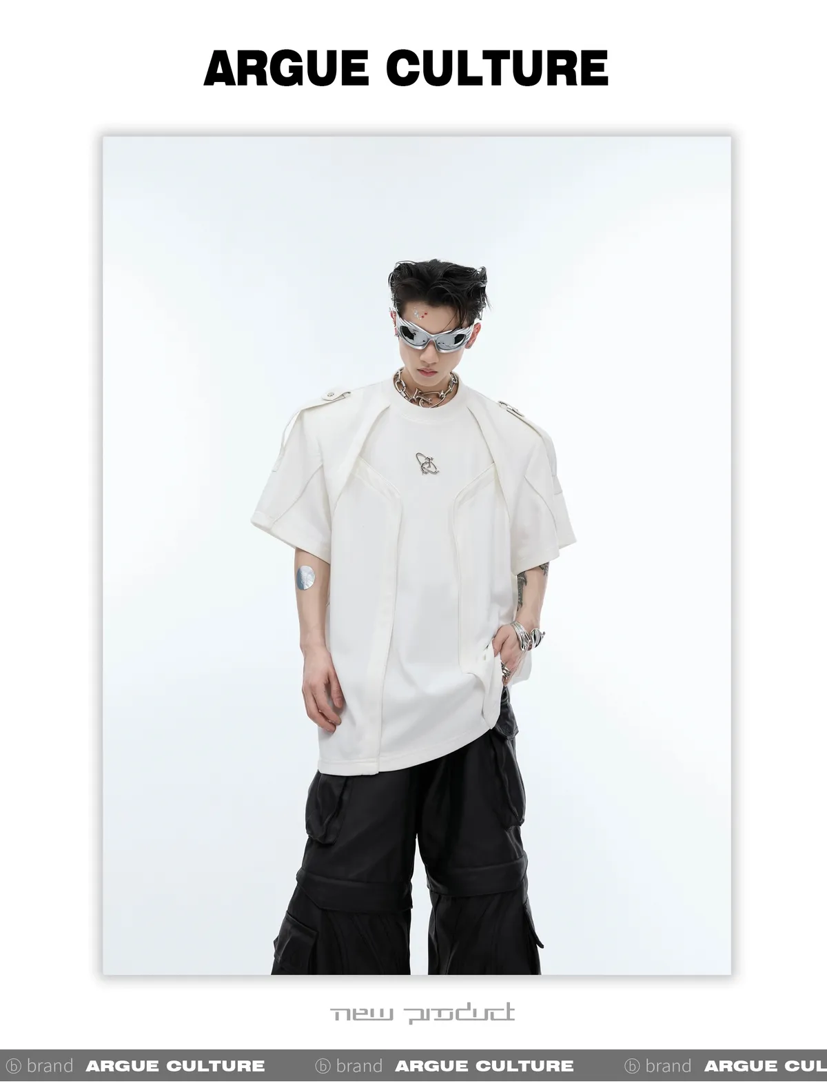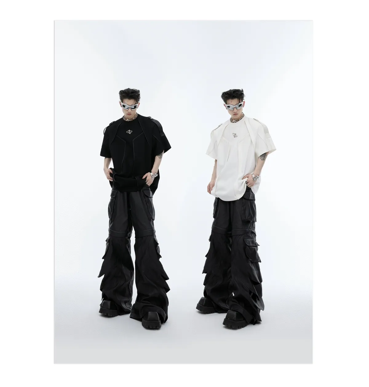 重工拼接 飄帶 解構 線條 短袖 TEE(黑/白)