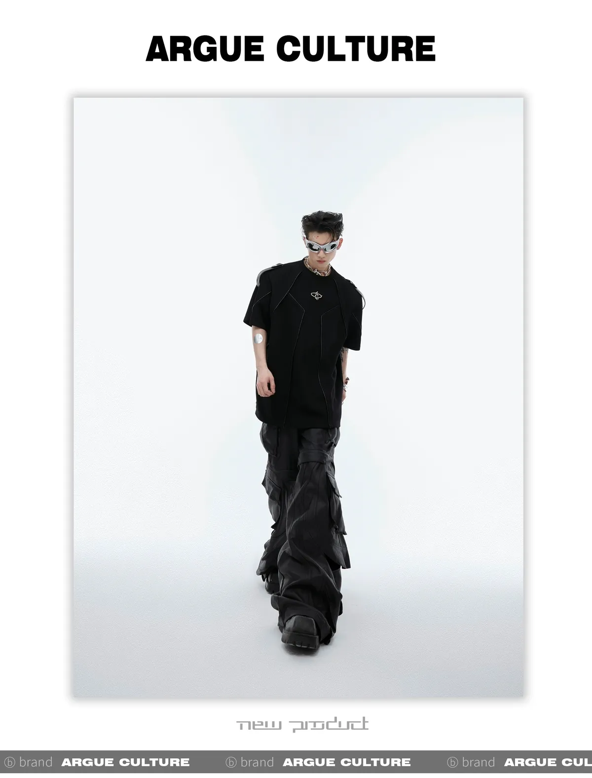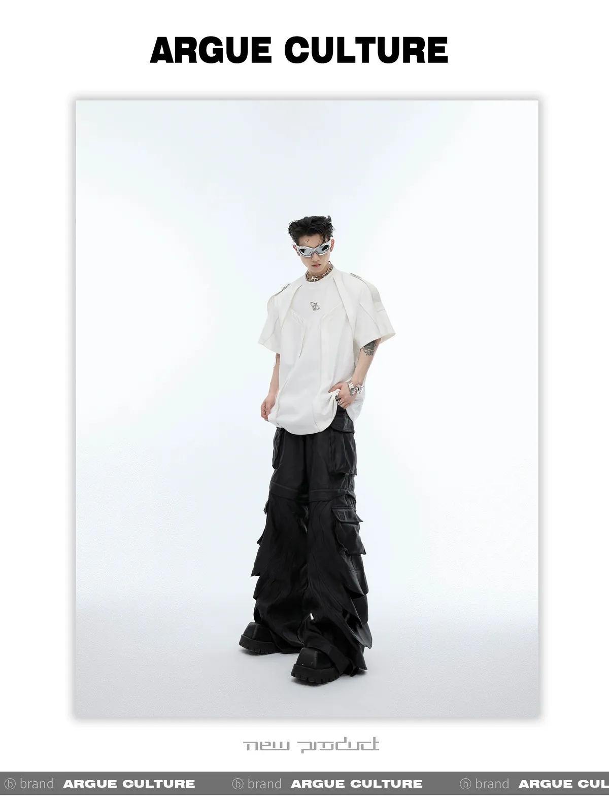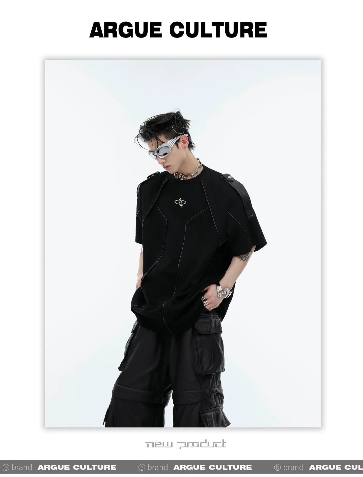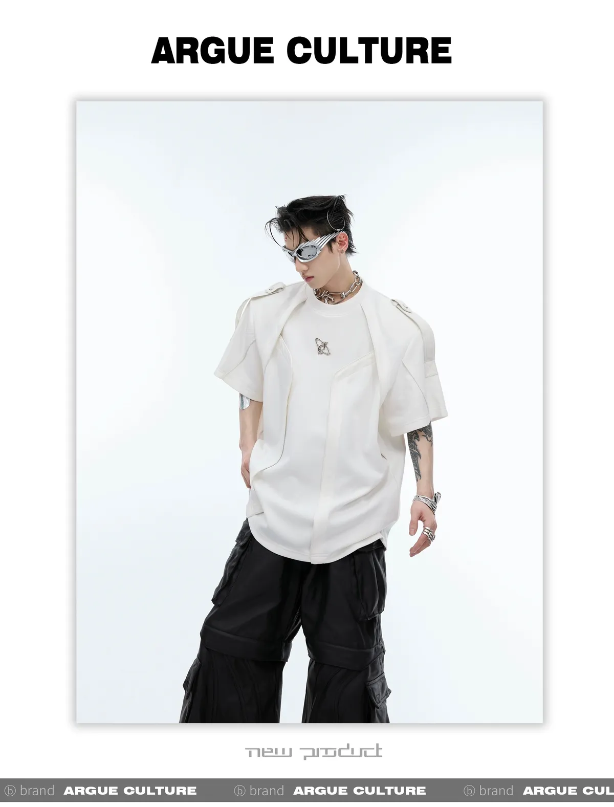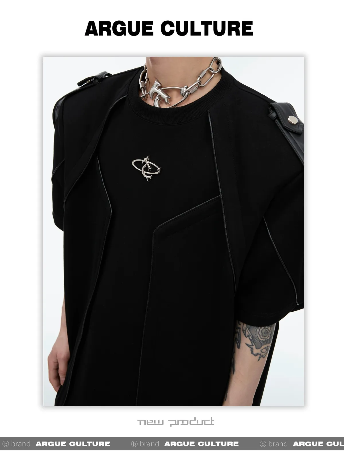 重工拼接 飄帶 解構 線條 短袖 TEE(黑/白)