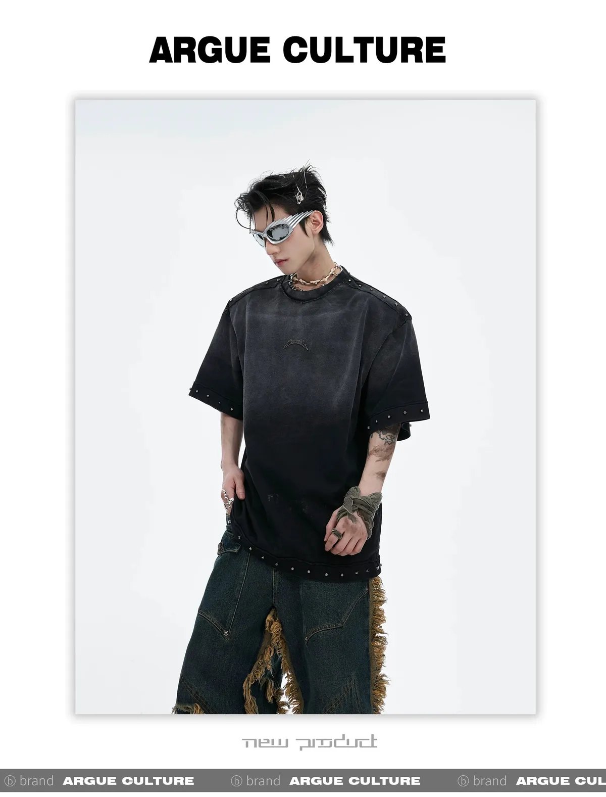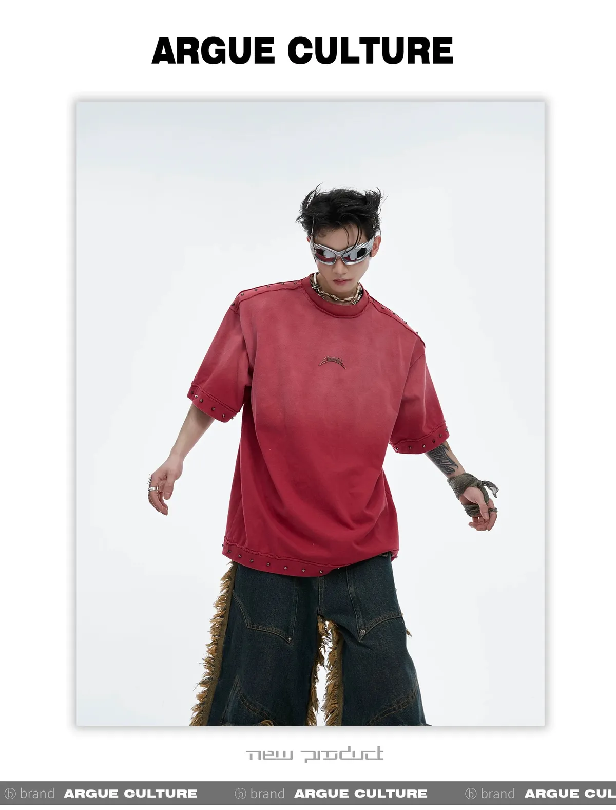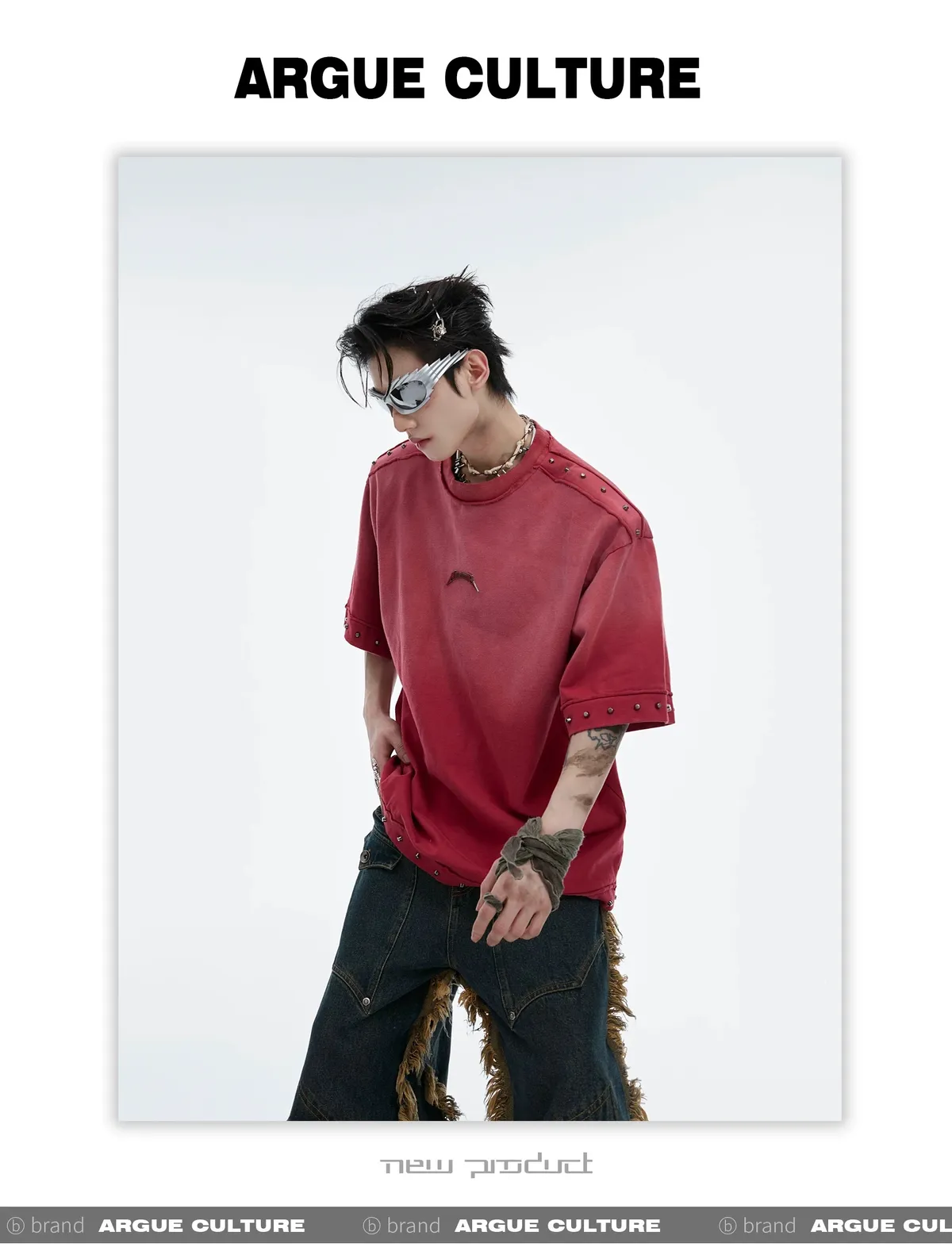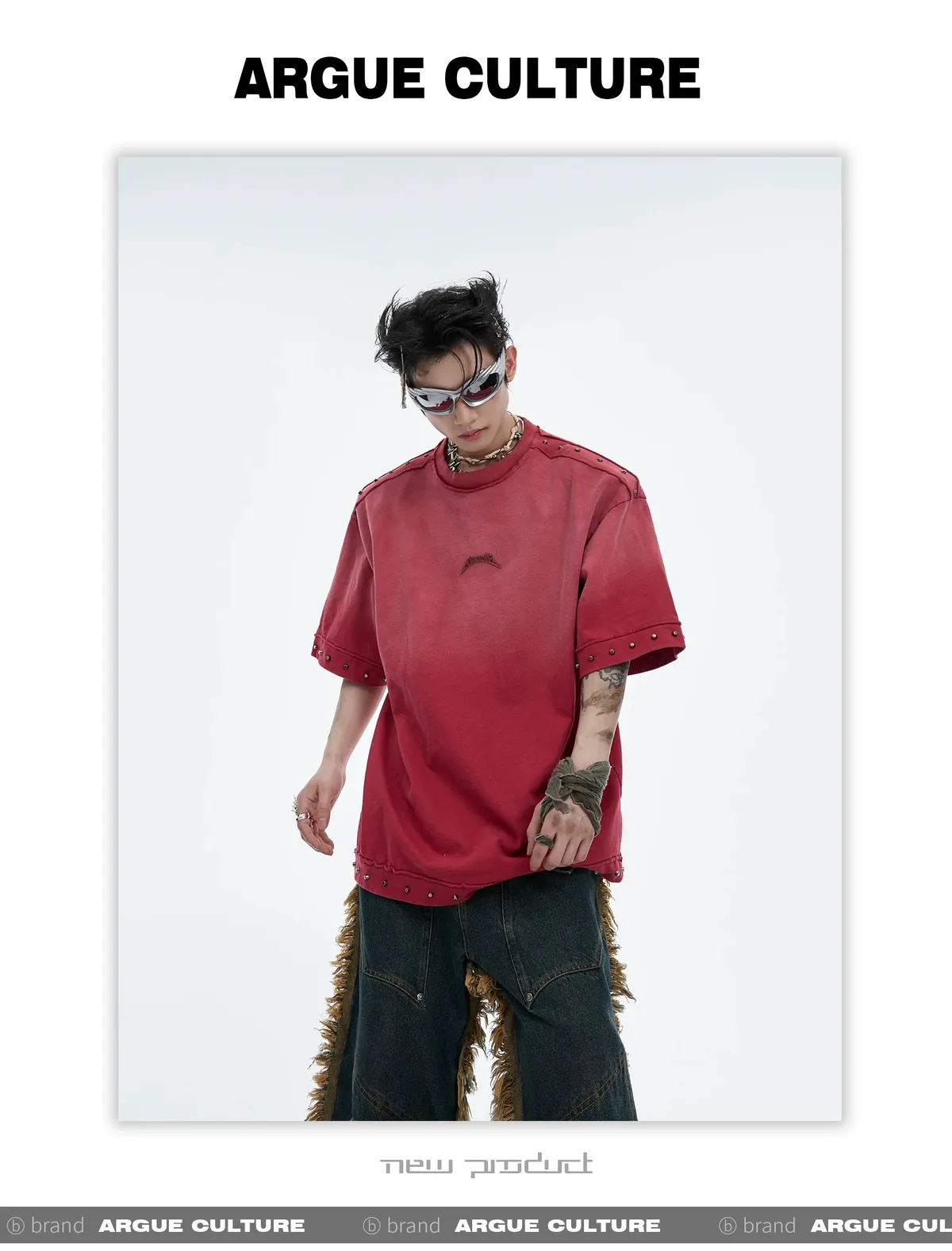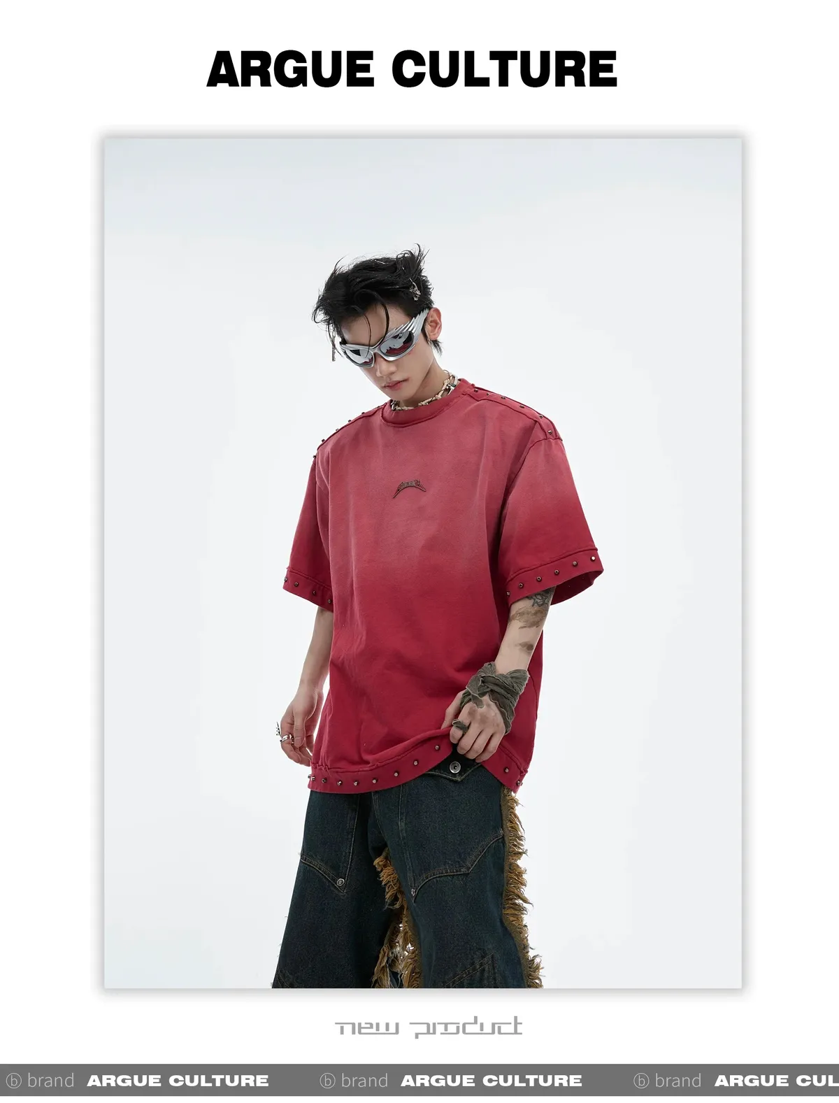 漸層水洗 訂製品牌標 卯釘 短袖(黑/紅)