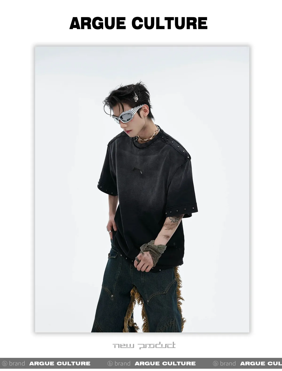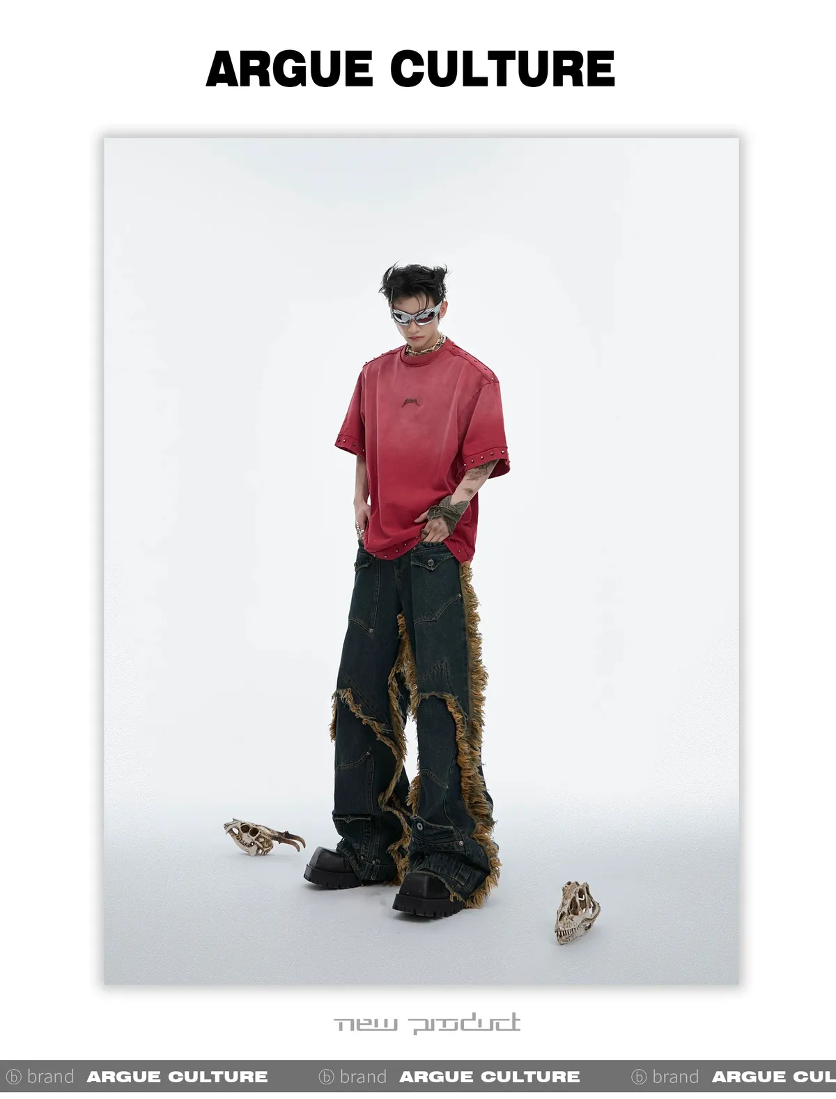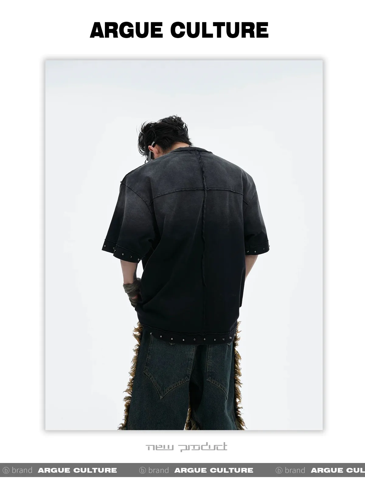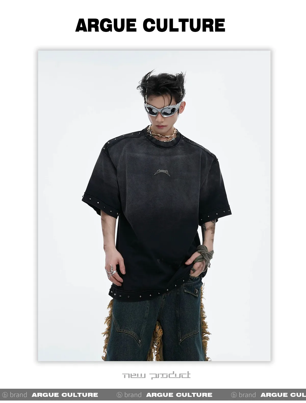 漸層水洗 訂製品牌標 卯釘 短袖(黑/紅)