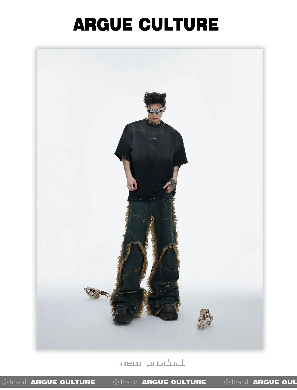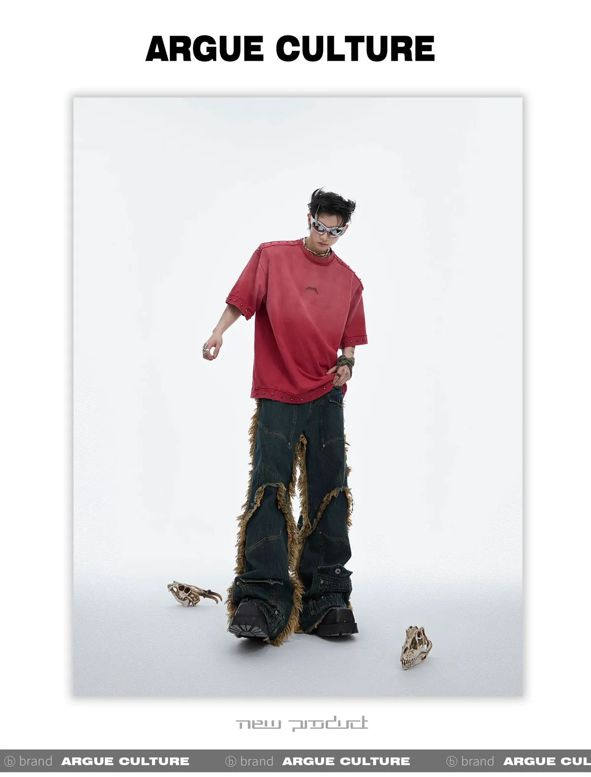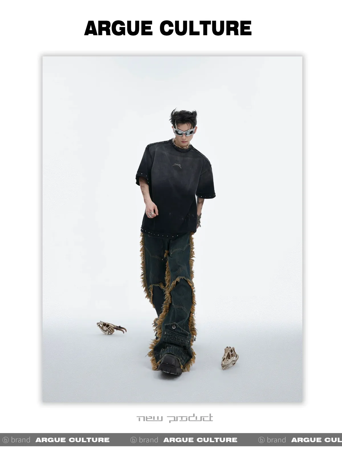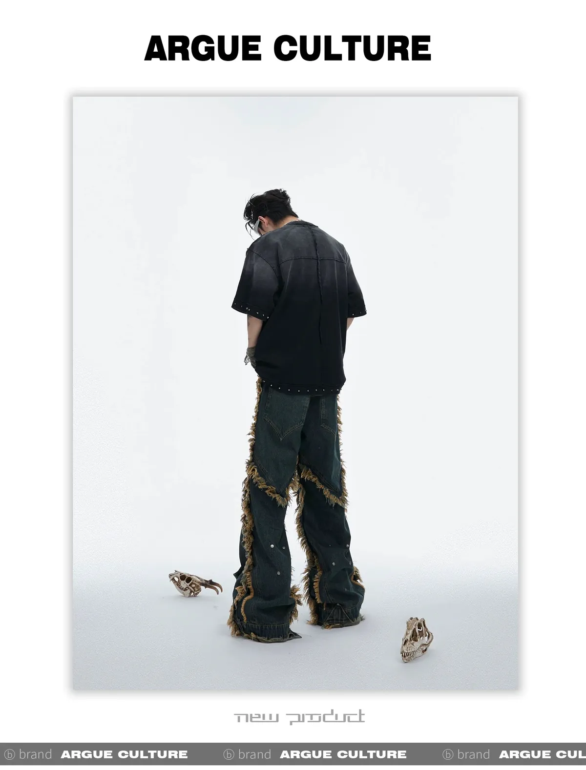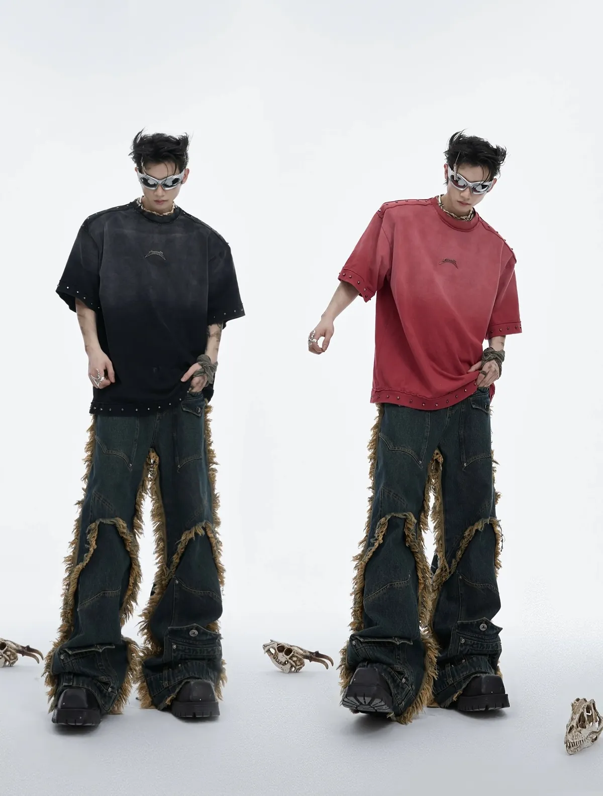 漸層水洗 訂製品牌標 卯釘 短袖(黑/紅)