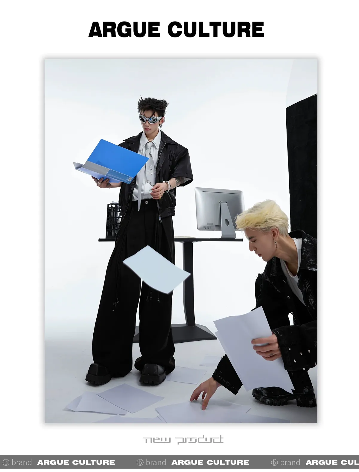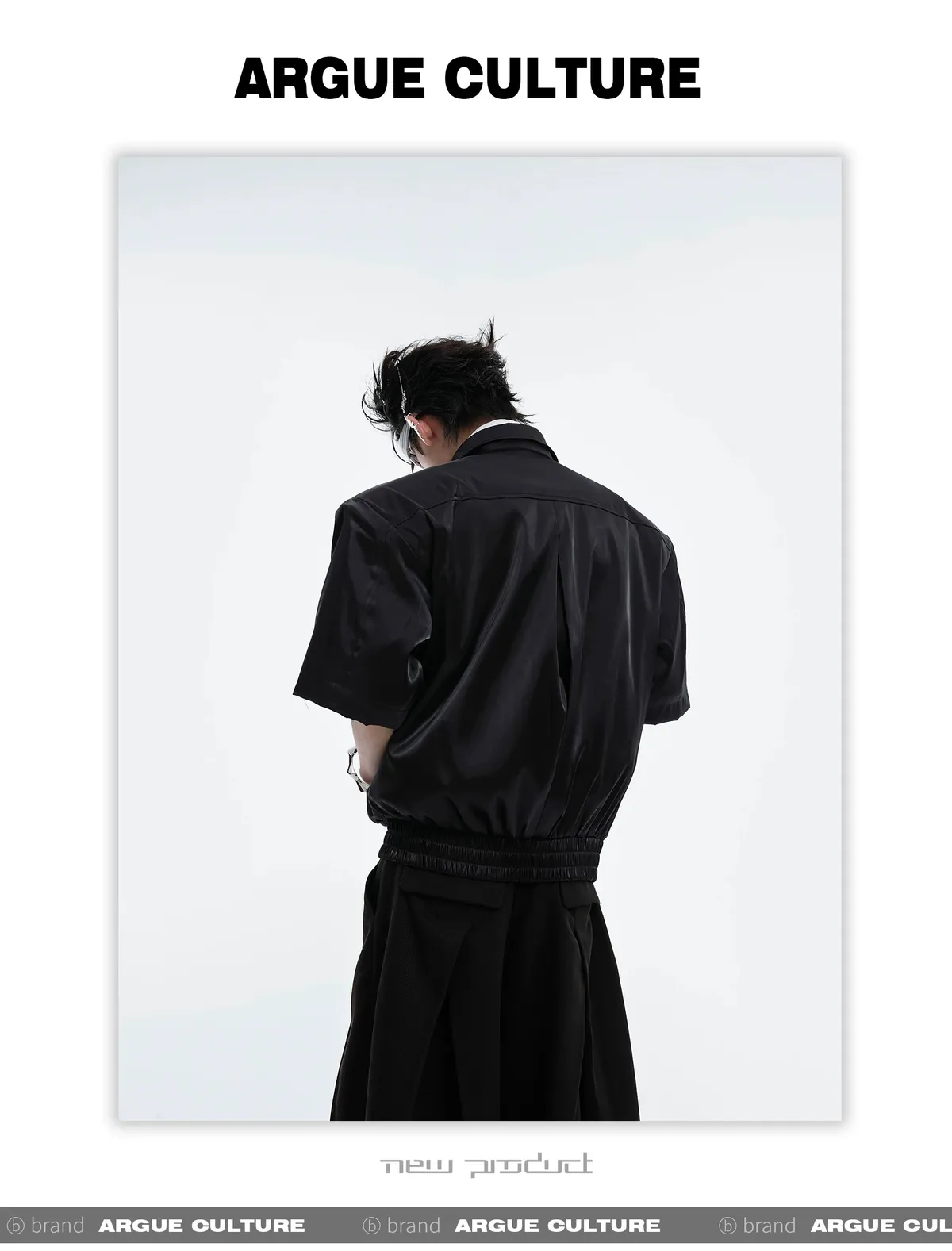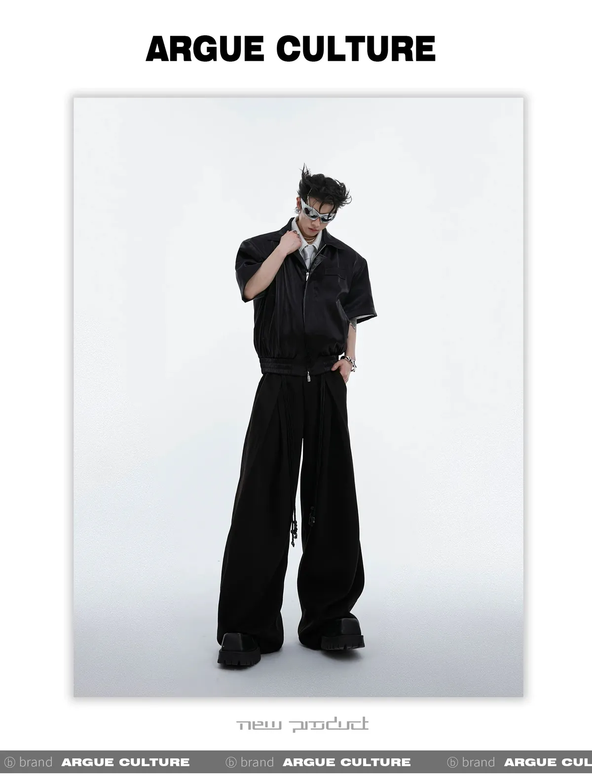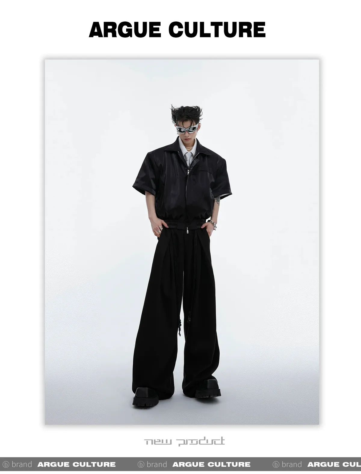 簡約 液態流光 墊肩 拉鍊 短袖(黑色)