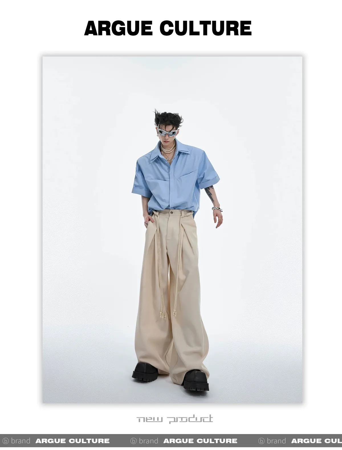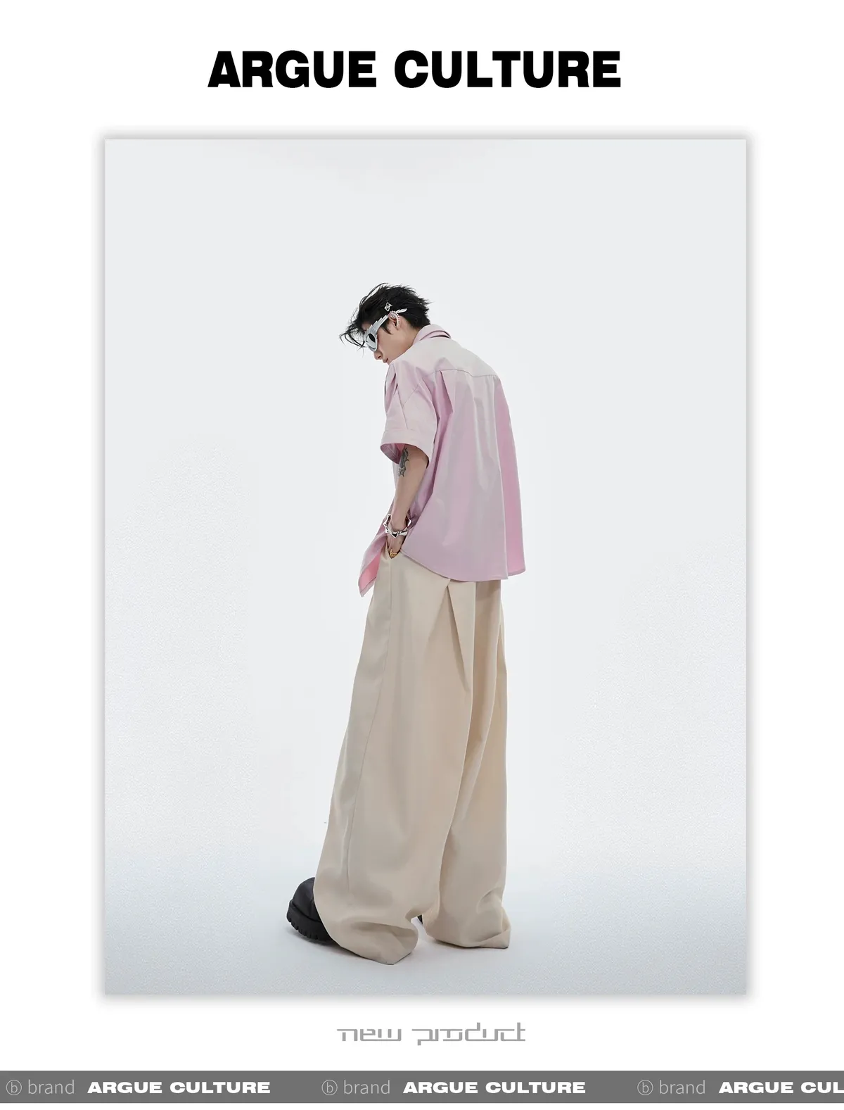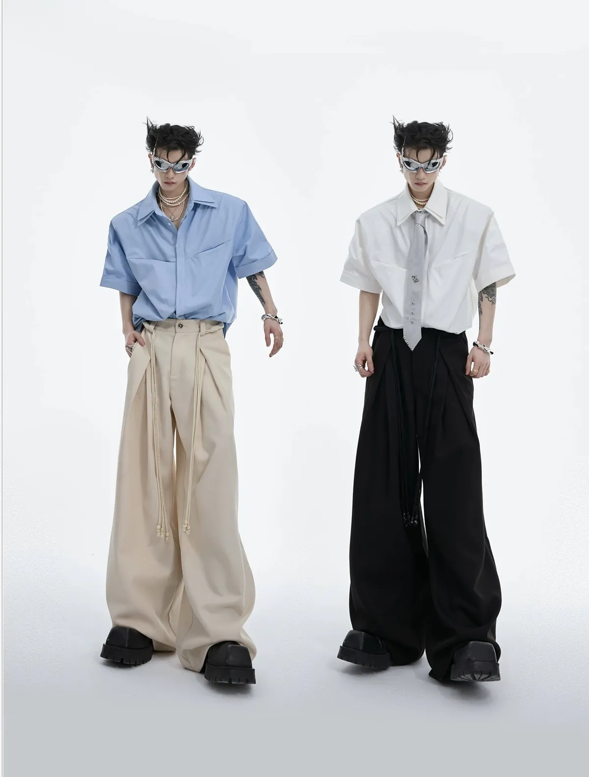影面流液 尼龍 工裝感 小立領 紮染 背心 闊腿褲 套裝(黑/棕)