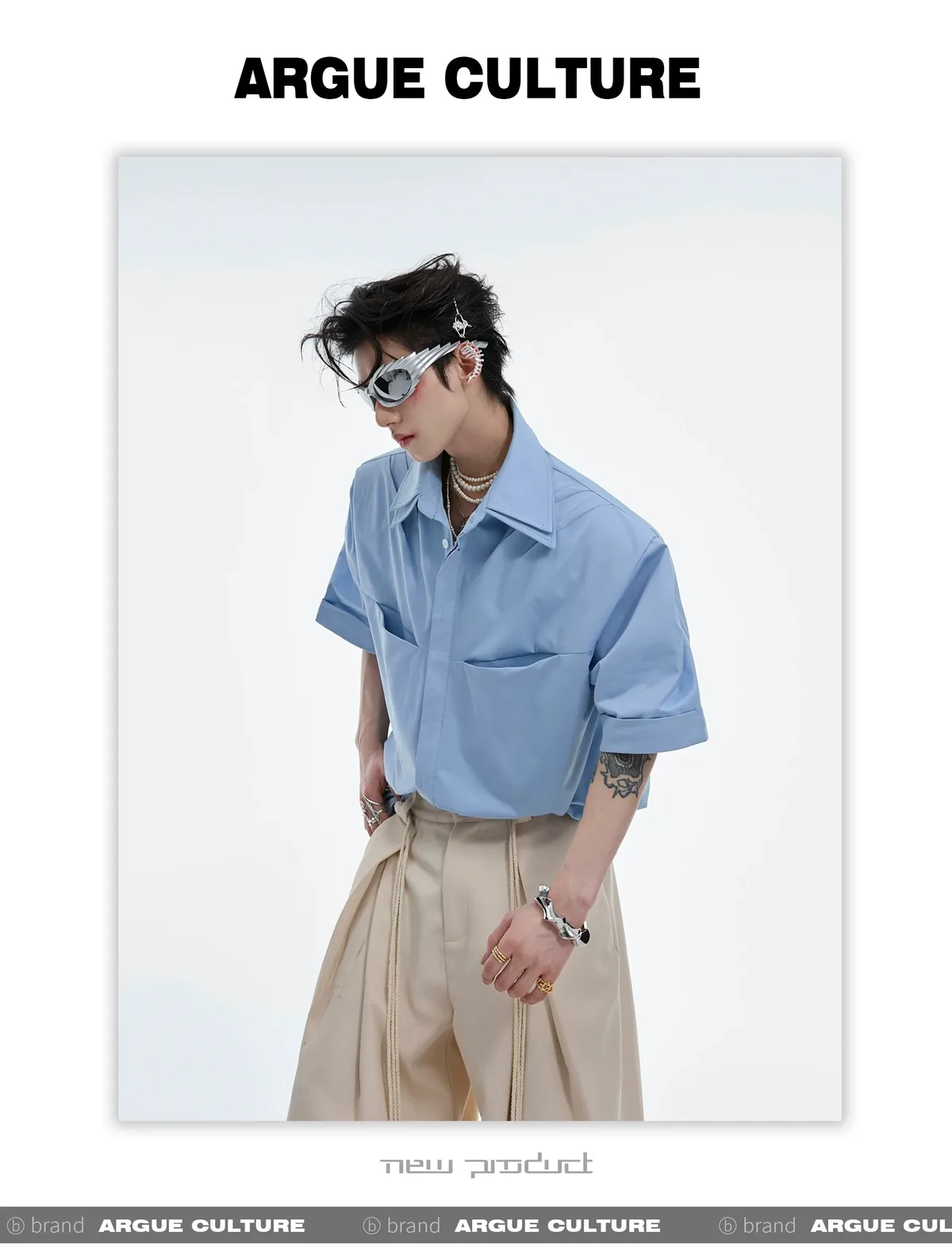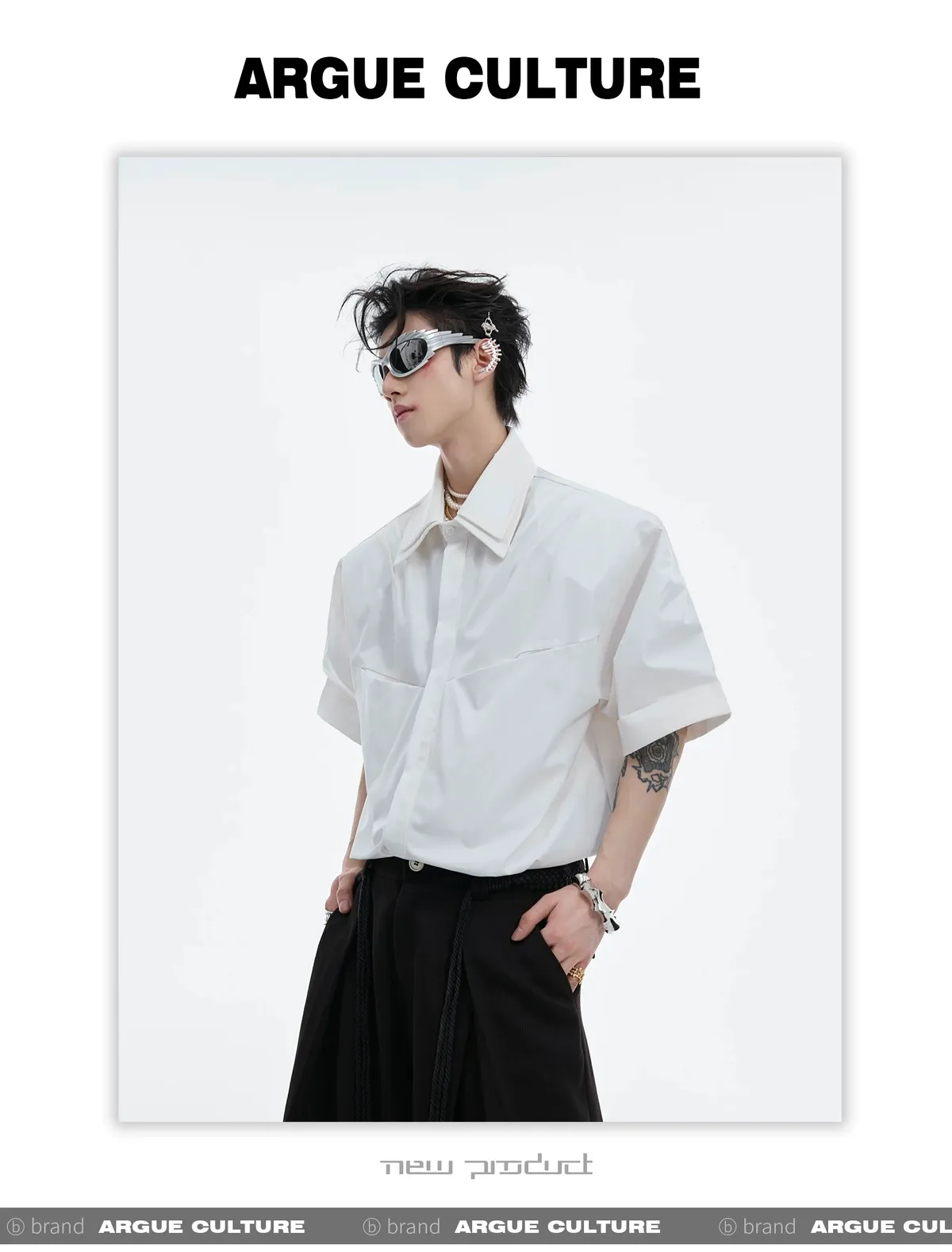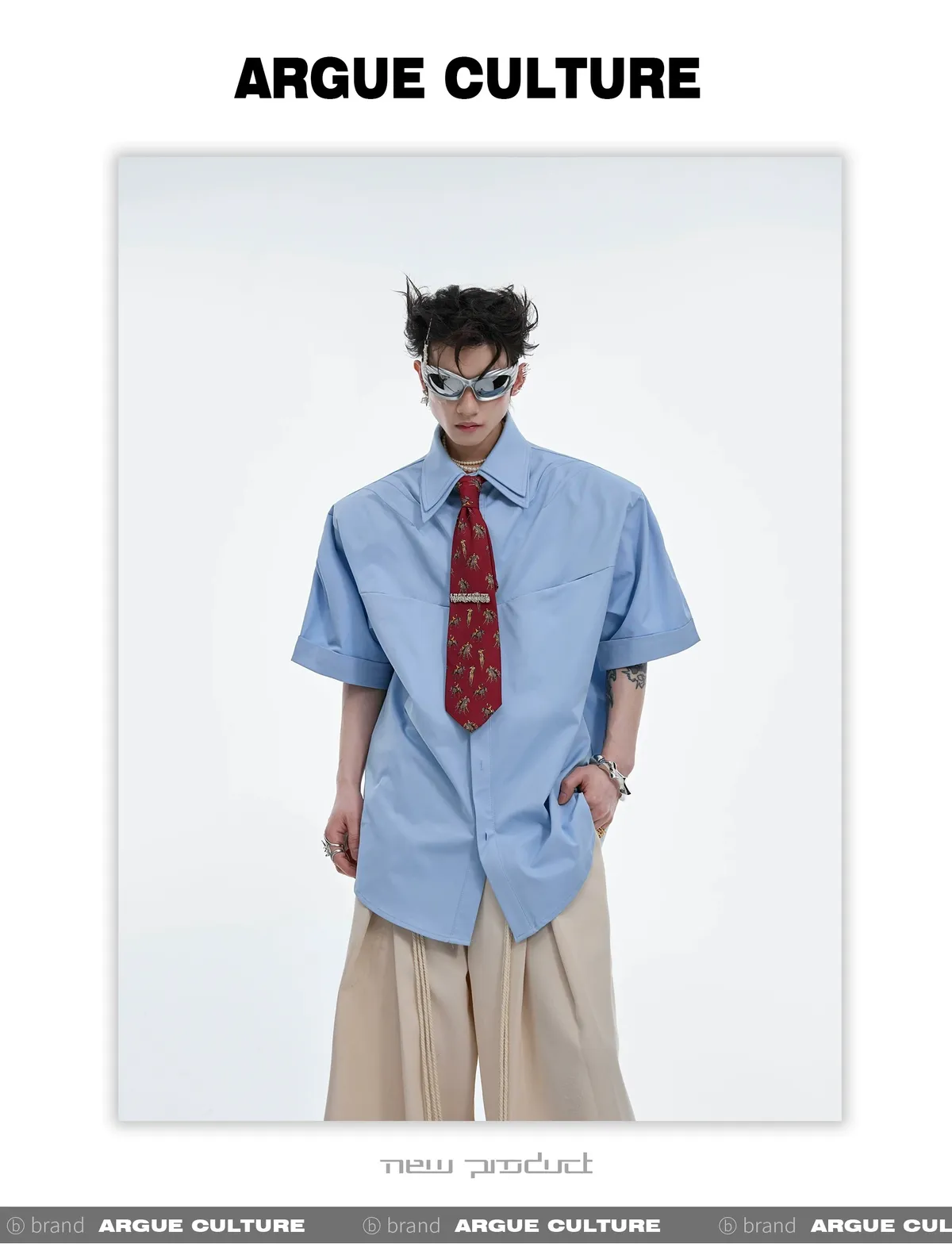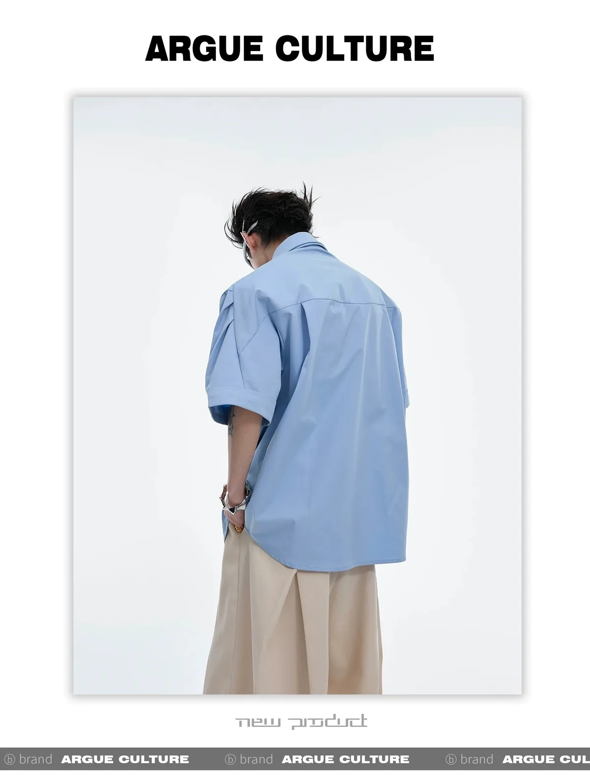 設計感 解構 雙層領 可拆墊肩 襯衫 (白/藍/粉)