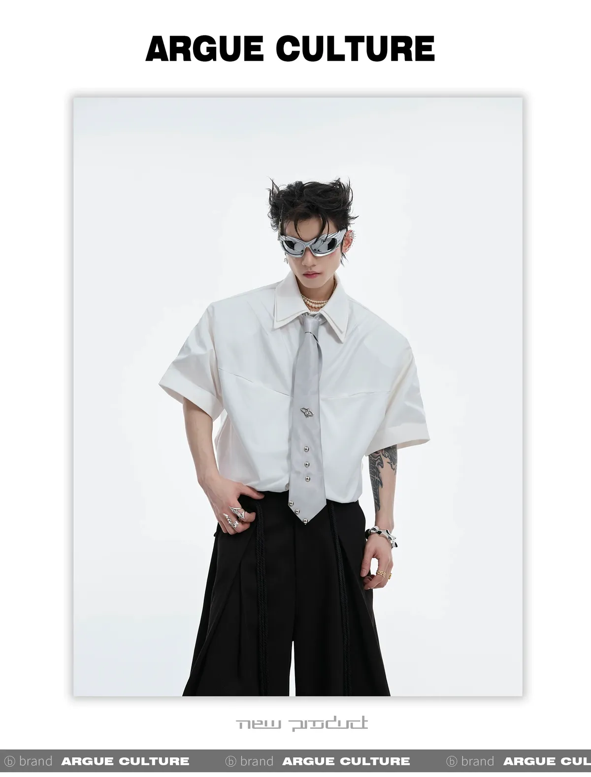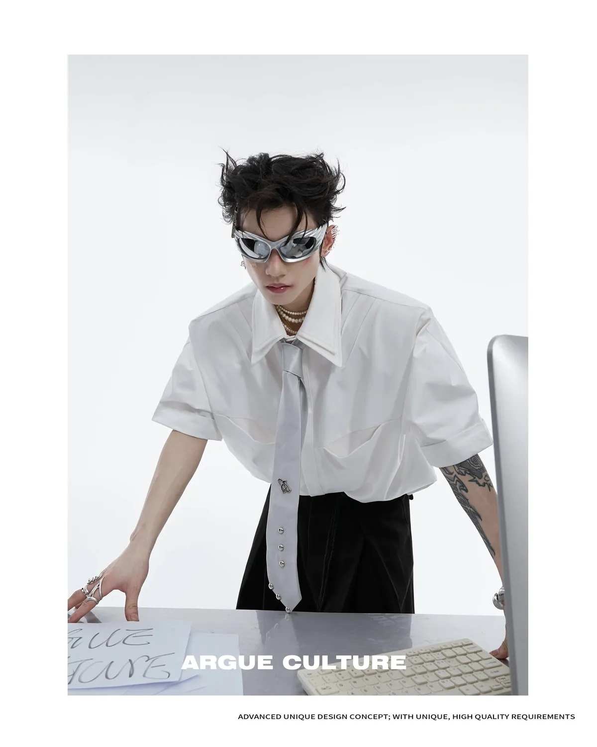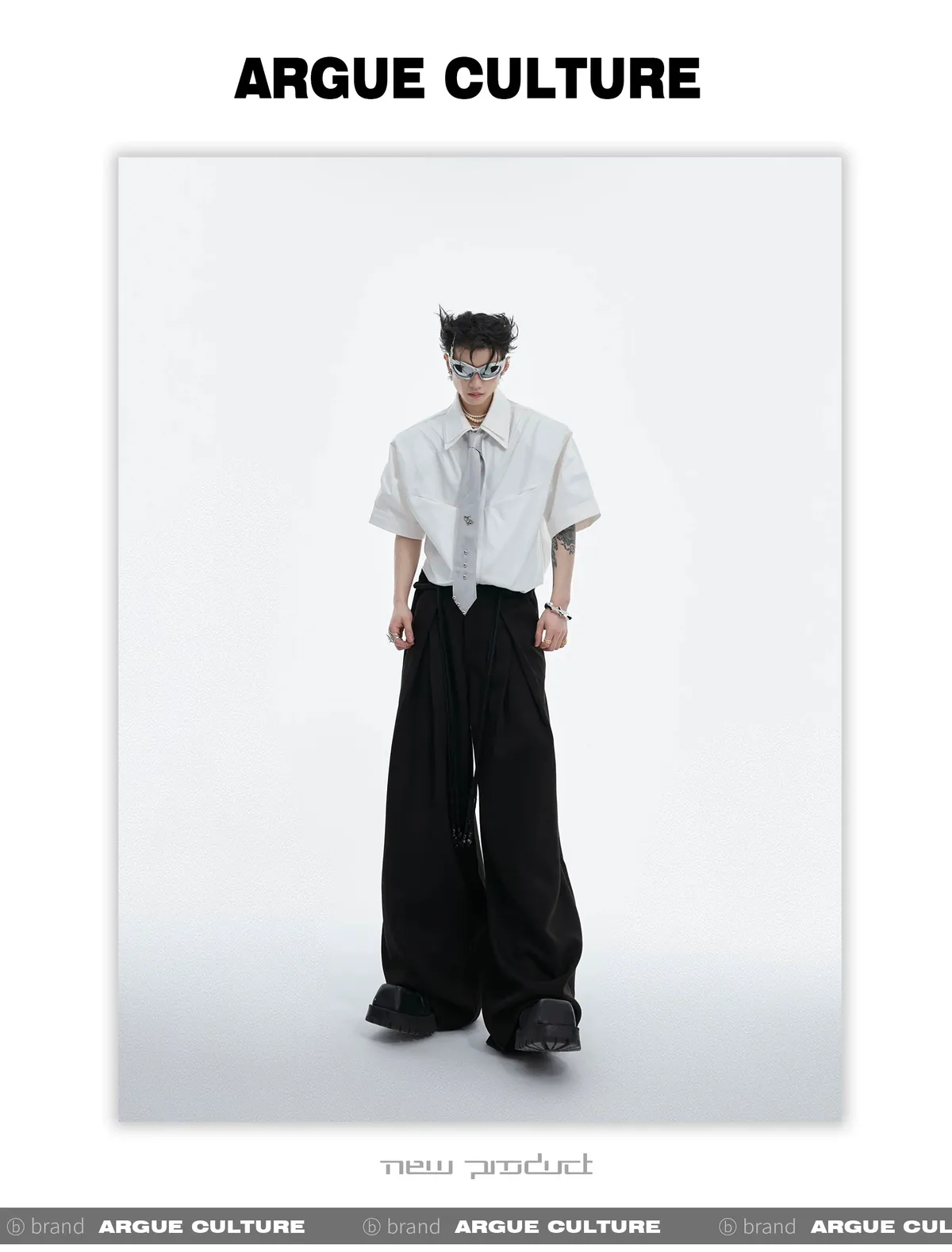 重工拼接 飄帶 解構 線條 短袖 TEE(黑/白)