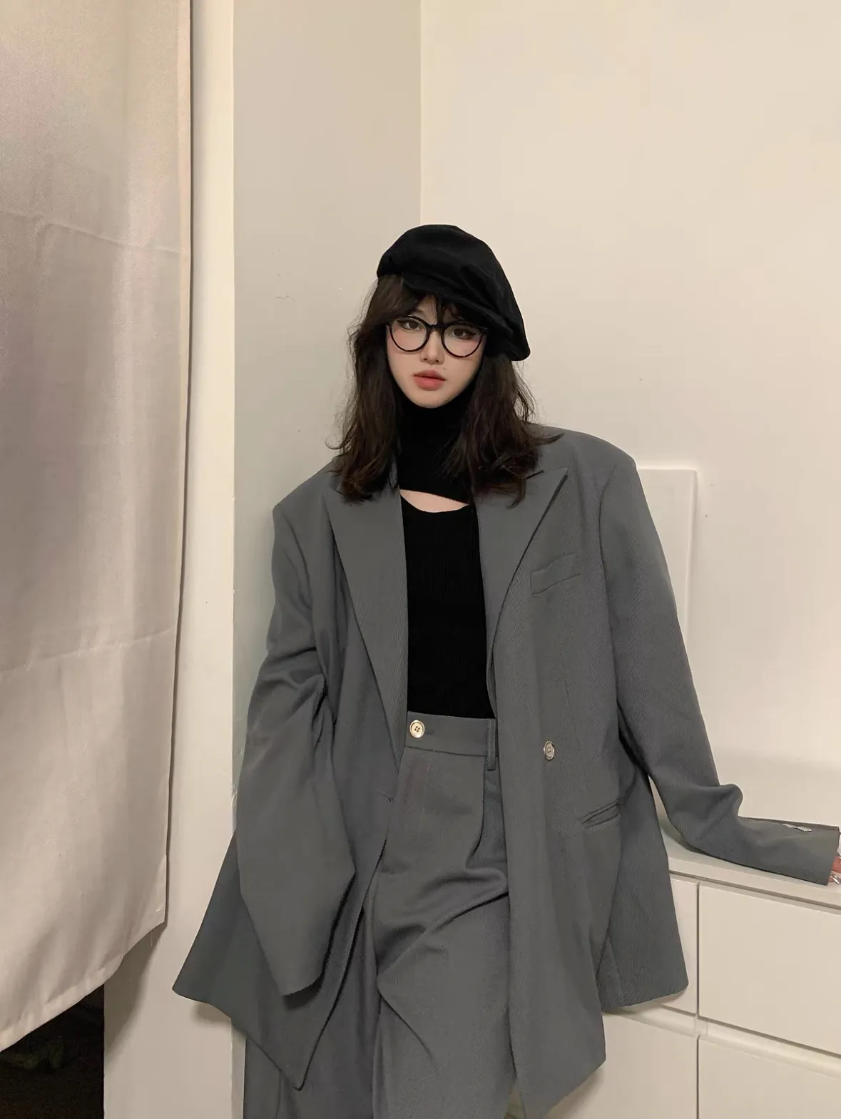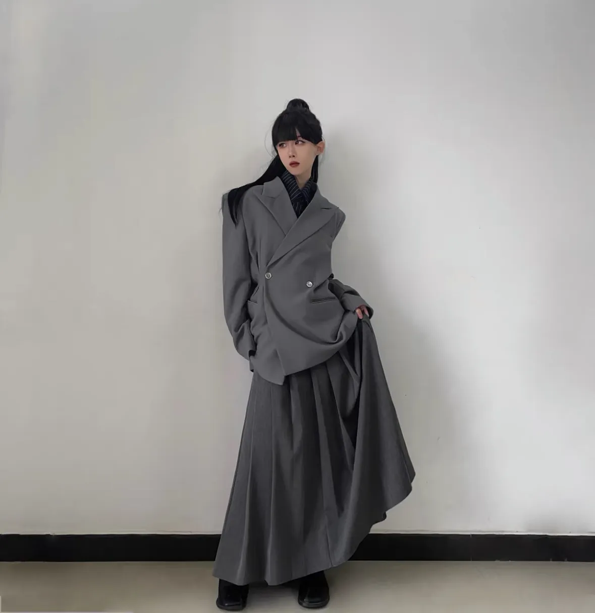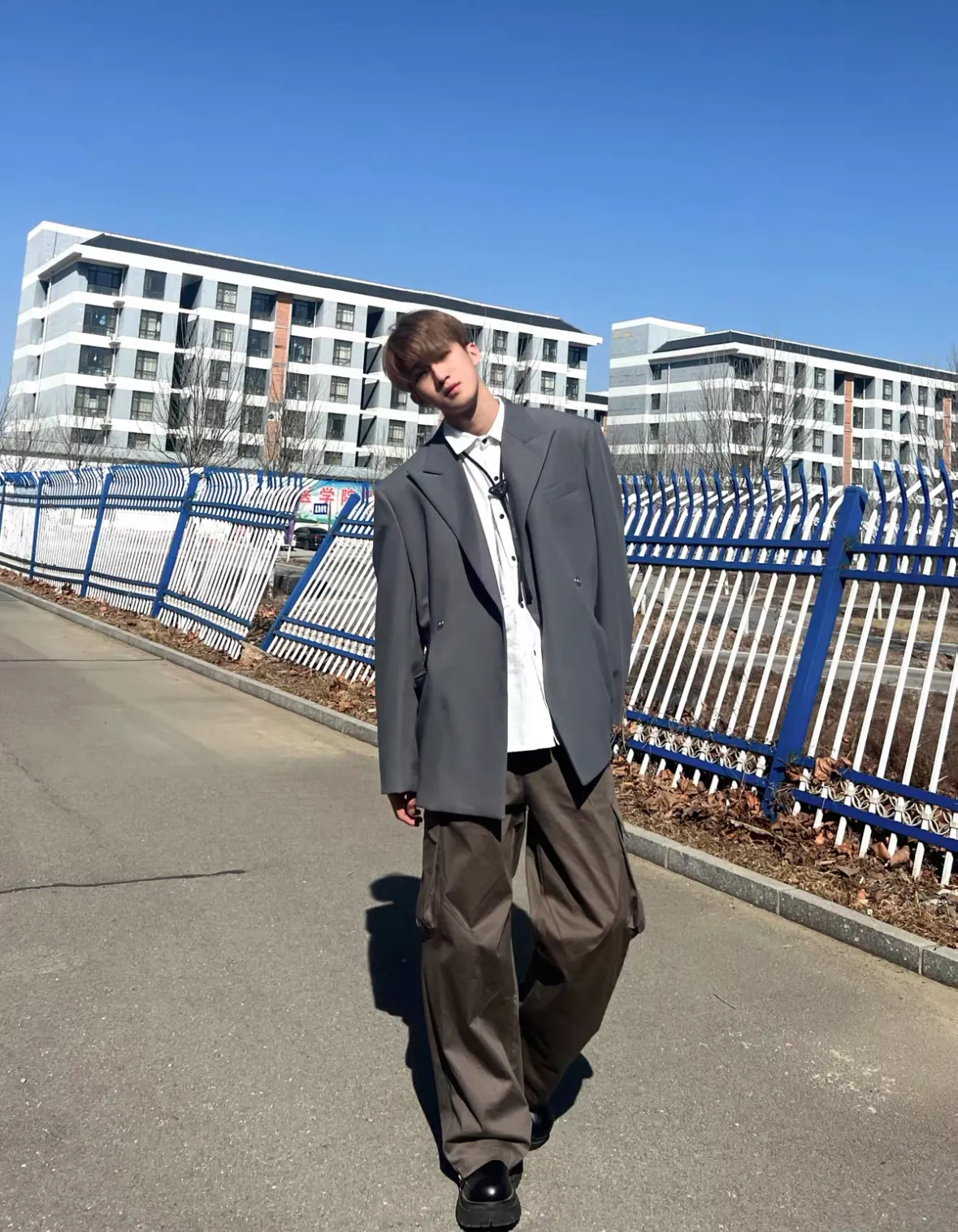 小眾 高級 大牌 輪廓 斜紋 西裝外套 西裝褲(黑/灰)