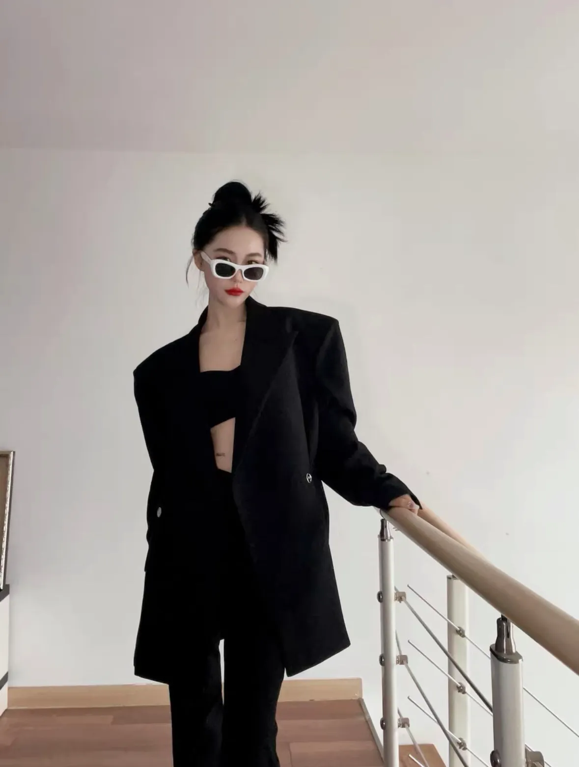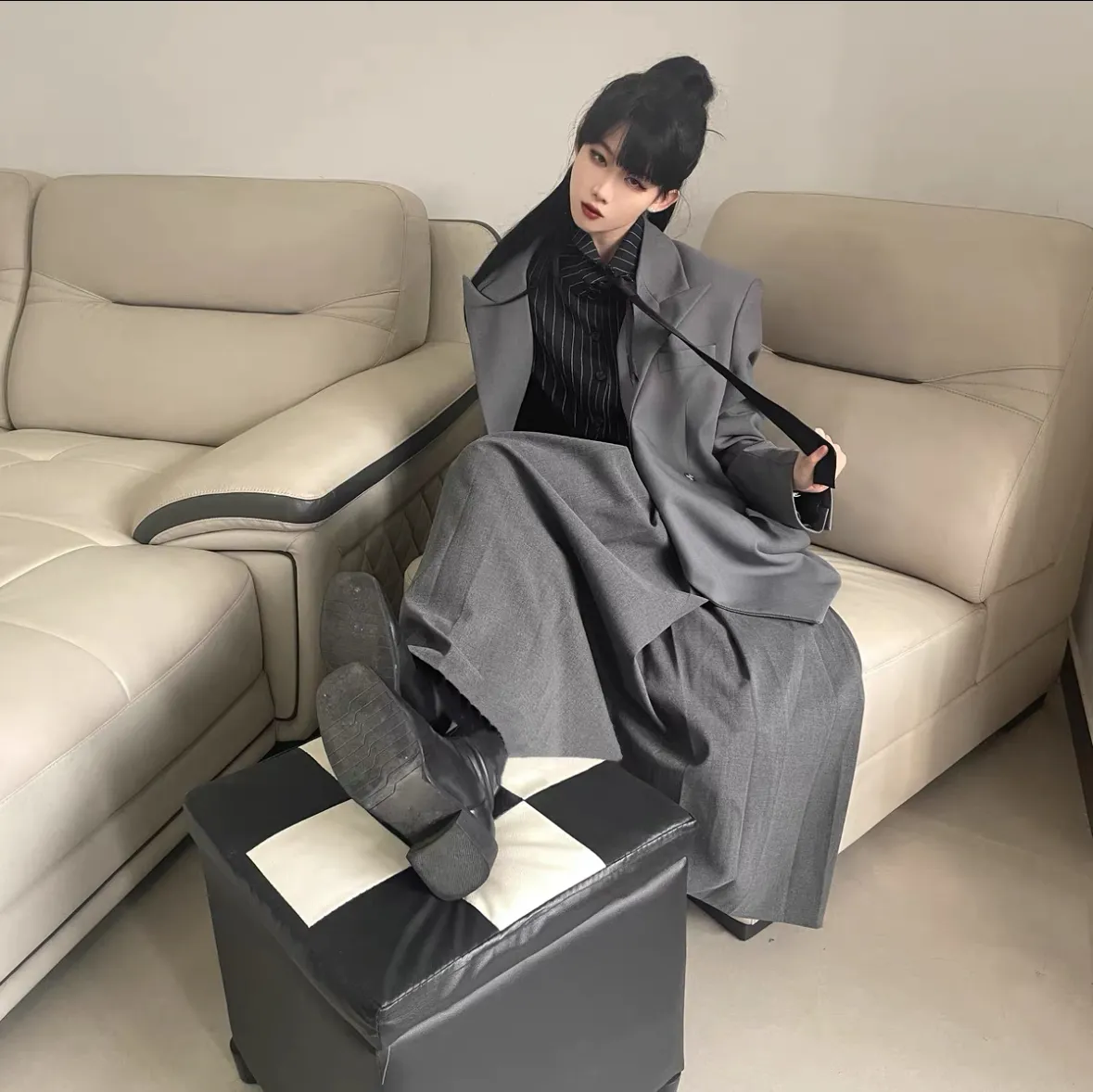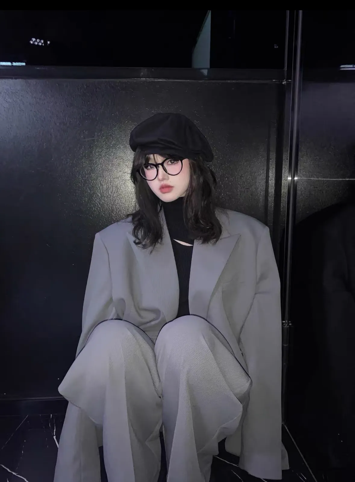 小眾 高級 大牌 輪廓 斜紋 西裝外套 西裝褲(黑/灰)