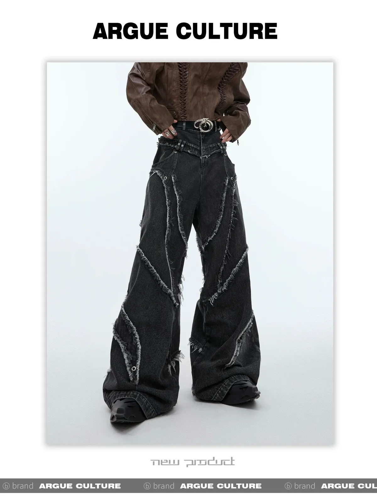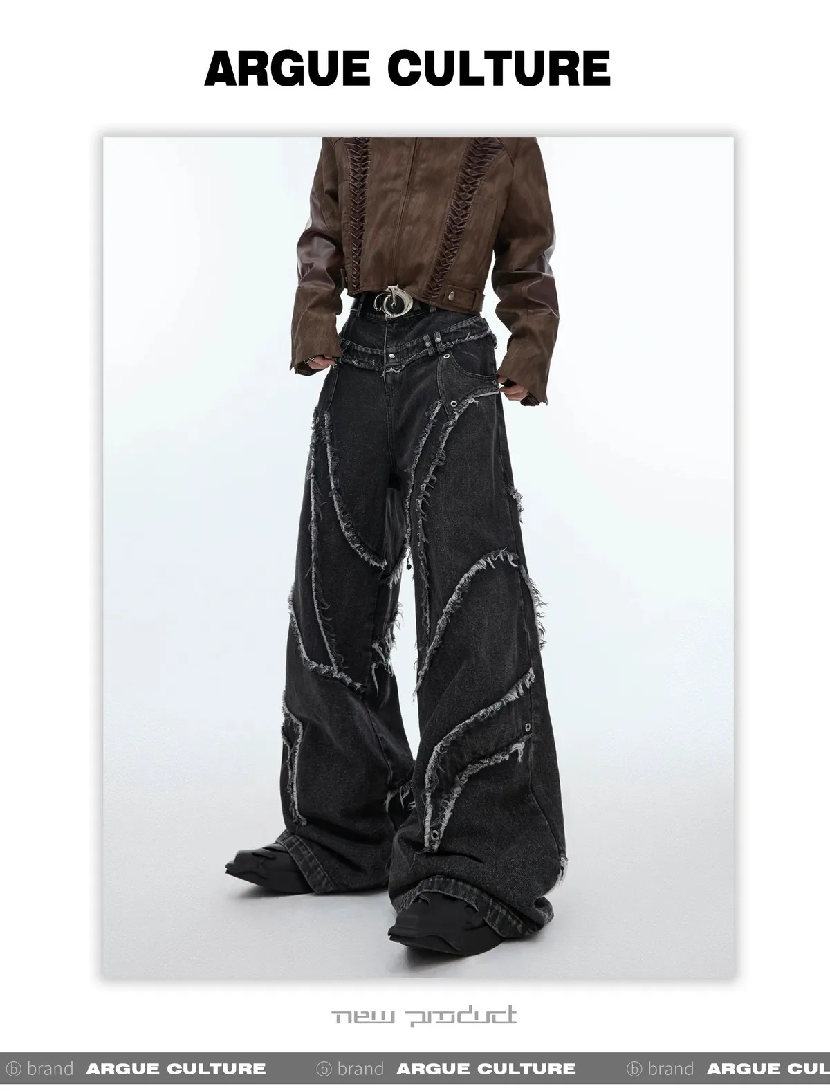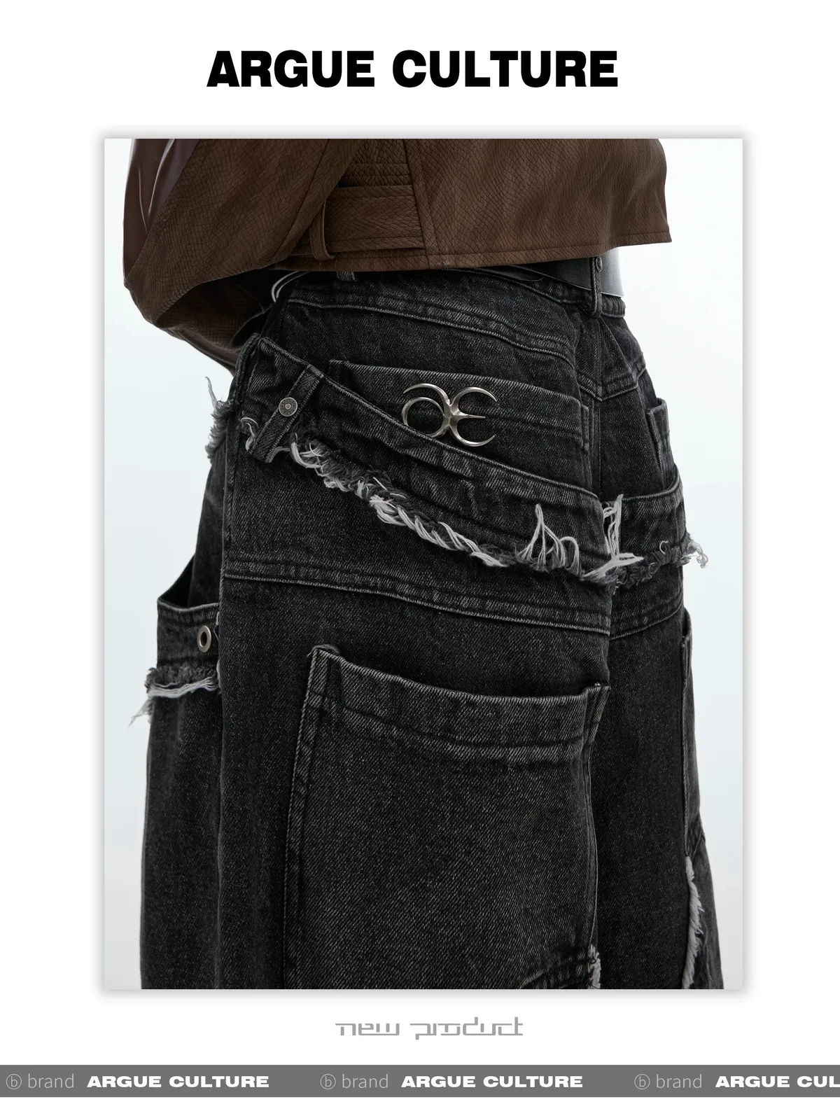 ARGUE REMAKE感 拼接 水洗 廓形 牛仔褲 (黑色)