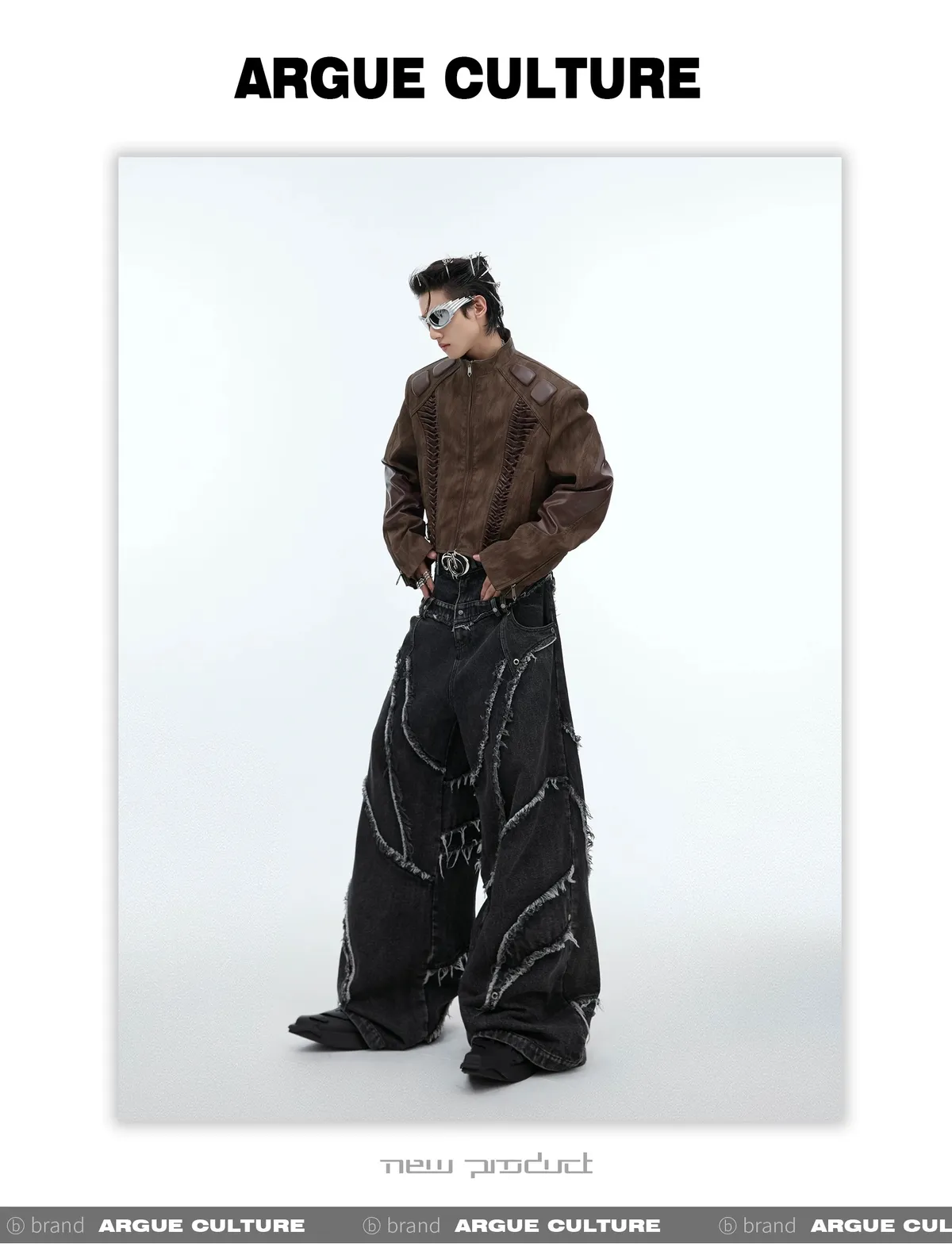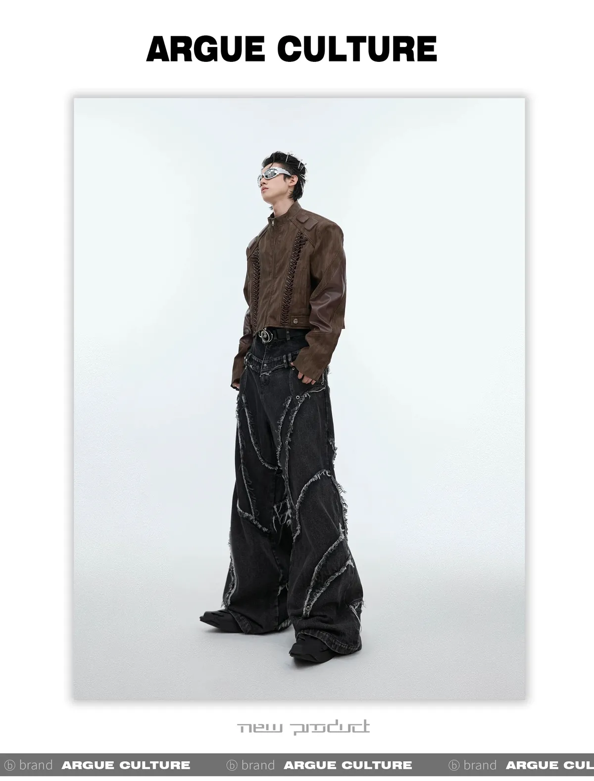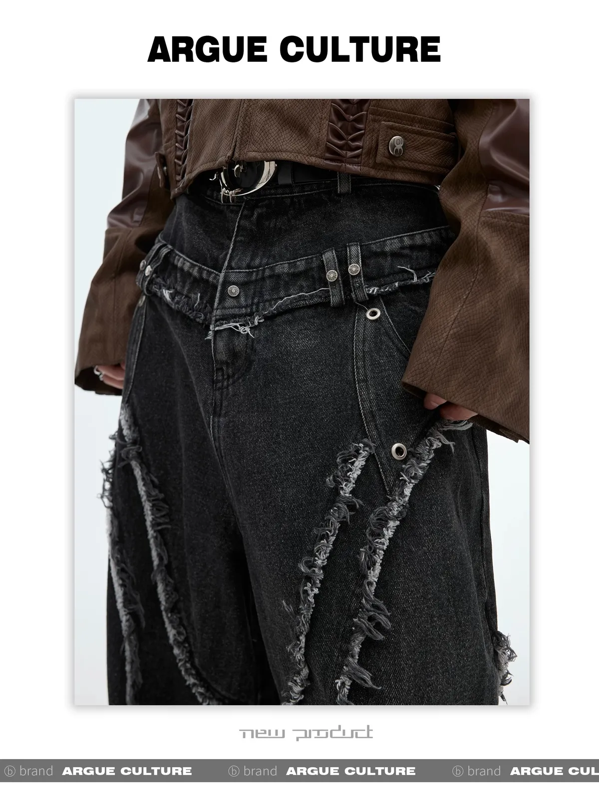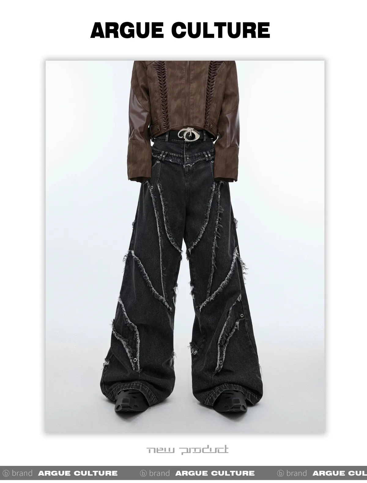 ARGUE REMAKE感 拼接 水洗 廓形 牛仔褲 (黑色)