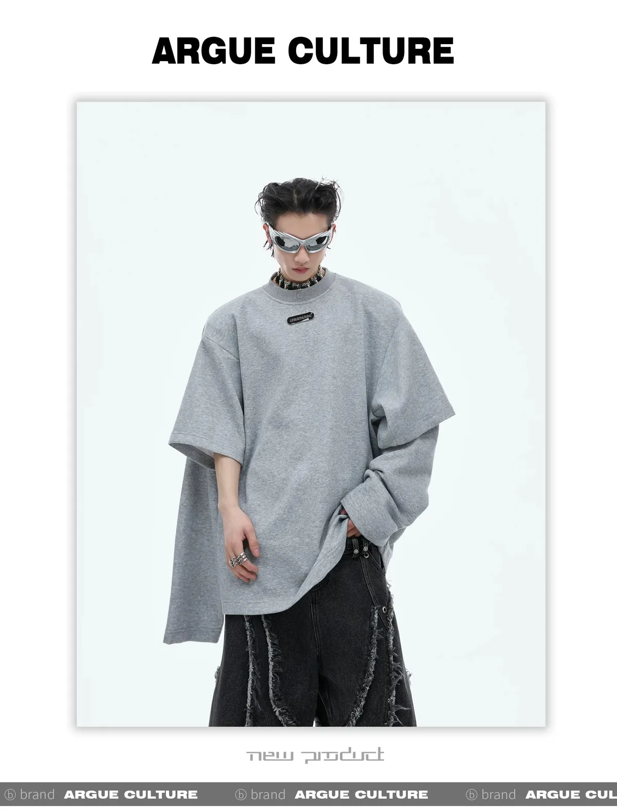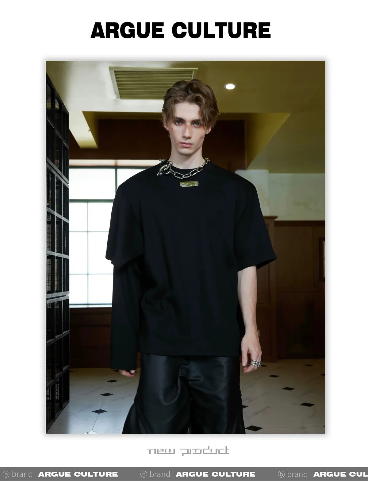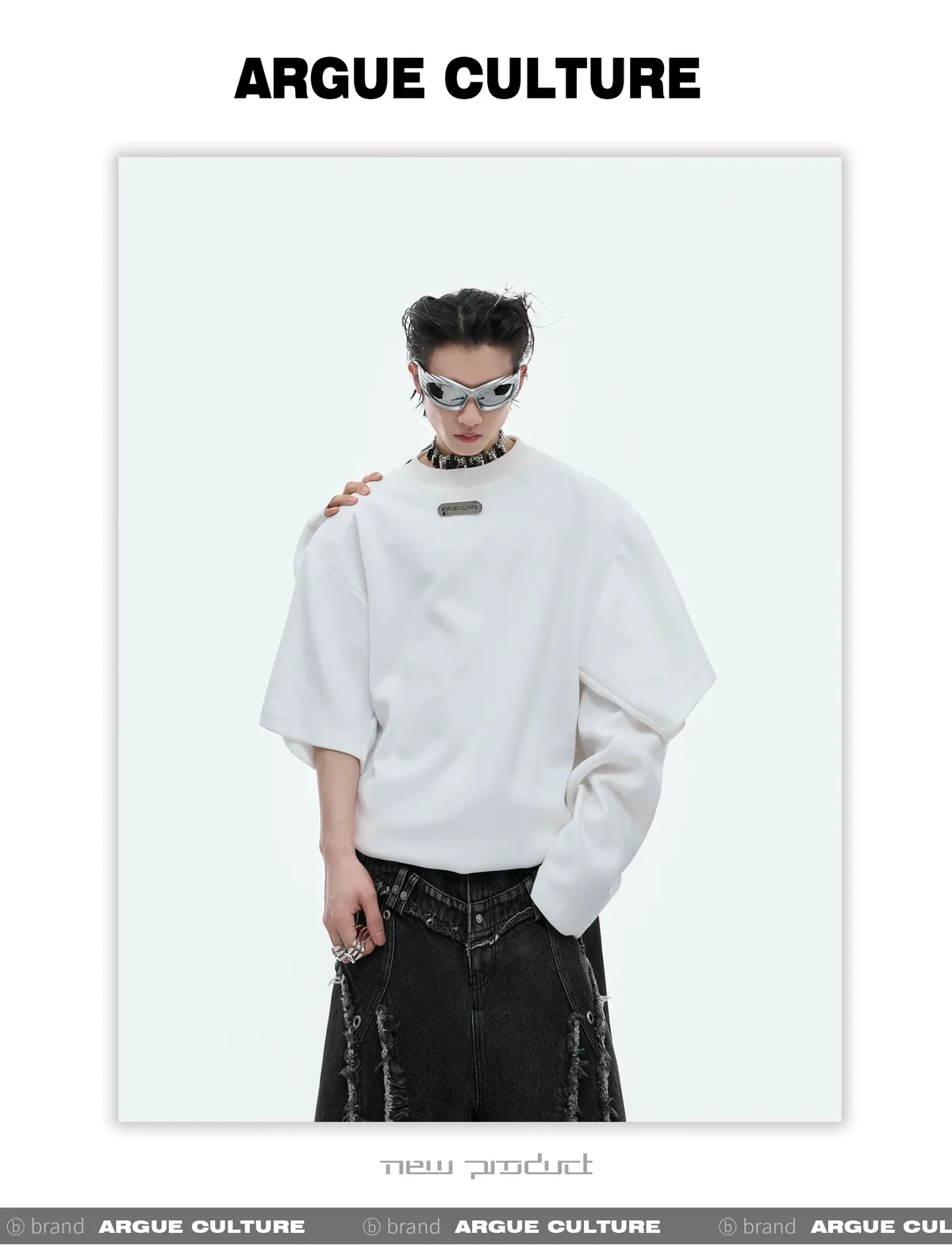 ARGUE 雙層設計 拼接 多穿法 假兩件 長袖 (黑/白/灰)