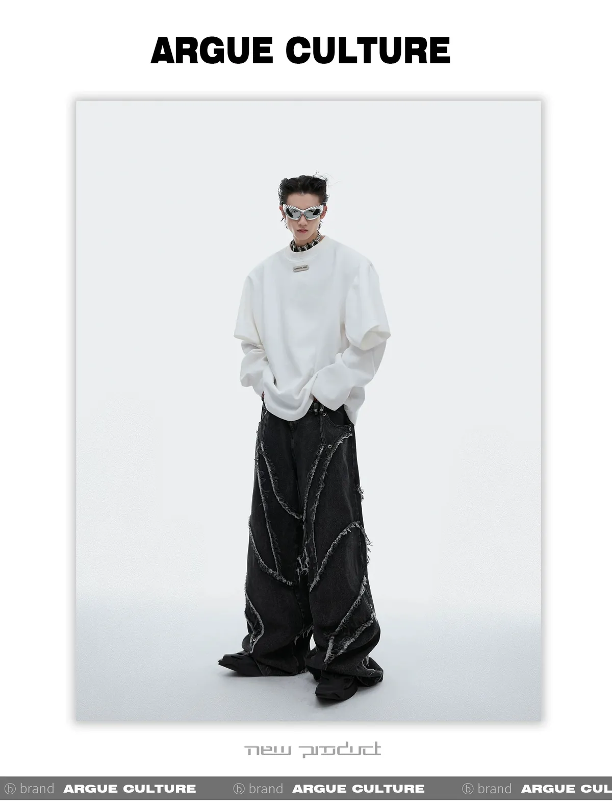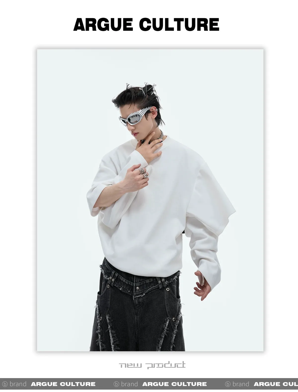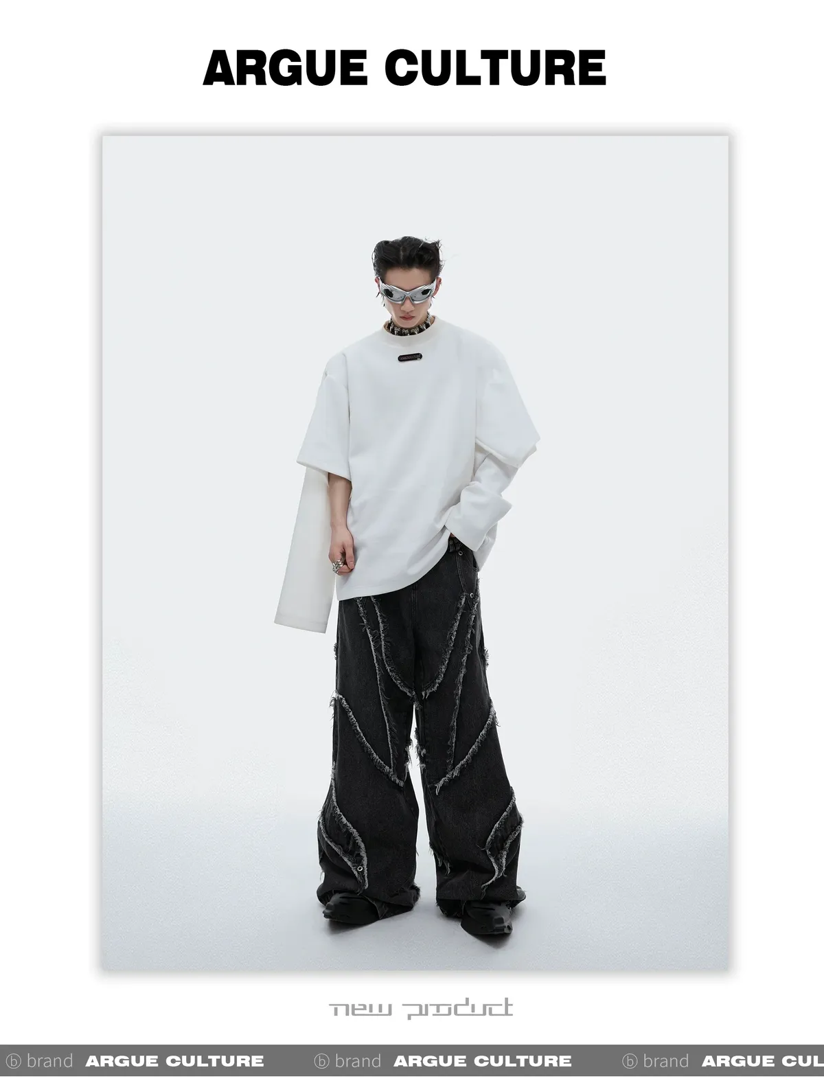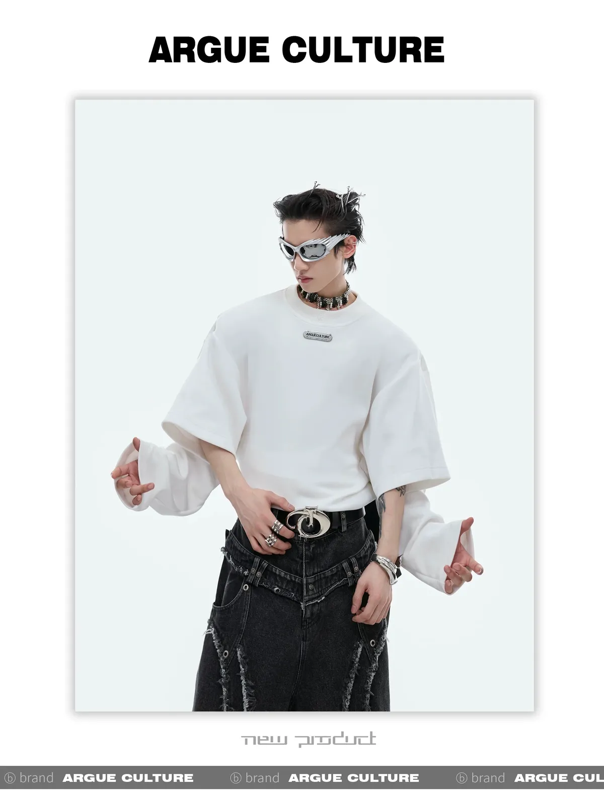 ARGUE 水洗做舊 雙層 破壞 設計感 長袖(黑/白)