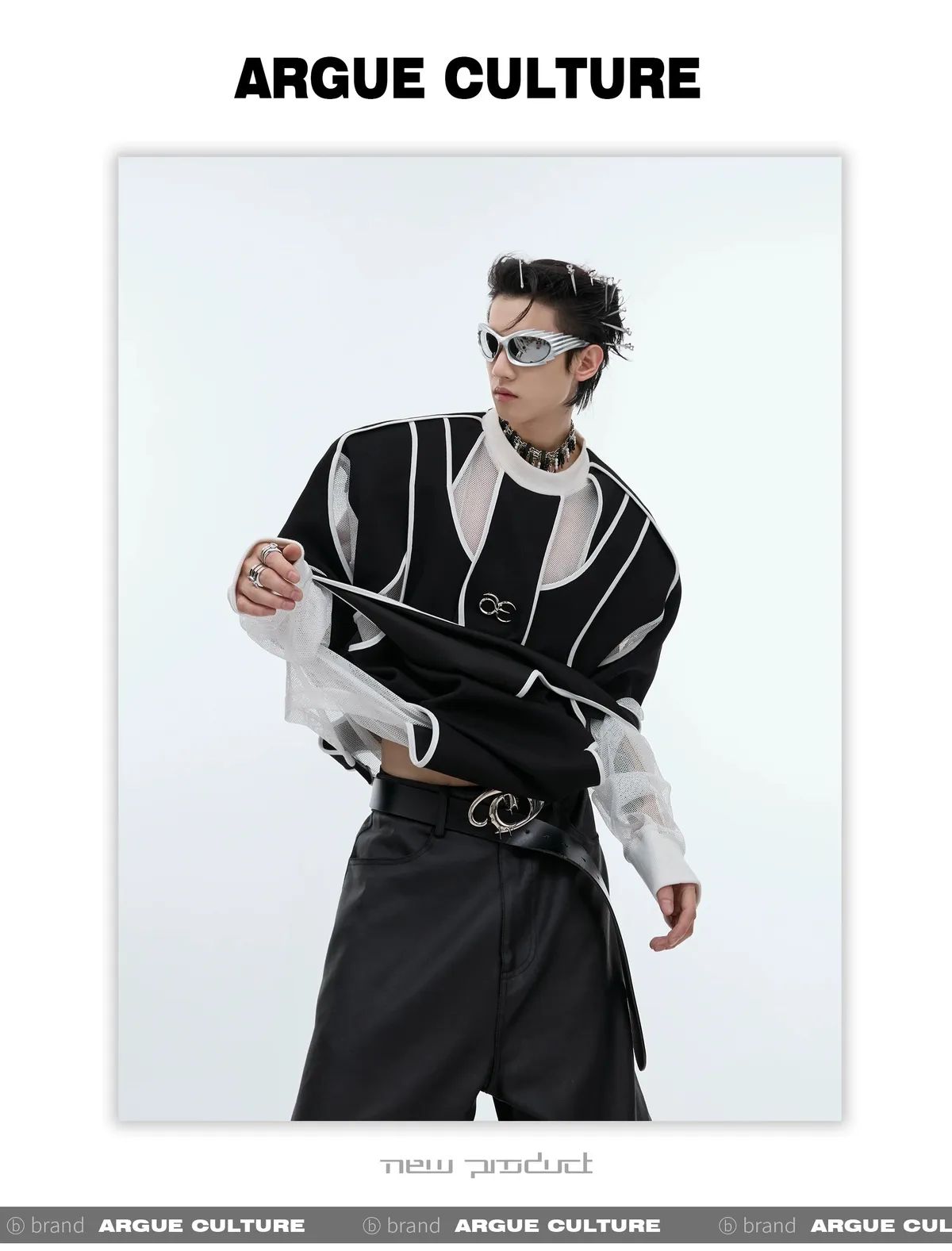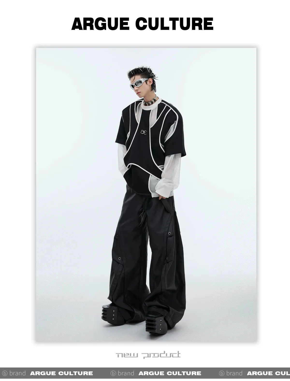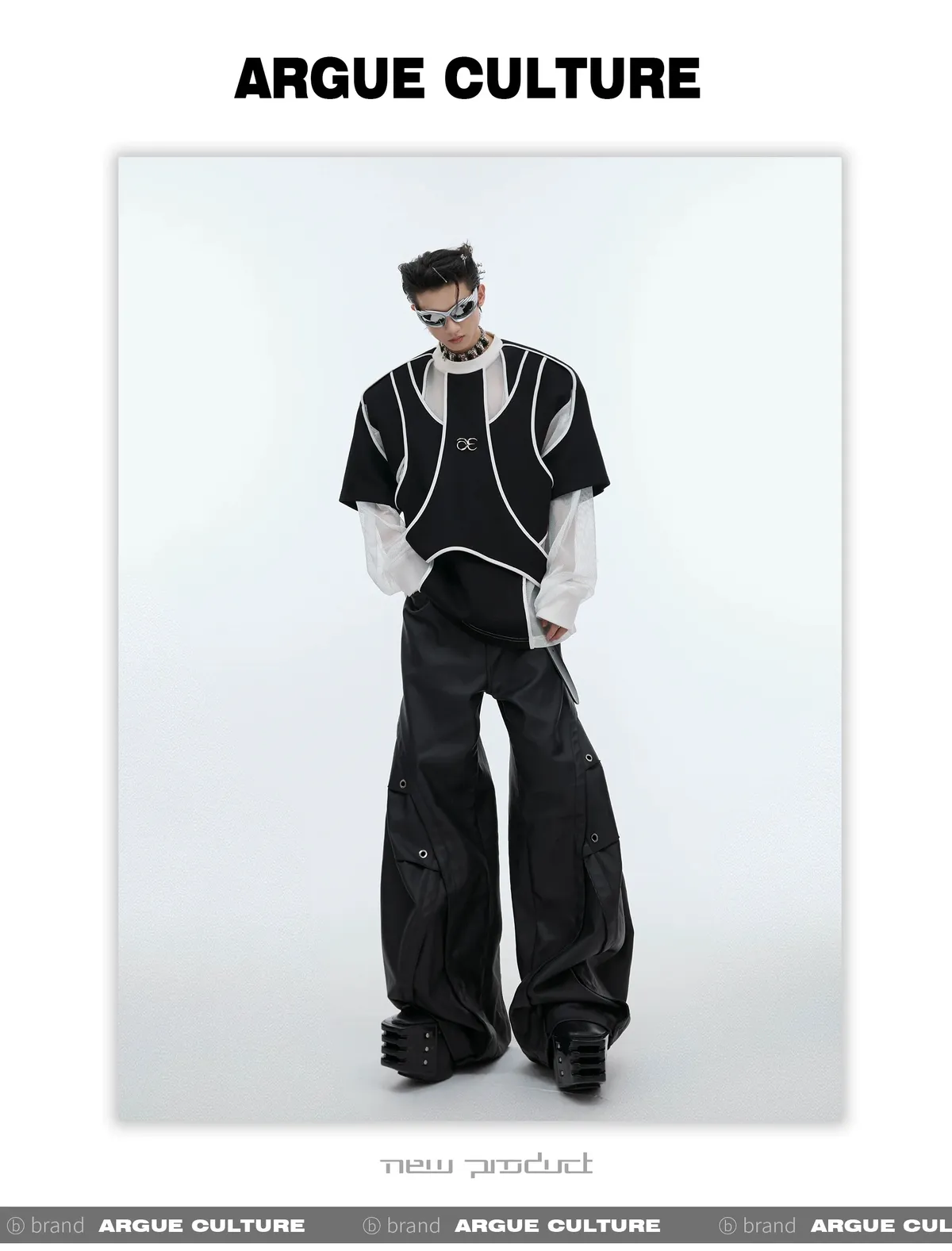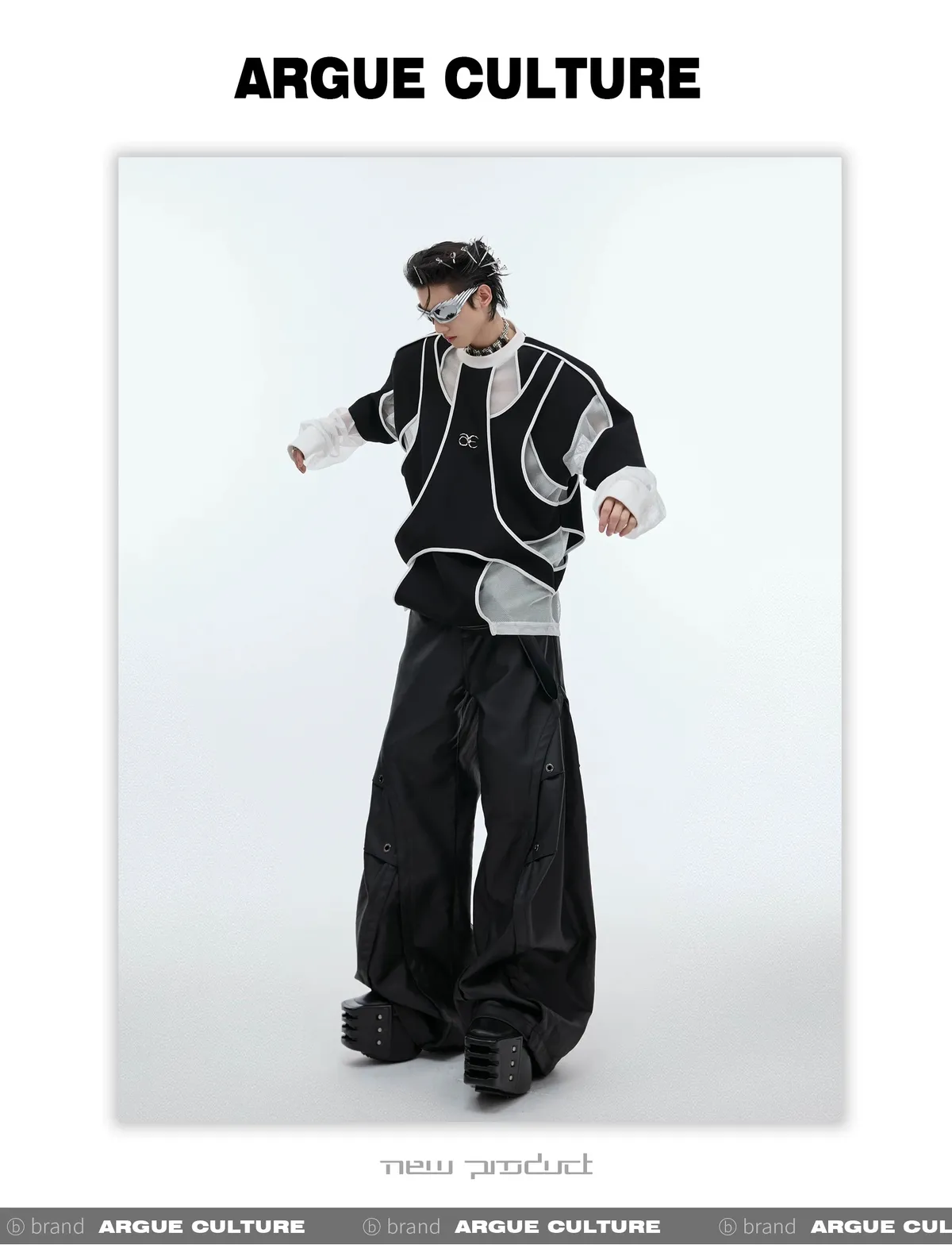 ARGUE 先鋒 解構分割 異材質拼接 多裁片 長袖(黑色)