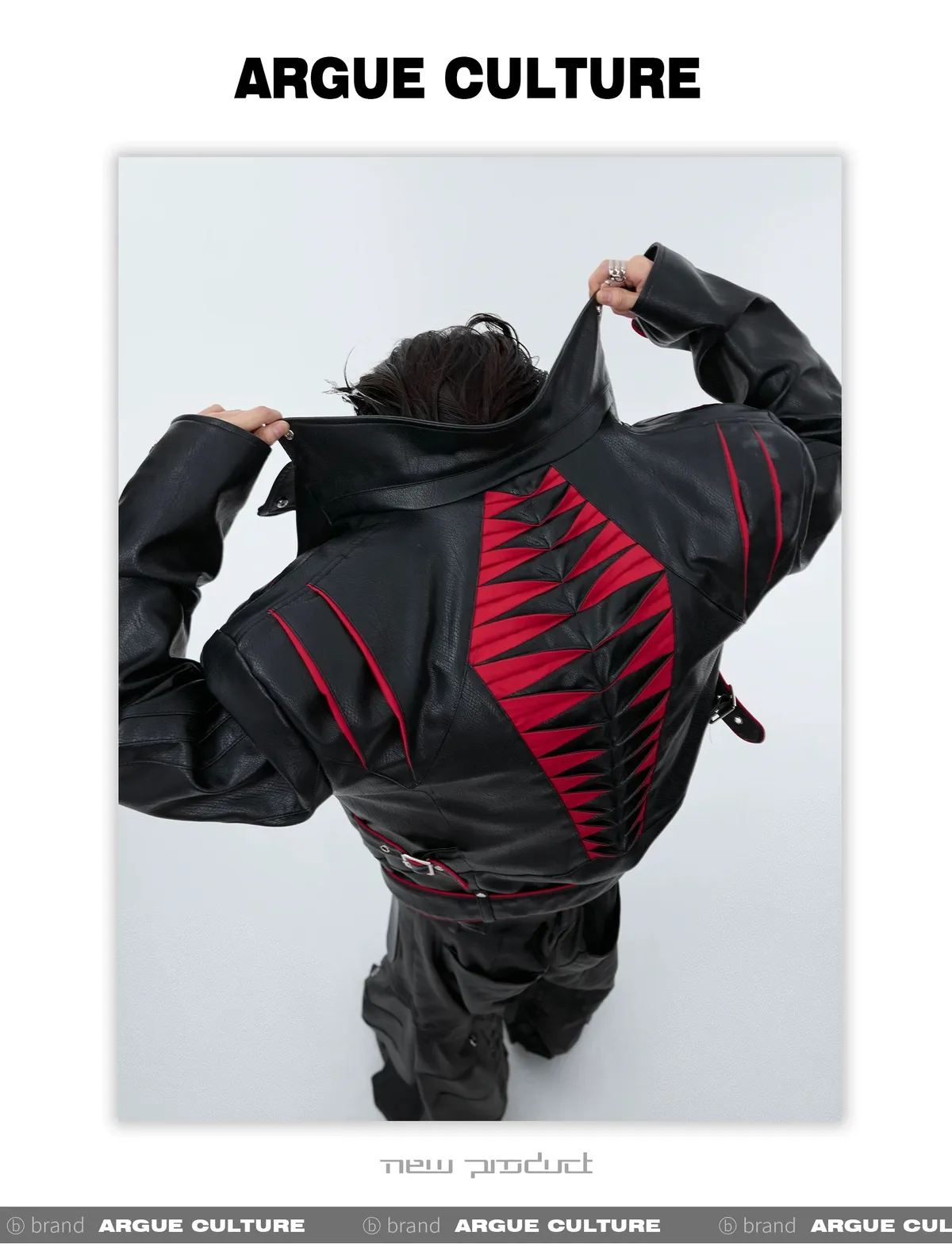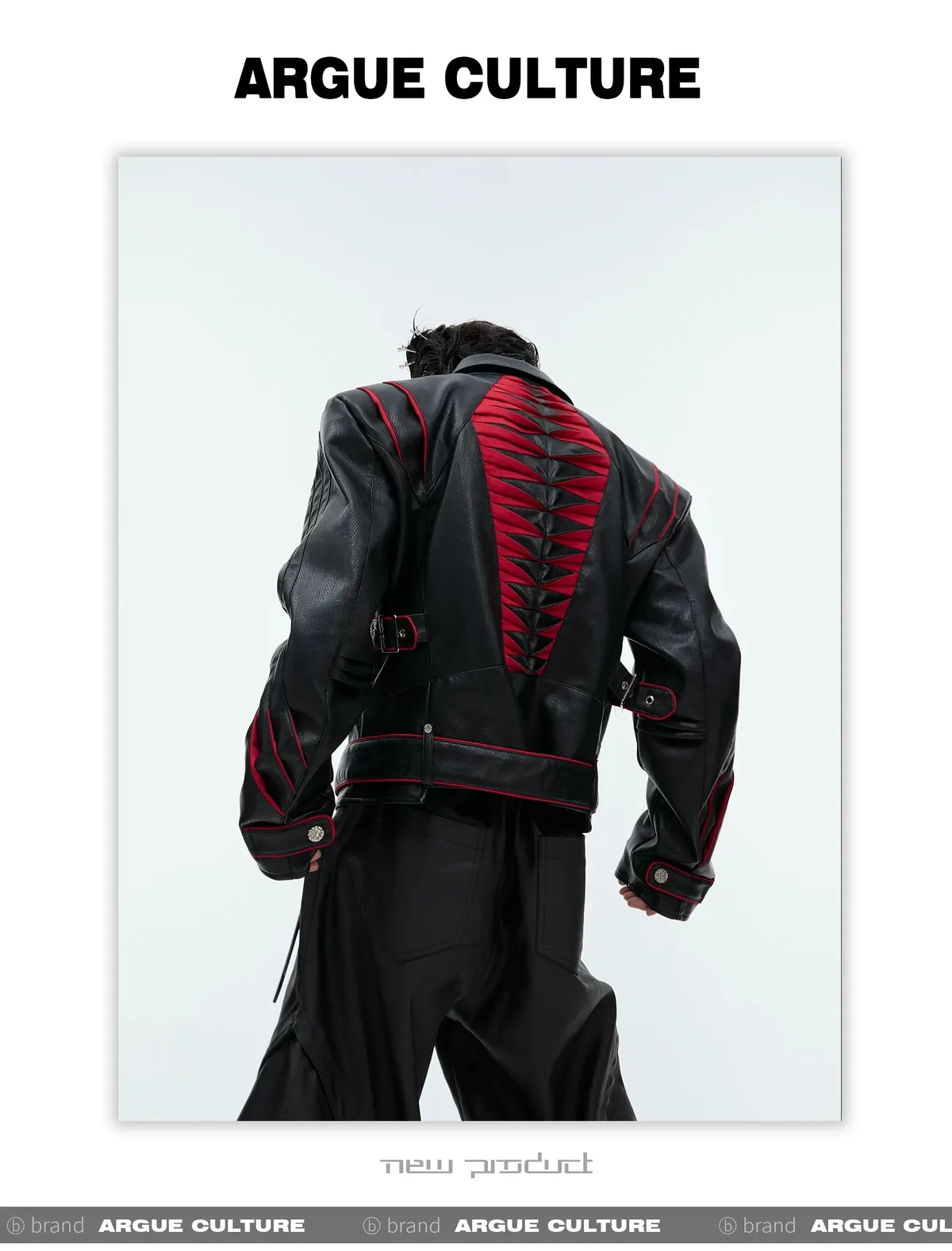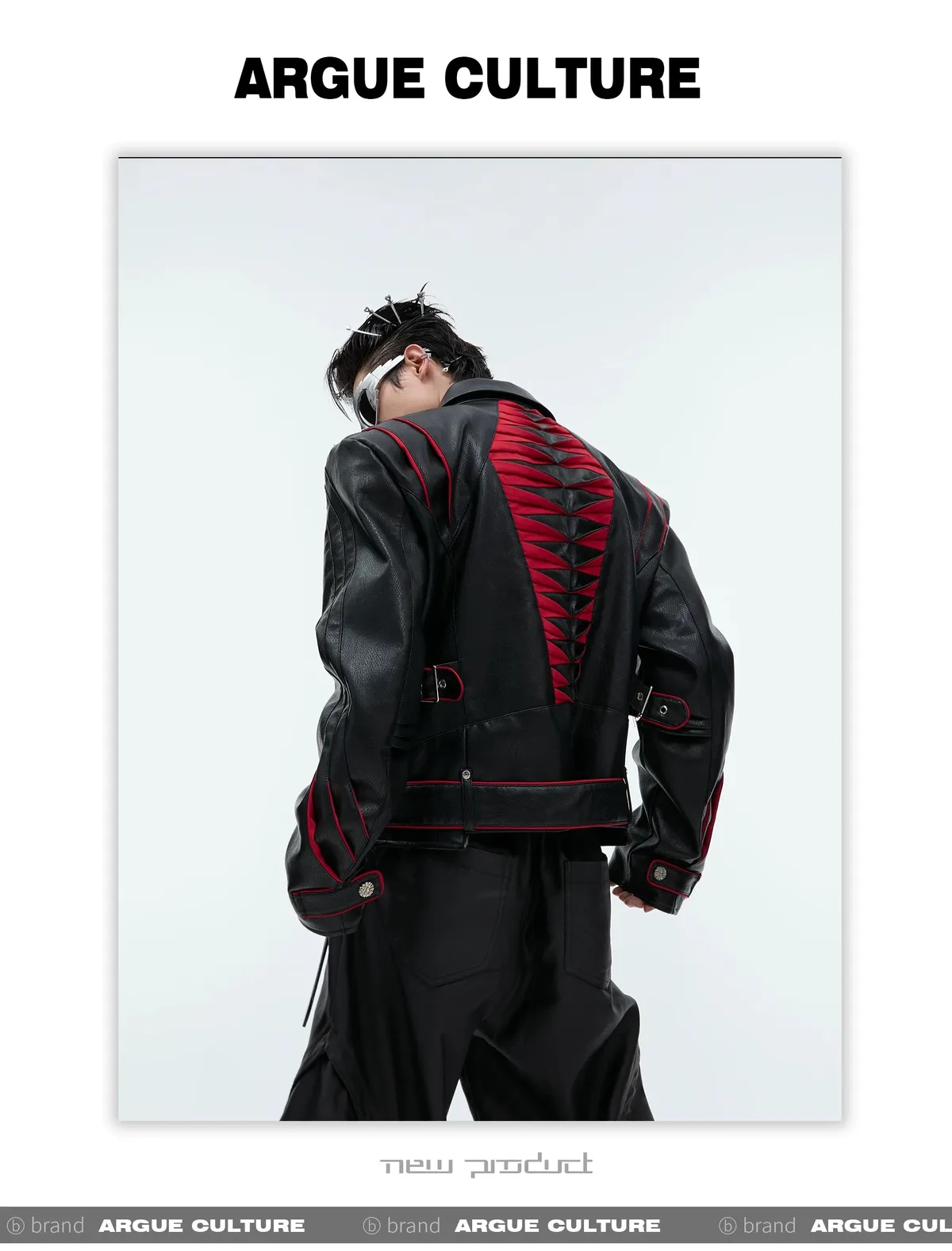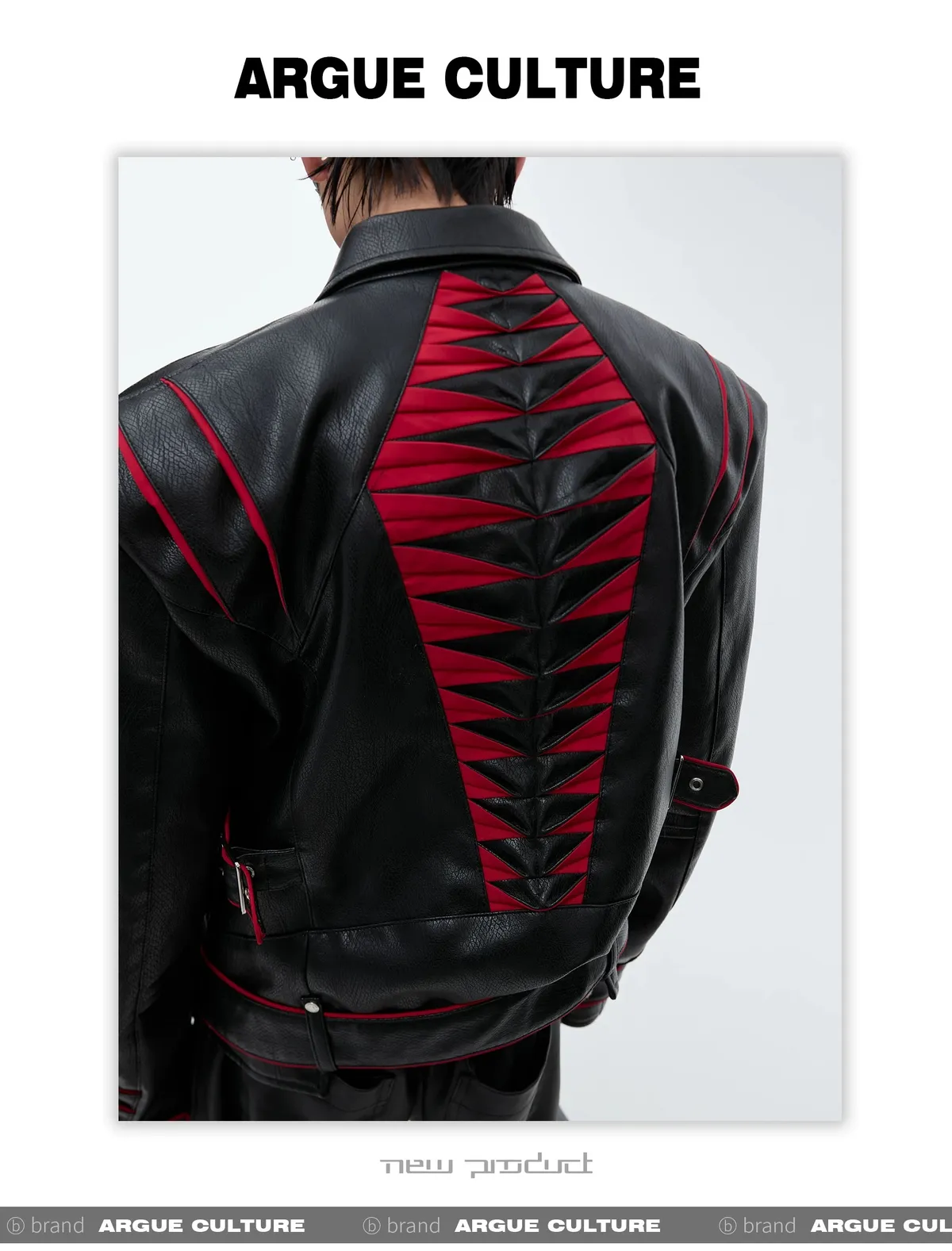 ARGUE 高訂 撞色 脊椎骨 壓褶 短版 皮外套 機車外套(黑色)