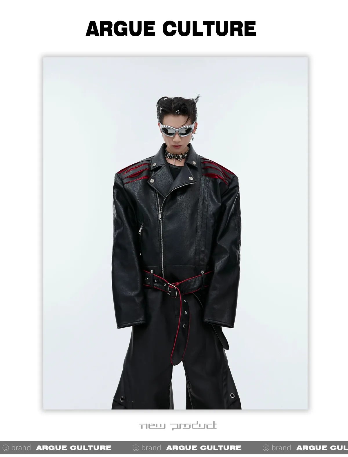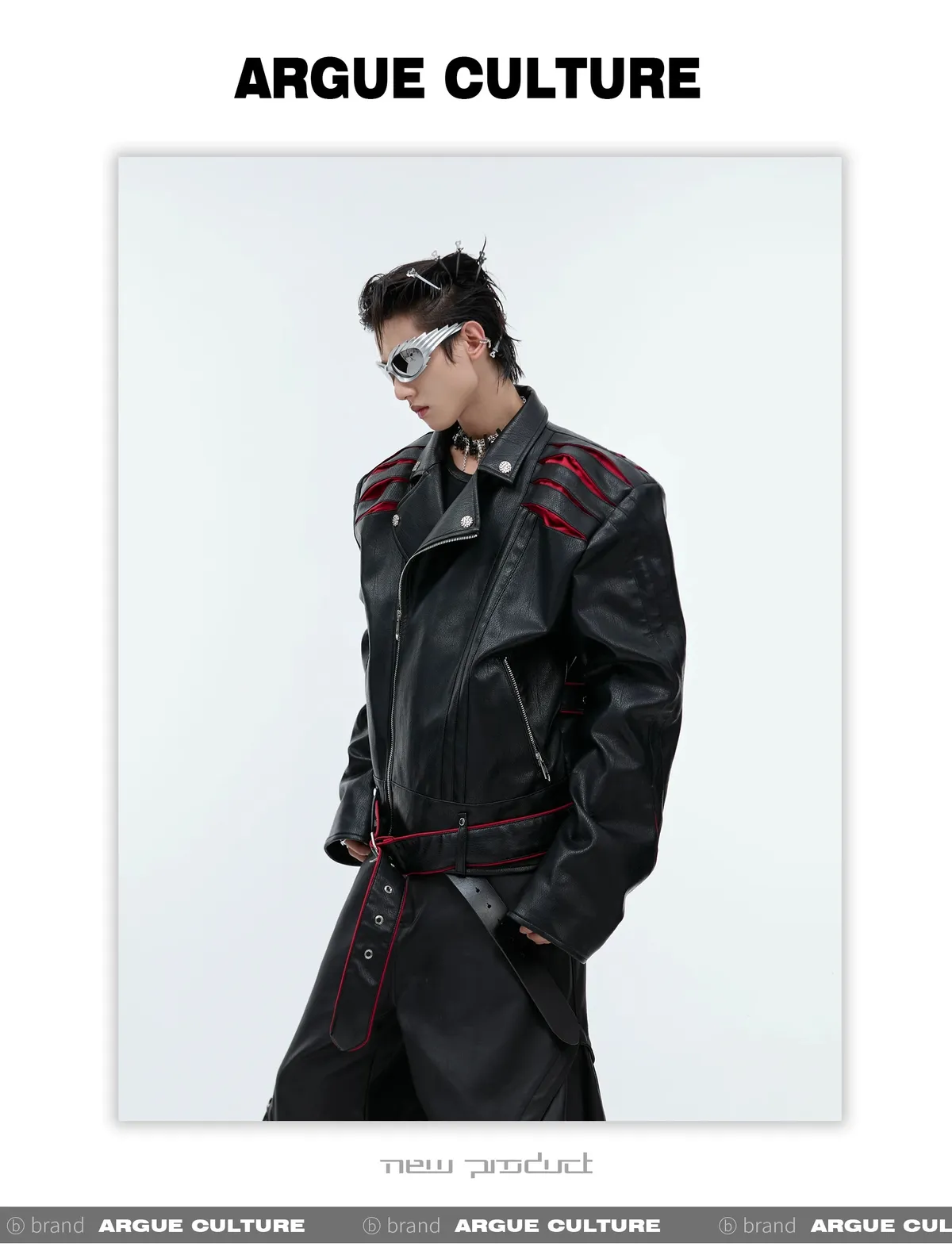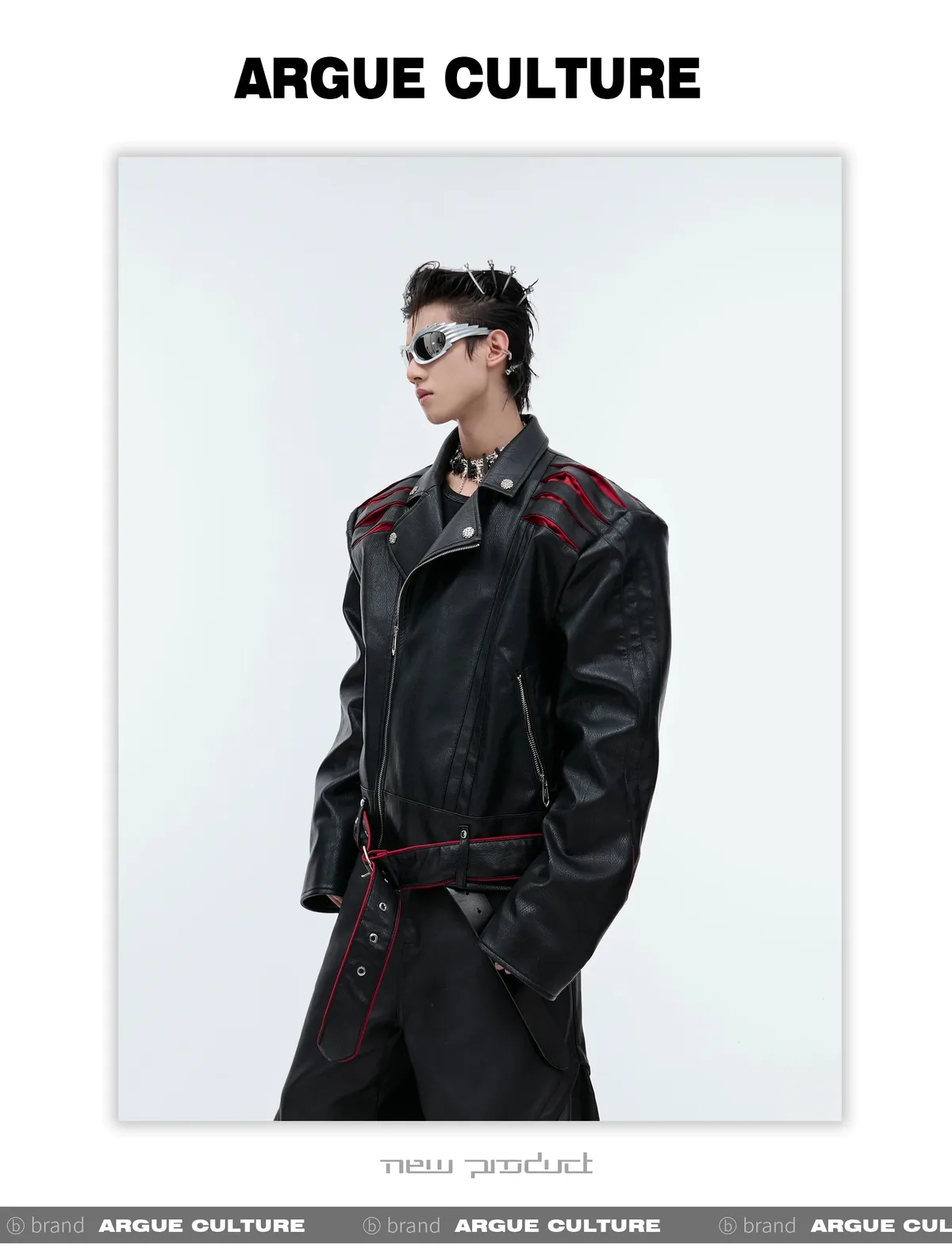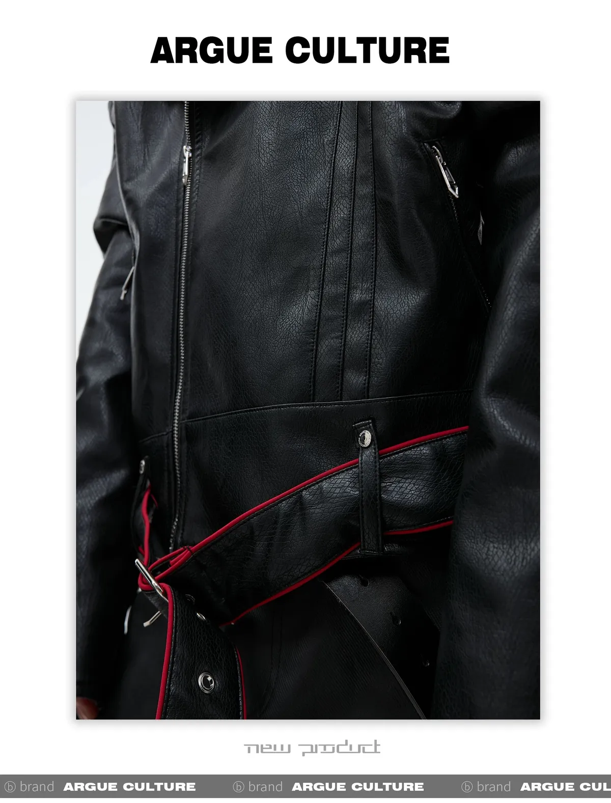 ARGUE 高訂 撞色 脊椎骨 壓褶 短版 皮外套 機車外套(黑色)