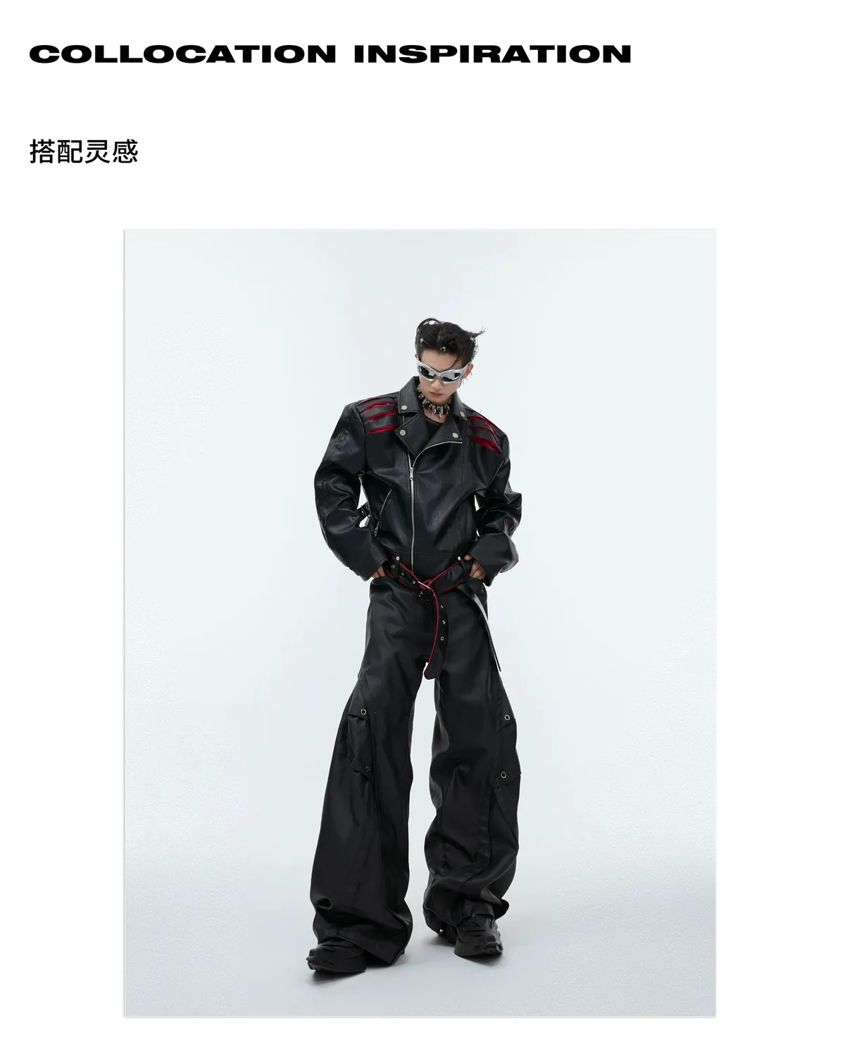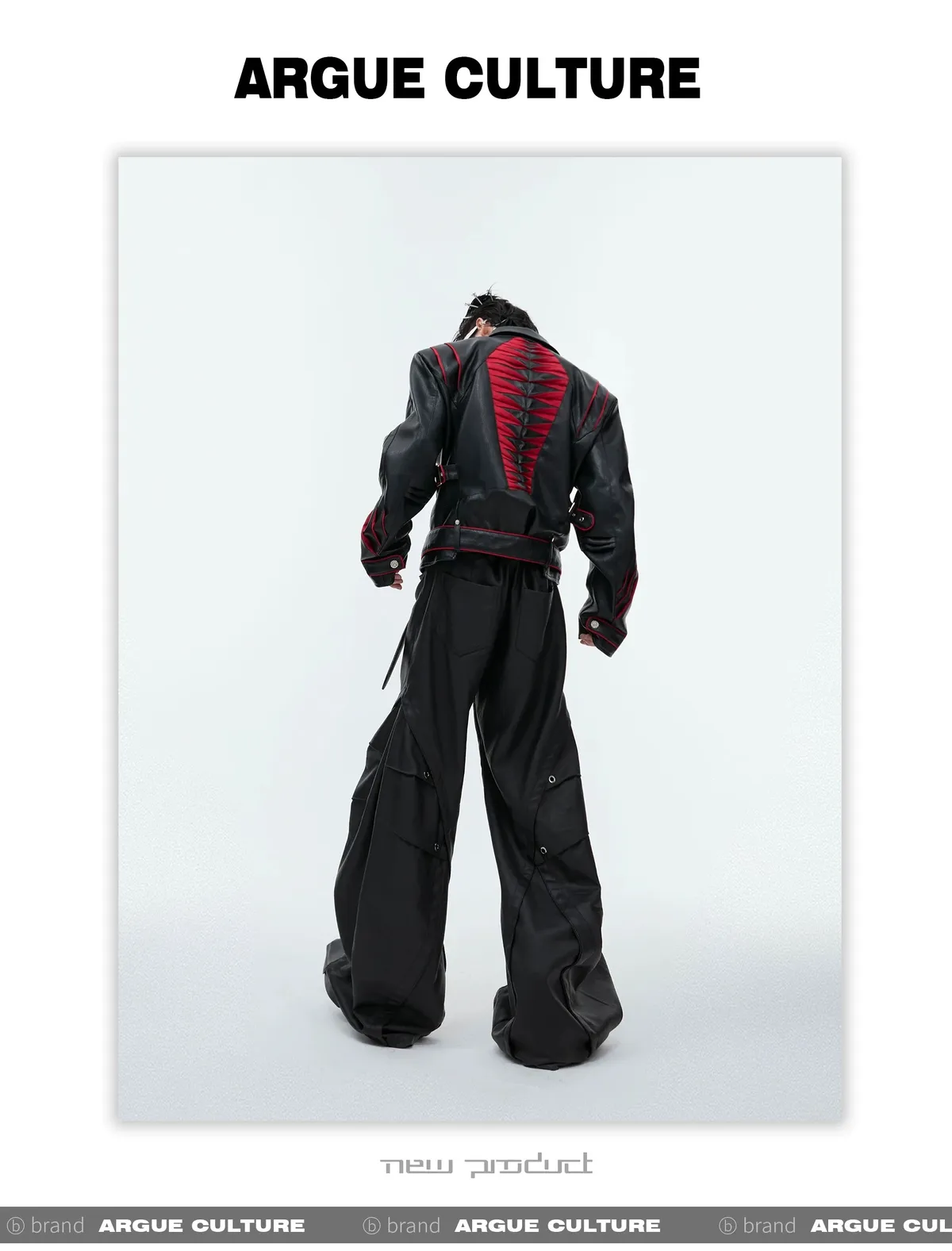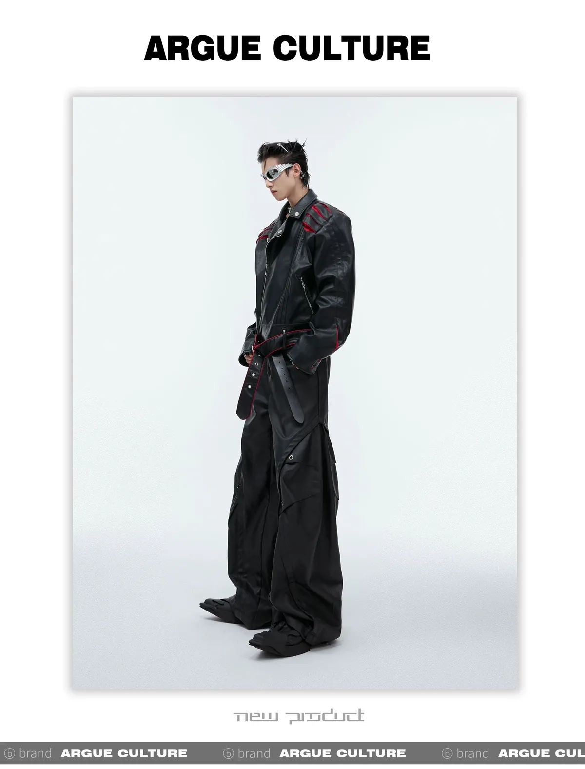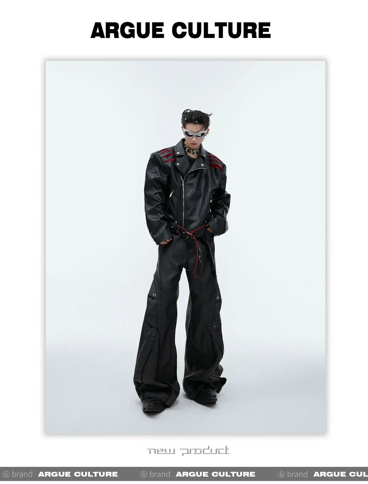 ARGUE 皮革 飛機釦 廓形 帽踢 皮褲 闊腿褲 套裝(黑色)