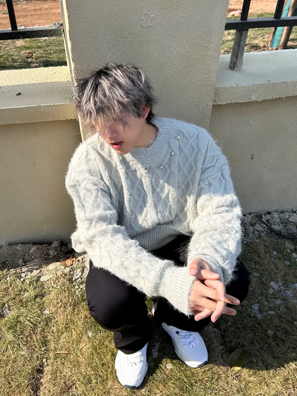 ARGUE 大翻領 柔軟親膚 針織 毛衣(白/灰)