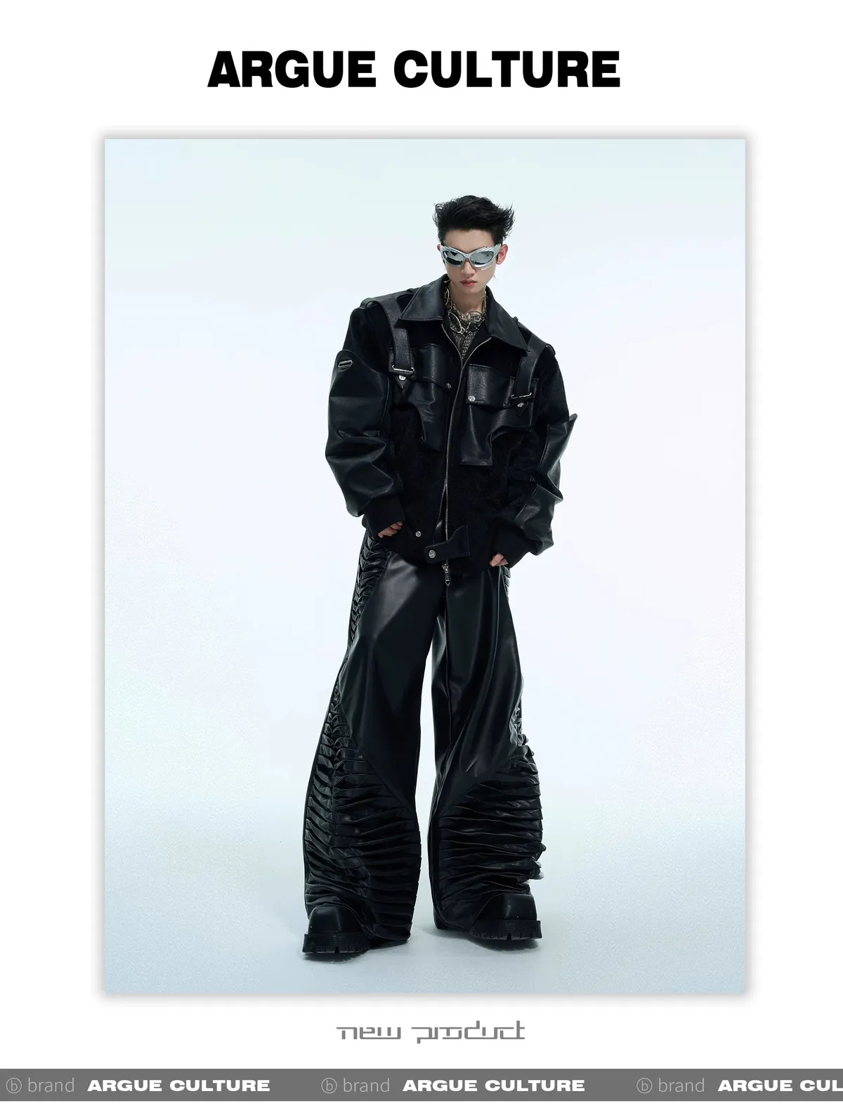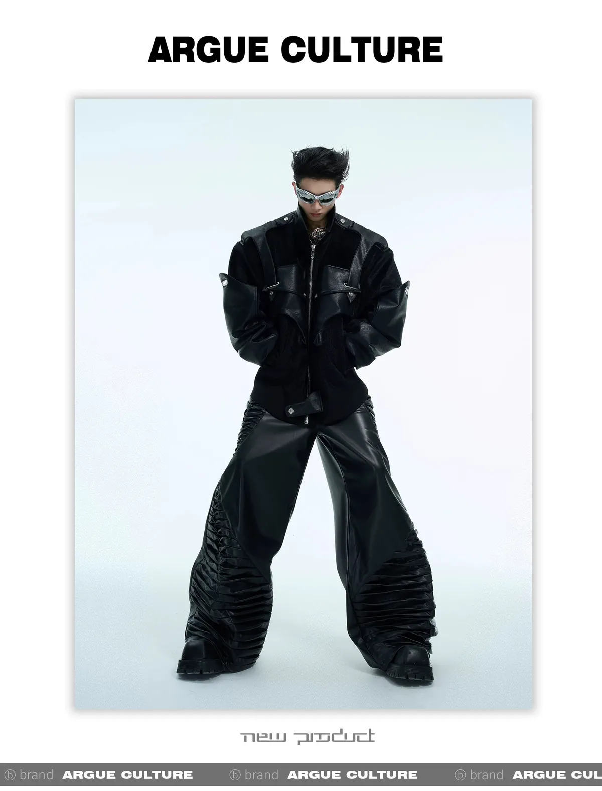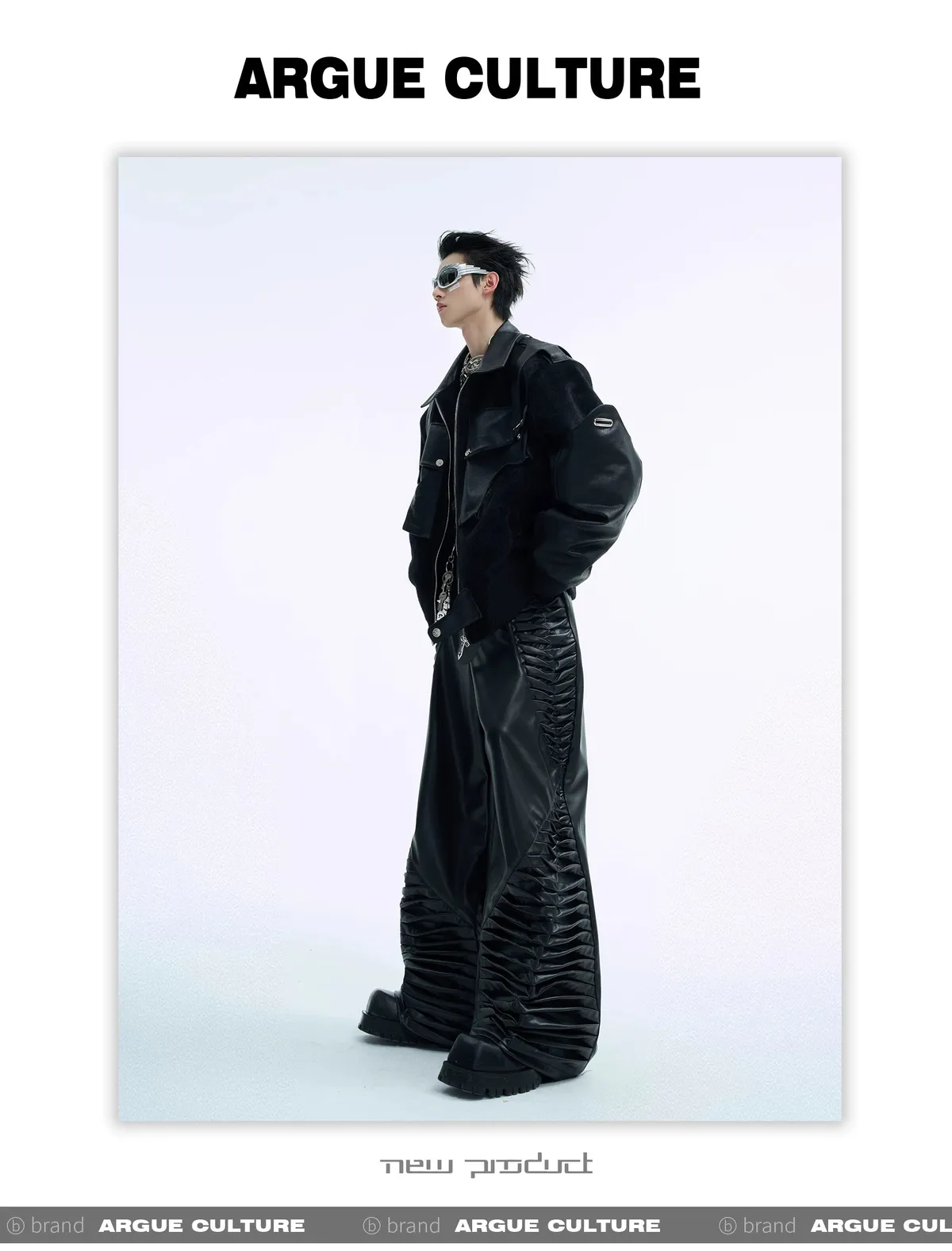 ARGUE 脊椎壓褶 重磅 皮褲(黑色)