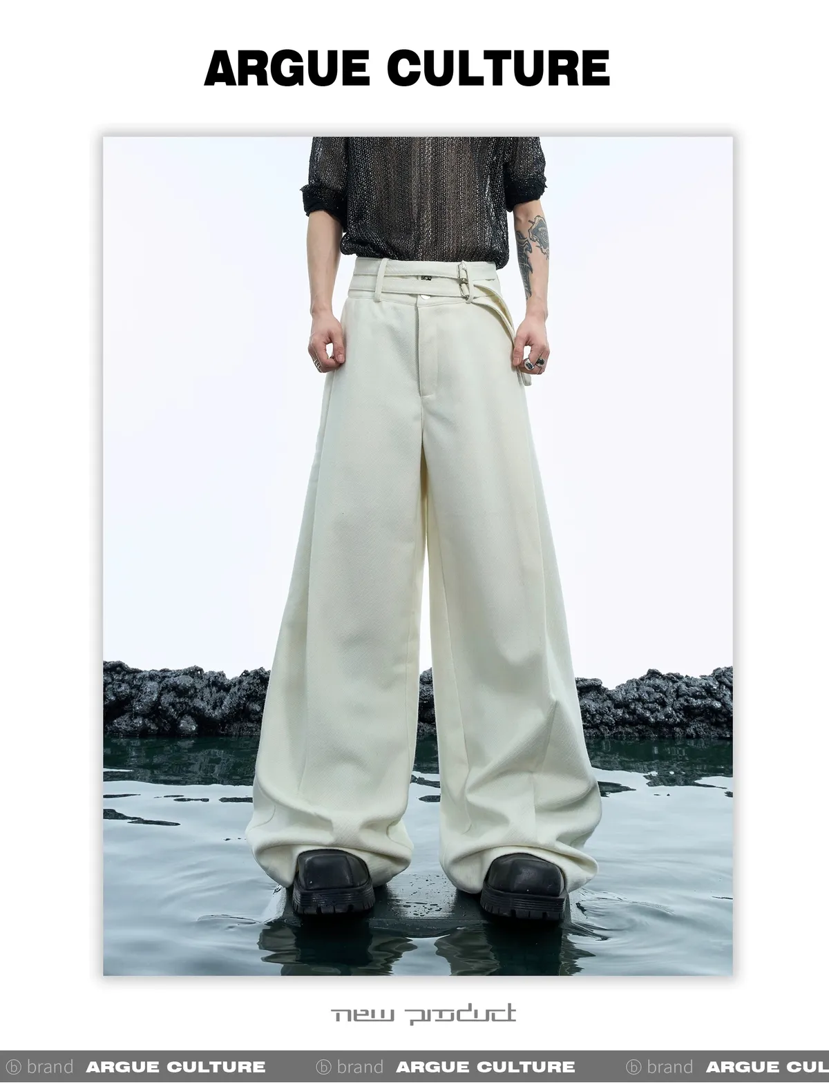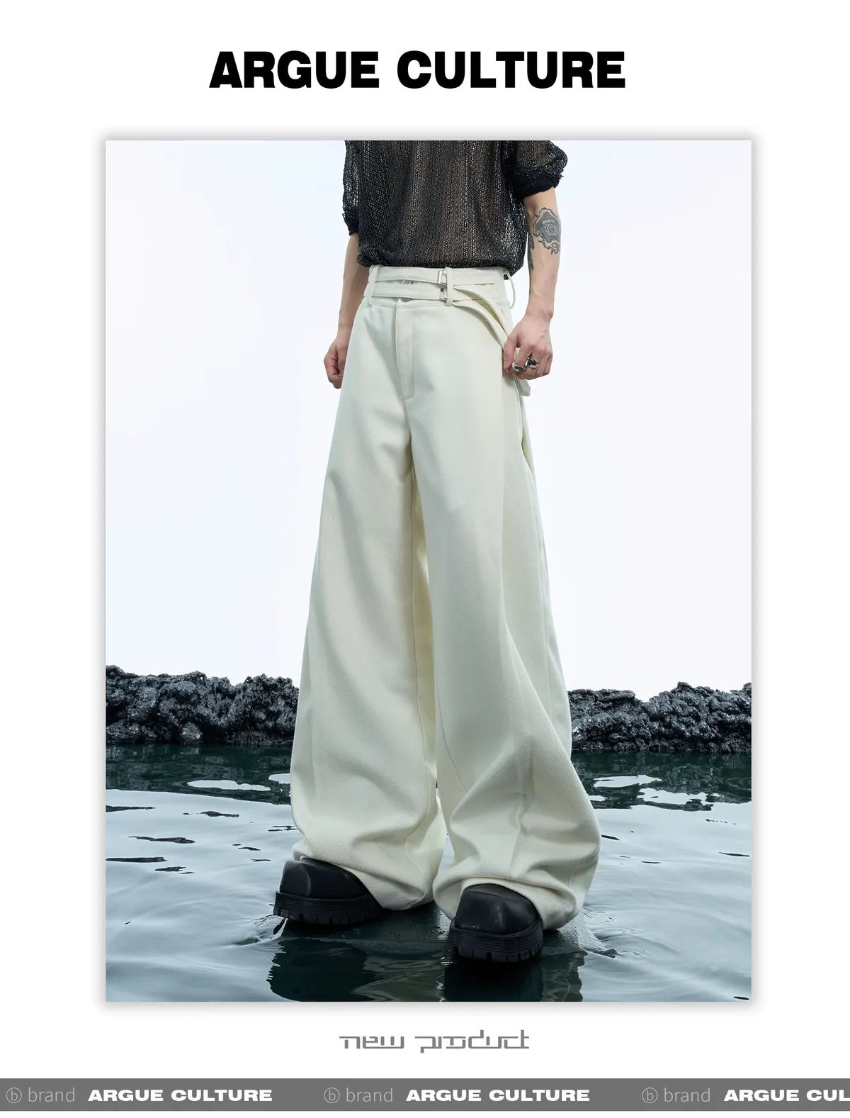 ARGUE 簡約 飄帶 闊腿 西裝褲(黑色)