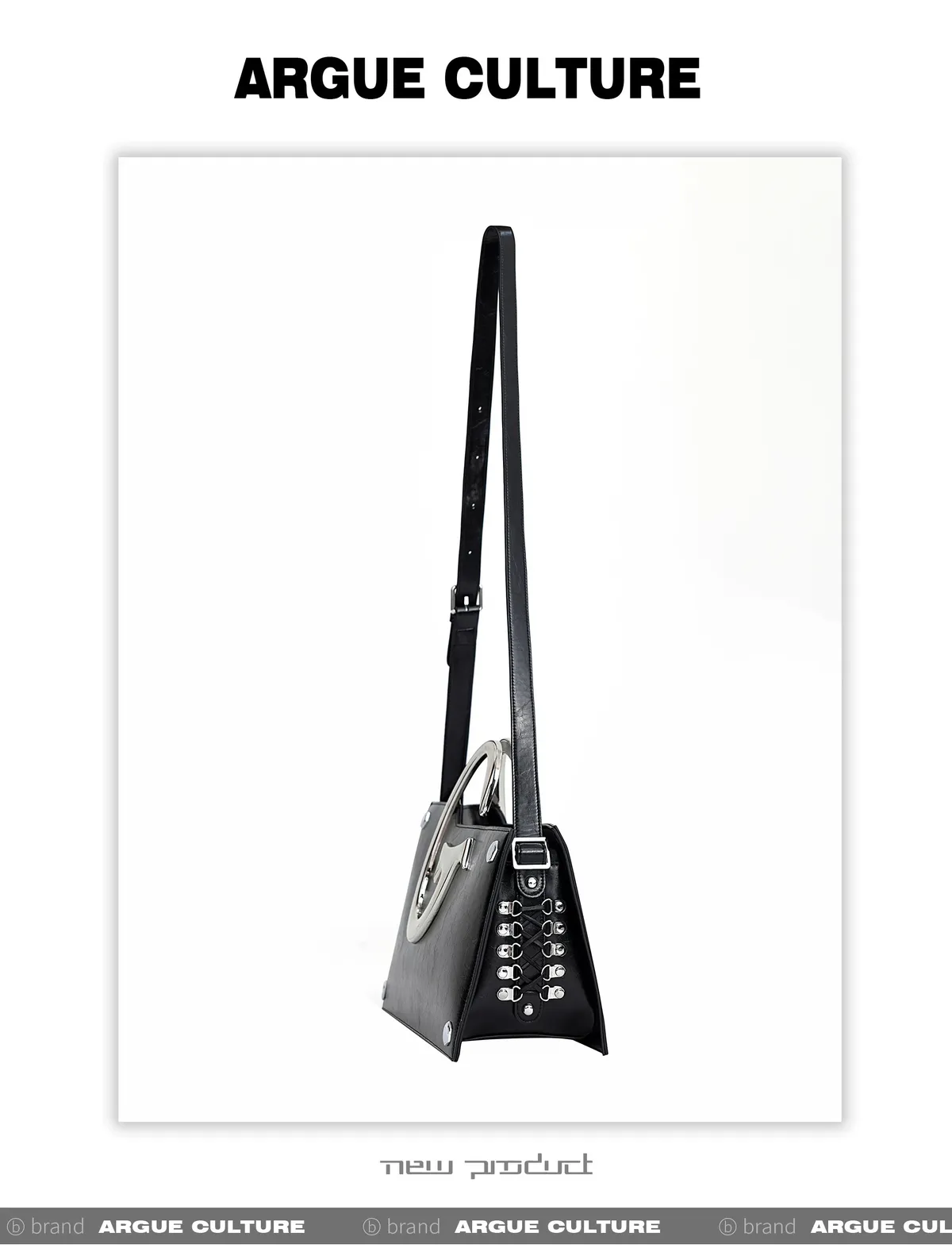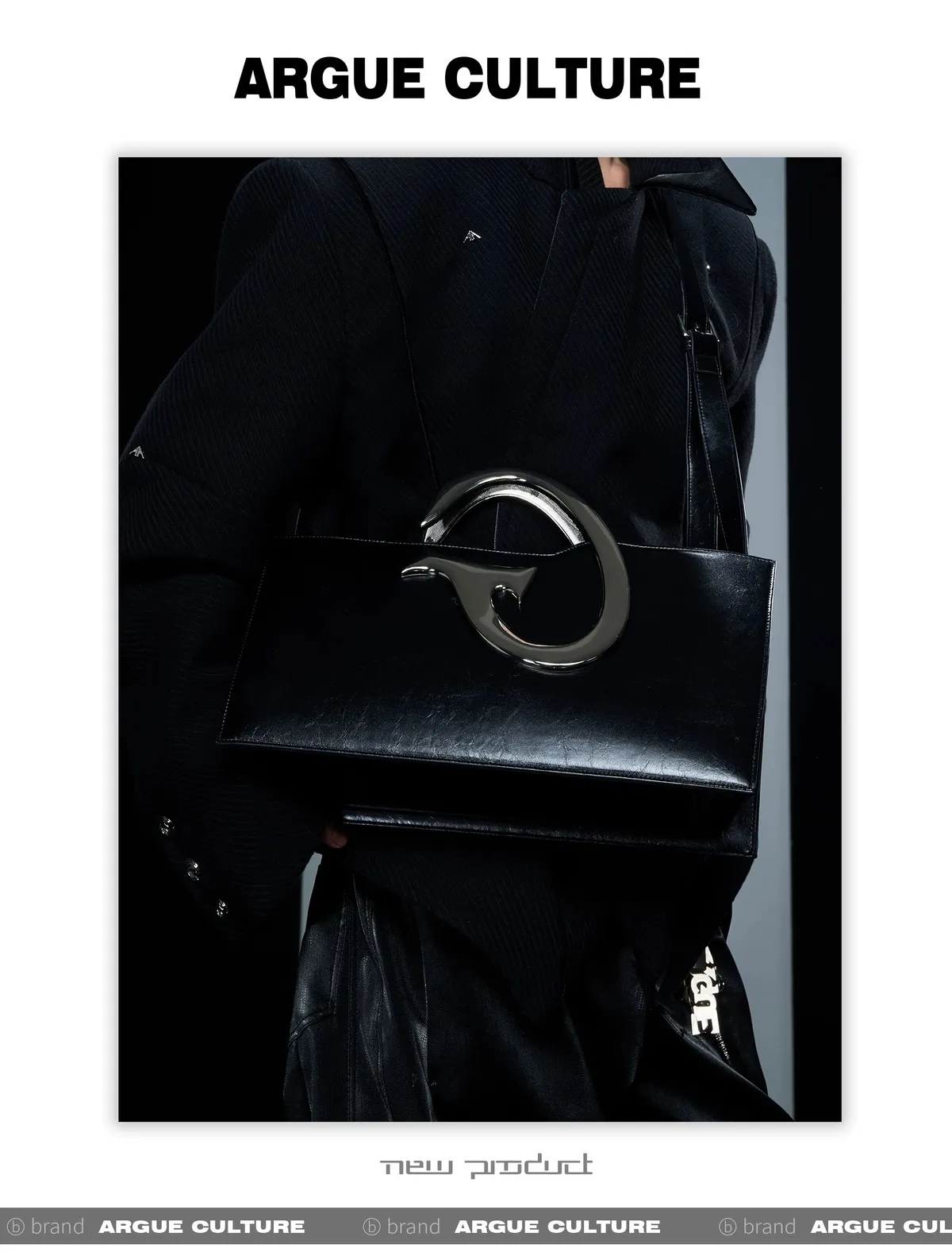 ARGUE 高級感 簡約 金屬 單肩包(黑色)