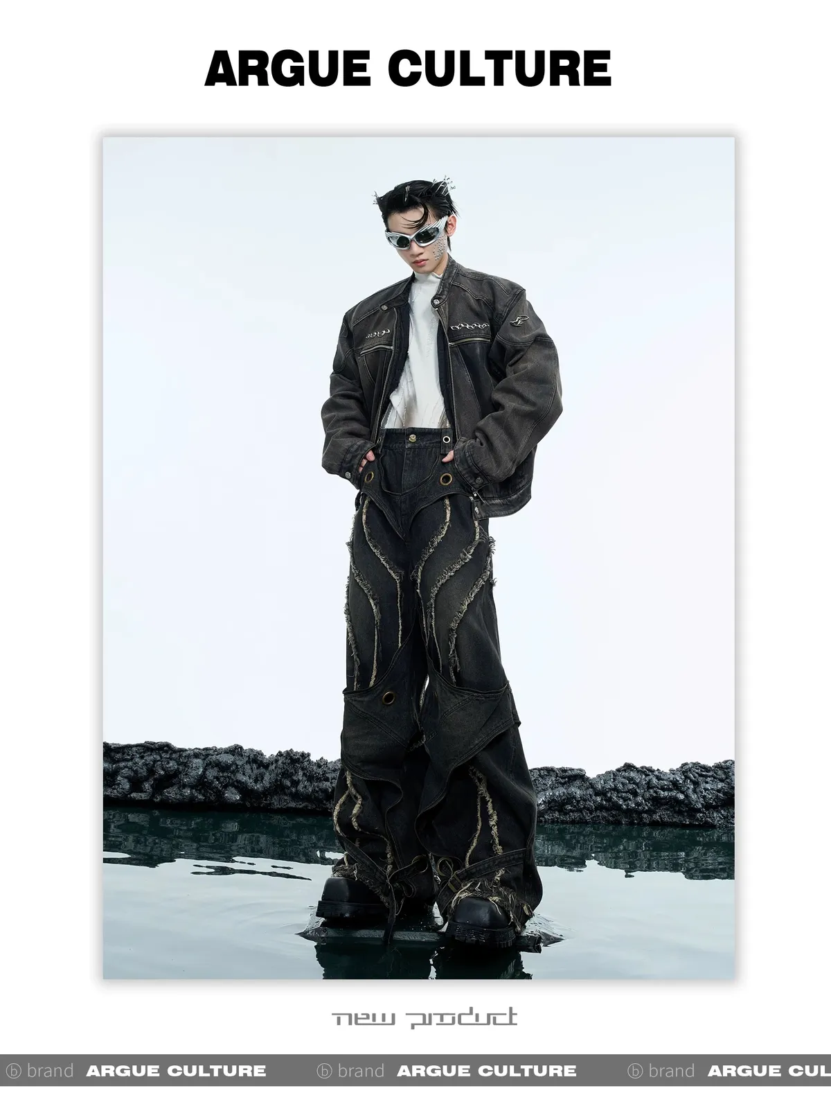 ARGUE 火焰拼接 破壞 闊腿 長褲(黑色)