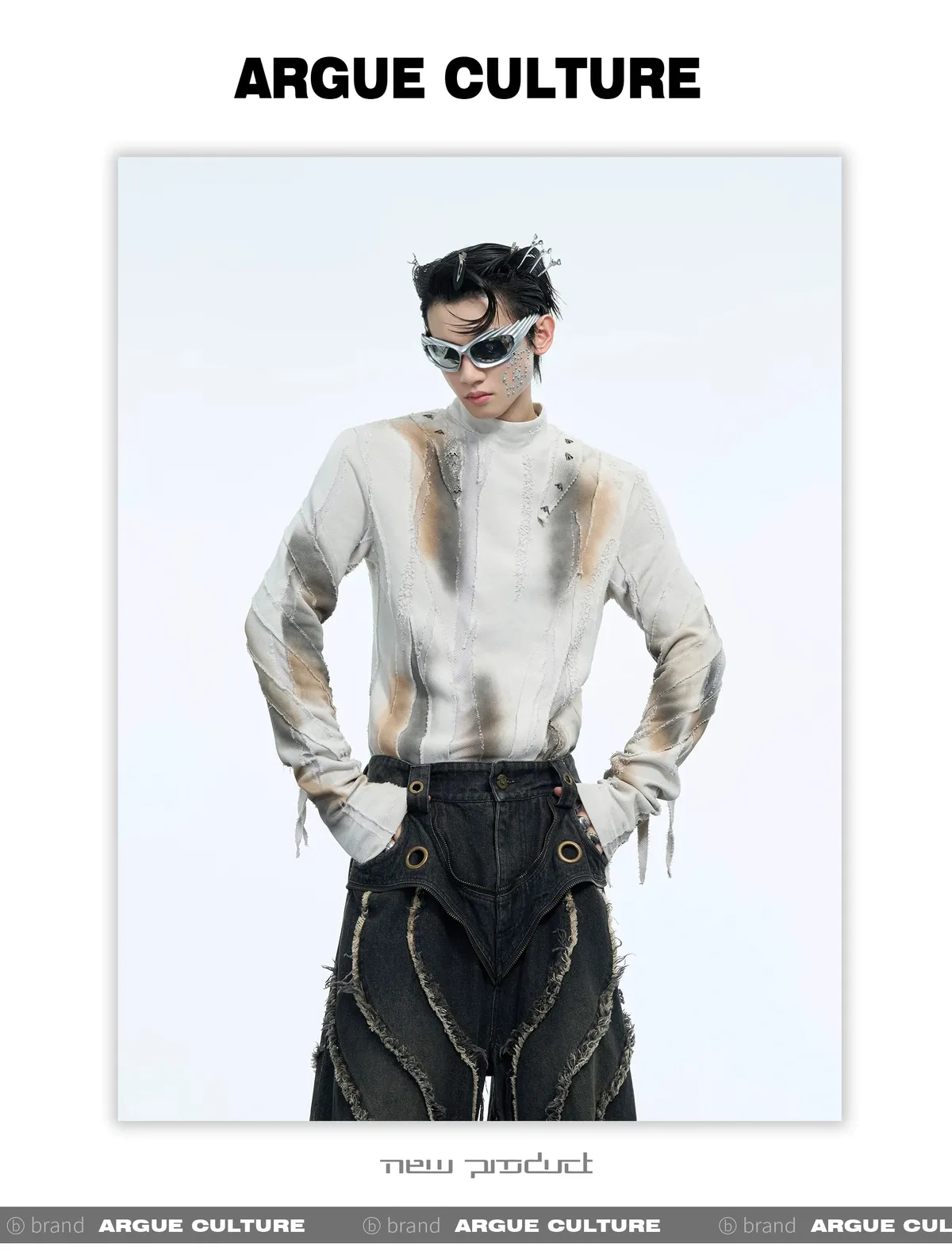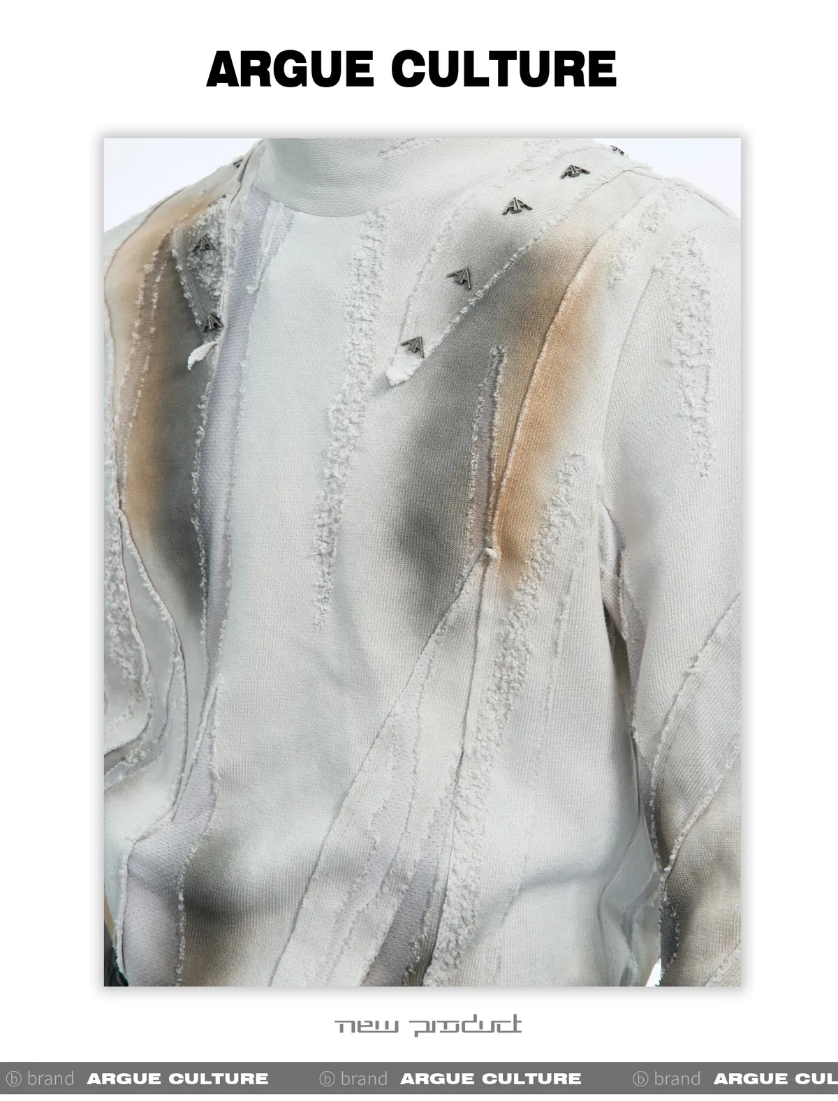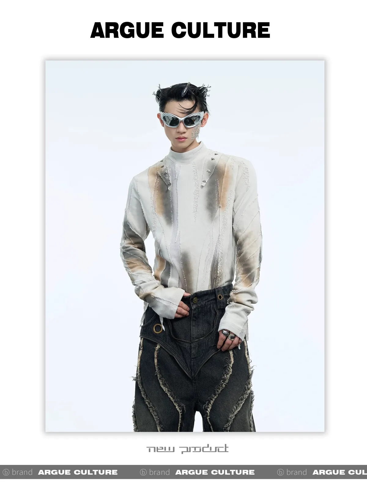 ARGUE 做舊紮染 漸層 高領 長袖(白色)