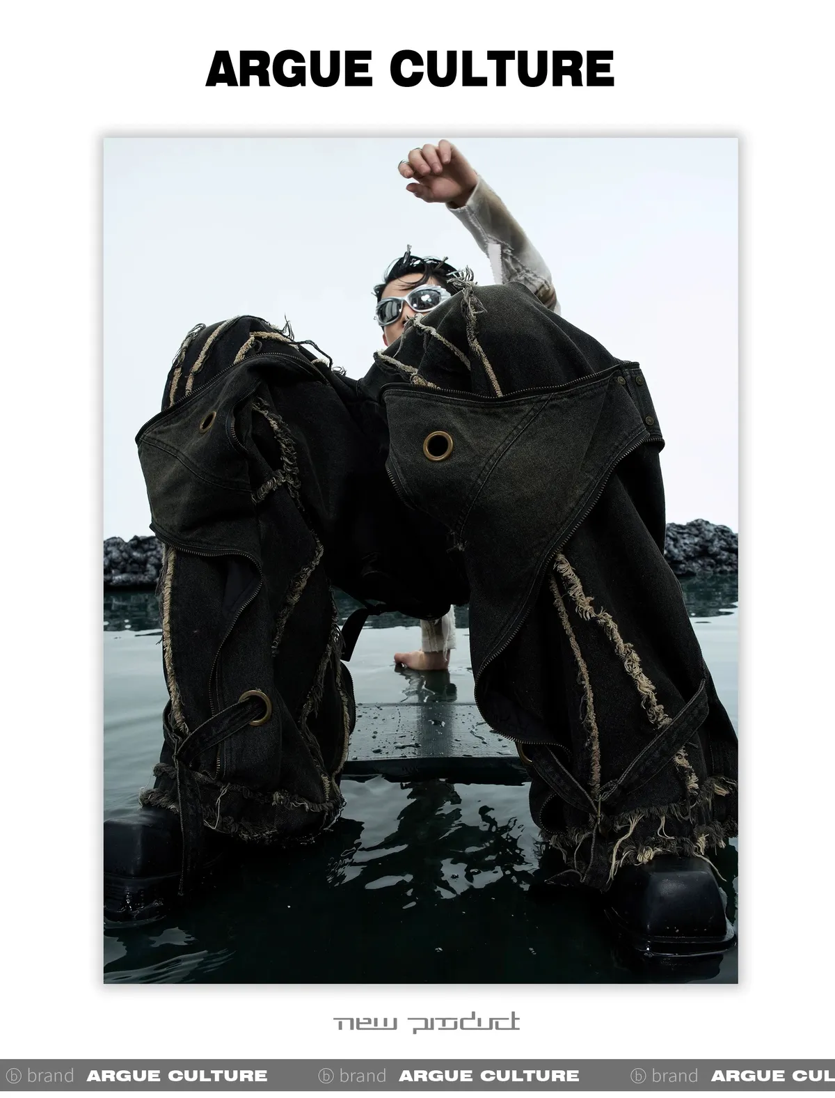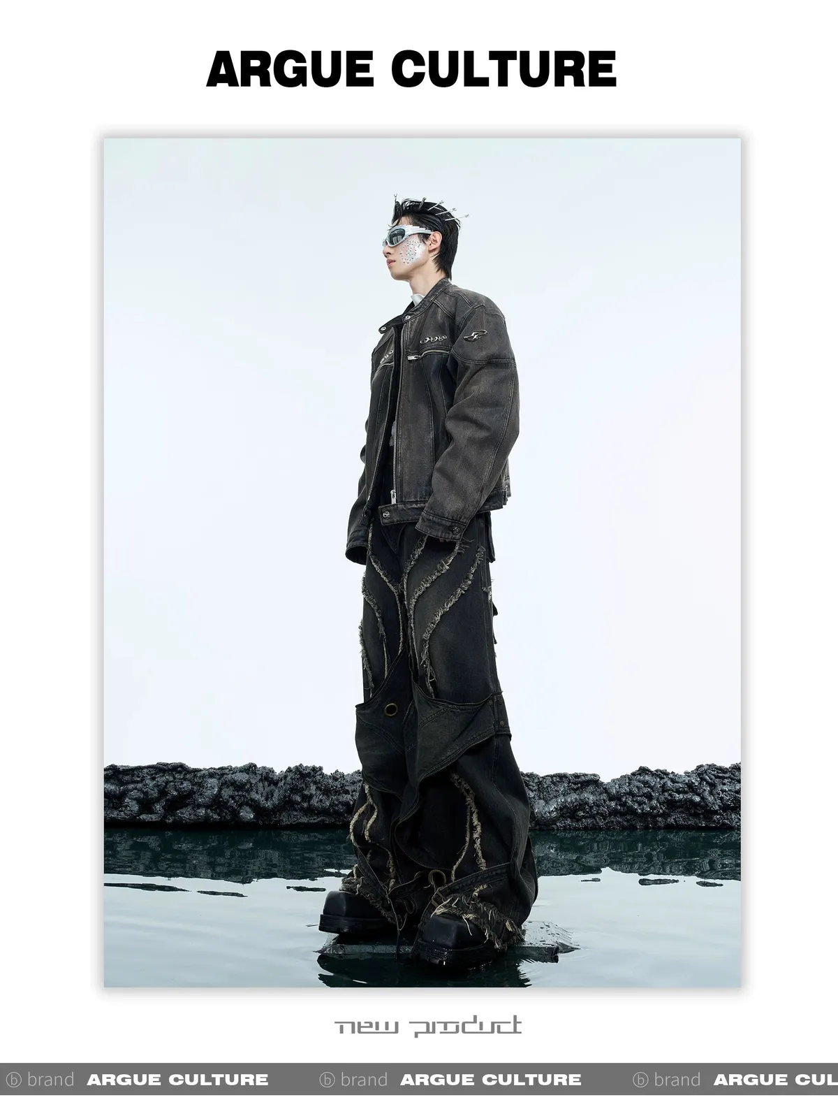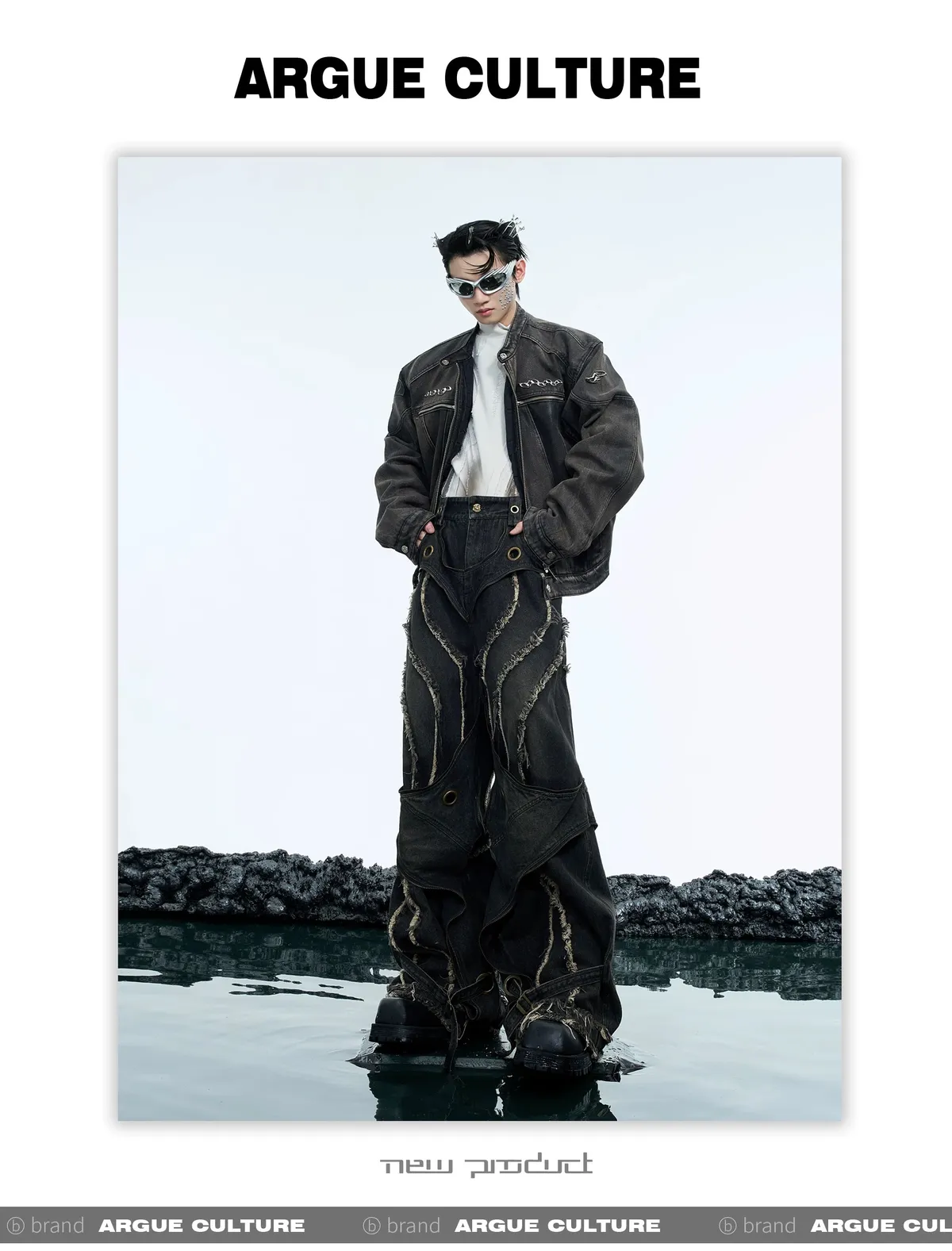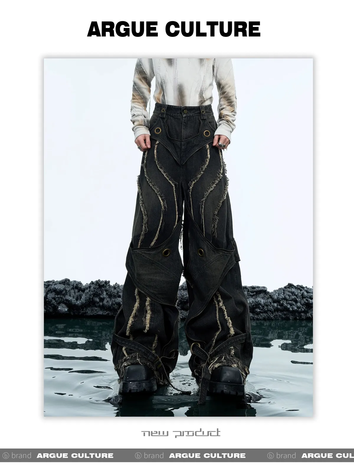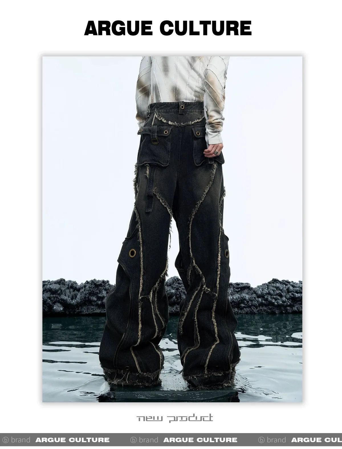 ARGUE REMAKE感 拼接 水洗 廓形 牛仔褲 (黑色)
