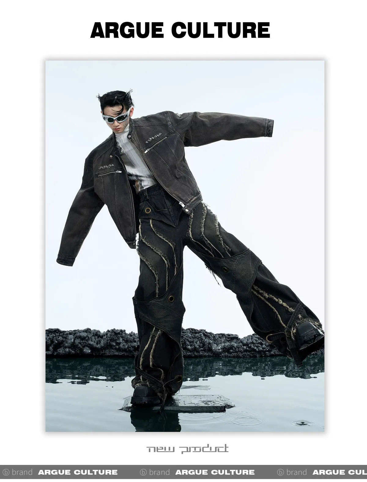 ARGUE 水波紋 破壞抽鬚 做舊 牛仔褲(黑色)