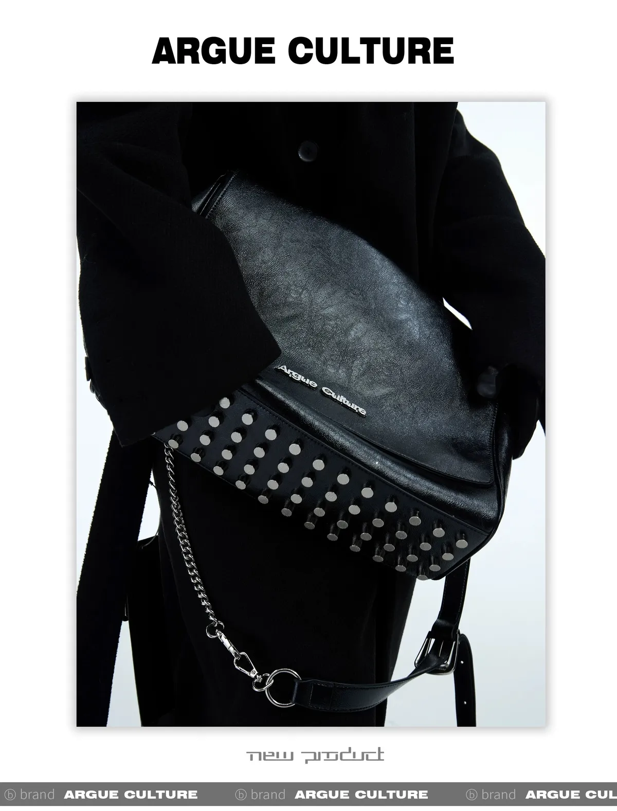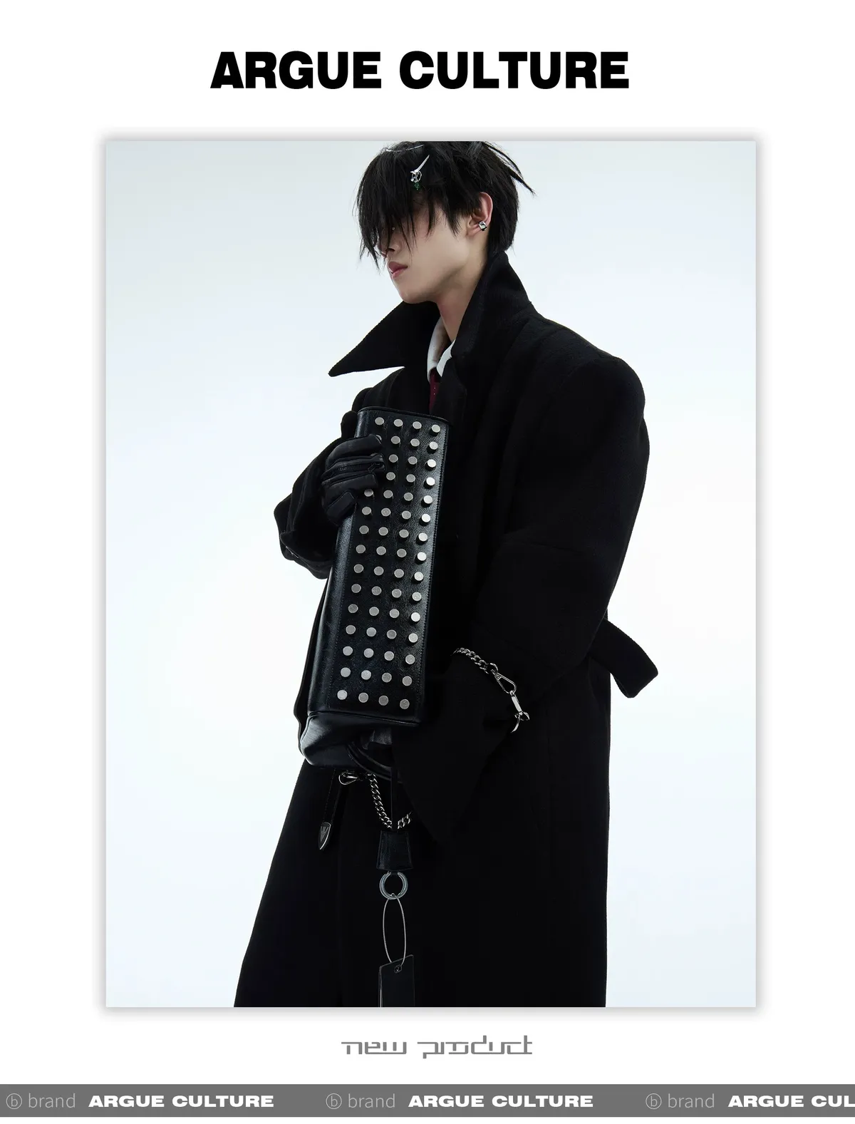 ARGUE 金屬卯釘 抽鬚 領帶(黑/白/紅)