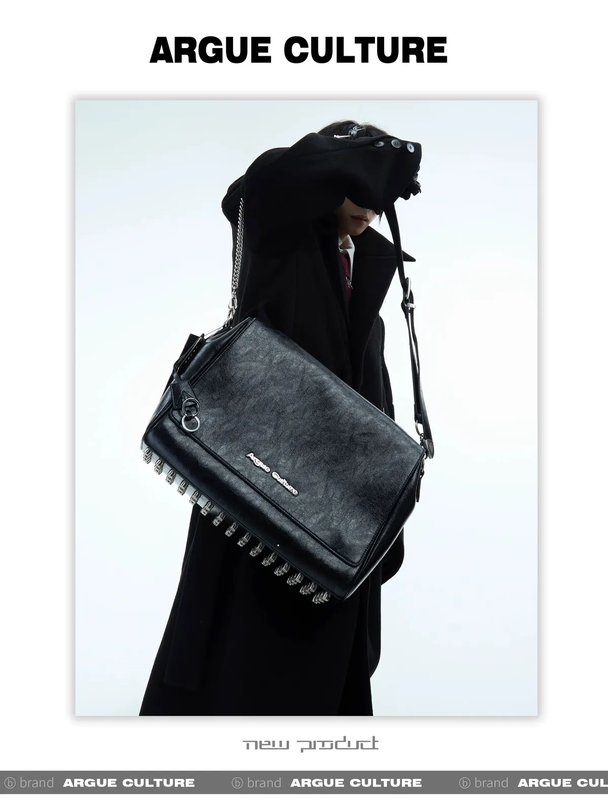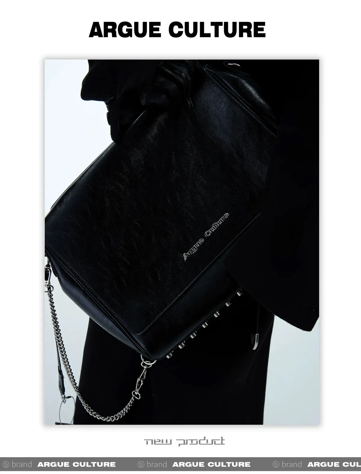 ARGUE 紋理 大容量 雙背鏈條 托特包(黑色)