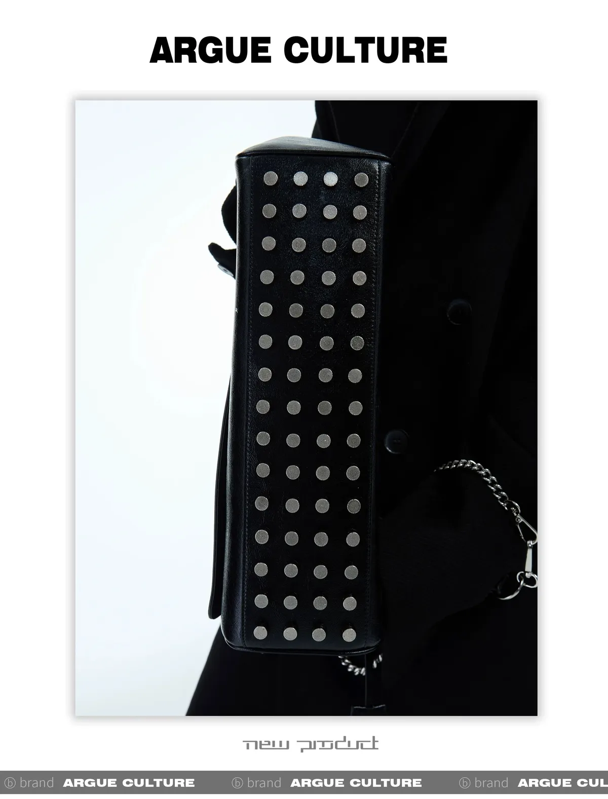 ARGUE 金屬卯釘 寬短 皮革 外套(黑色)