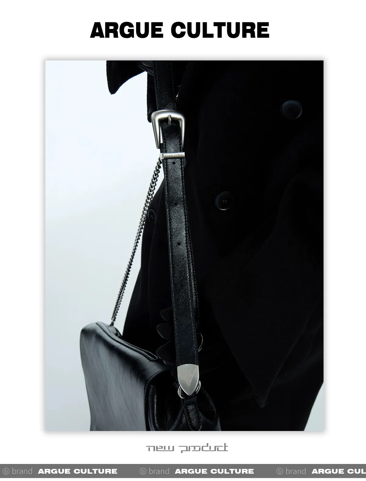 ARGUE 雙排扣 綁帶 毛呢 大衣(黑/灰)