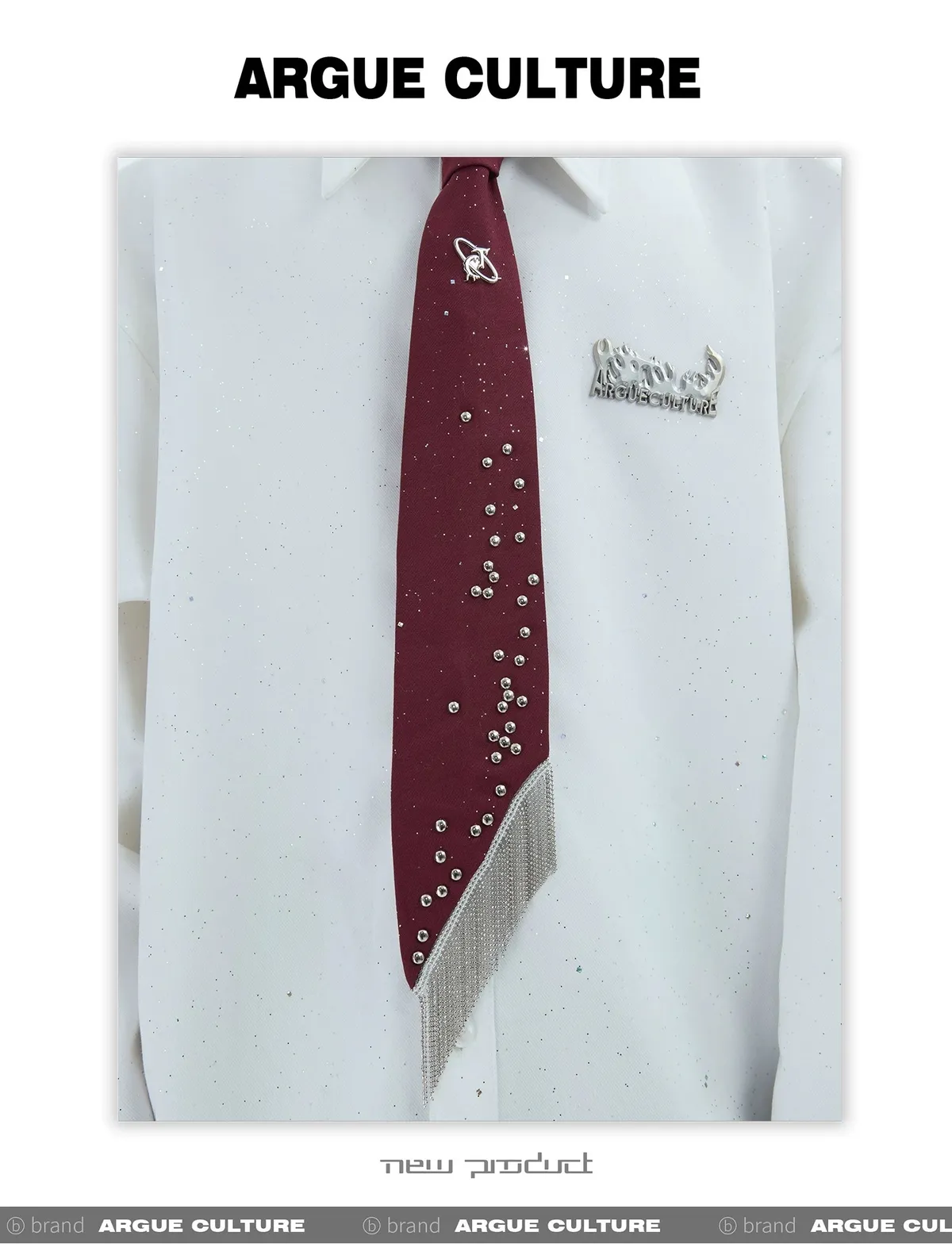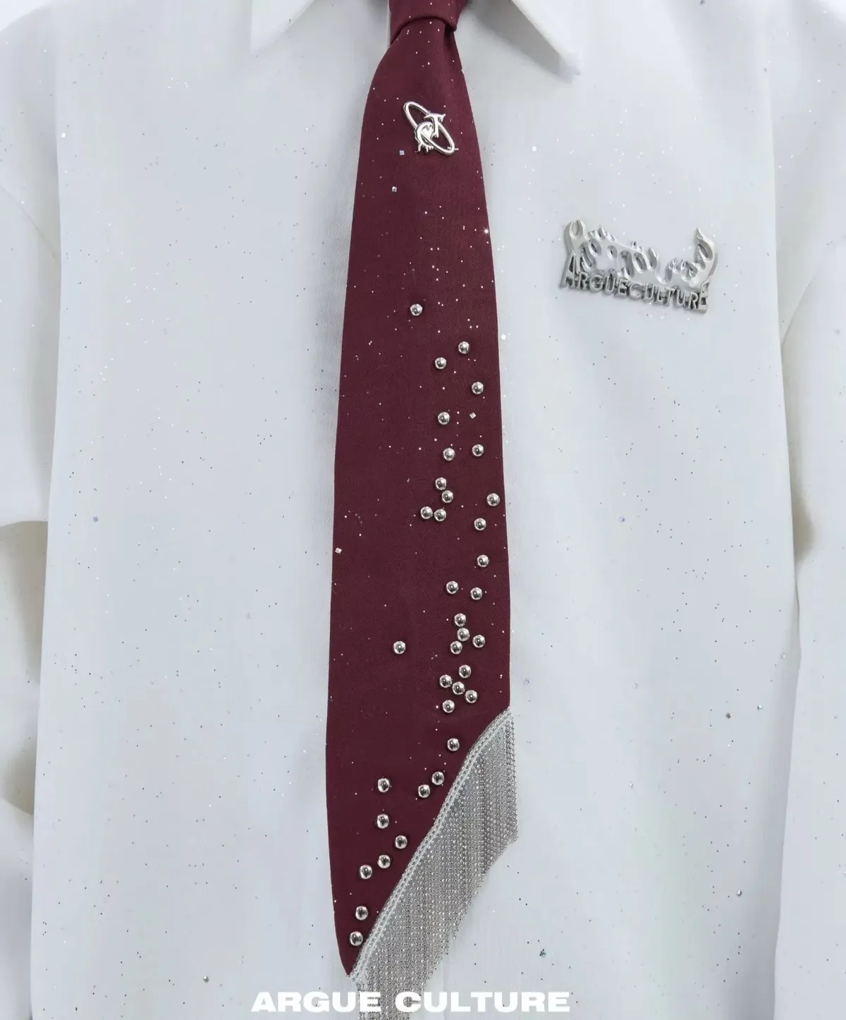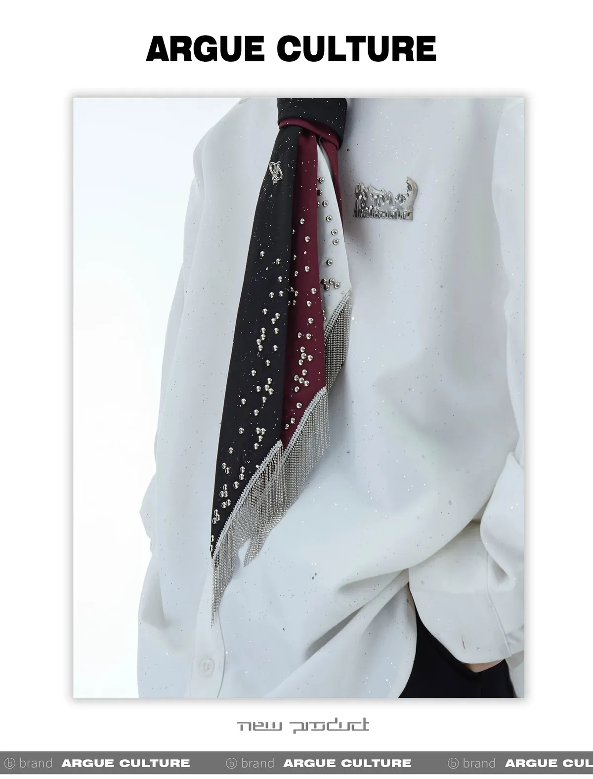 ARGUE 金屬卯釘 抽鬚 領帶(黑/白/紅)