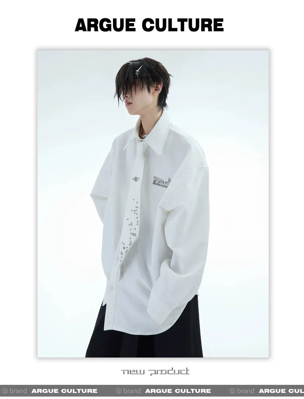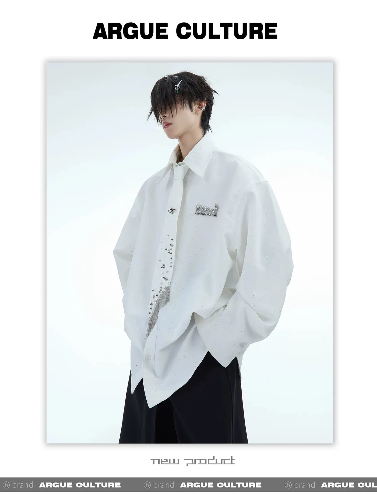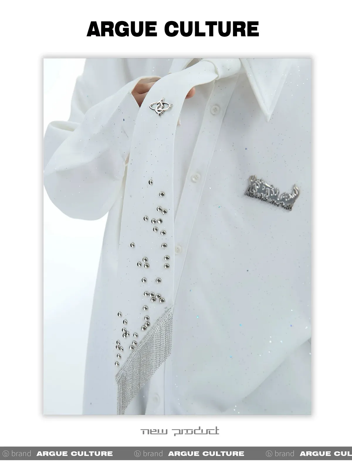 ARGUE 金屬卯釘 抽鬚 領帶(黑/白/紅)