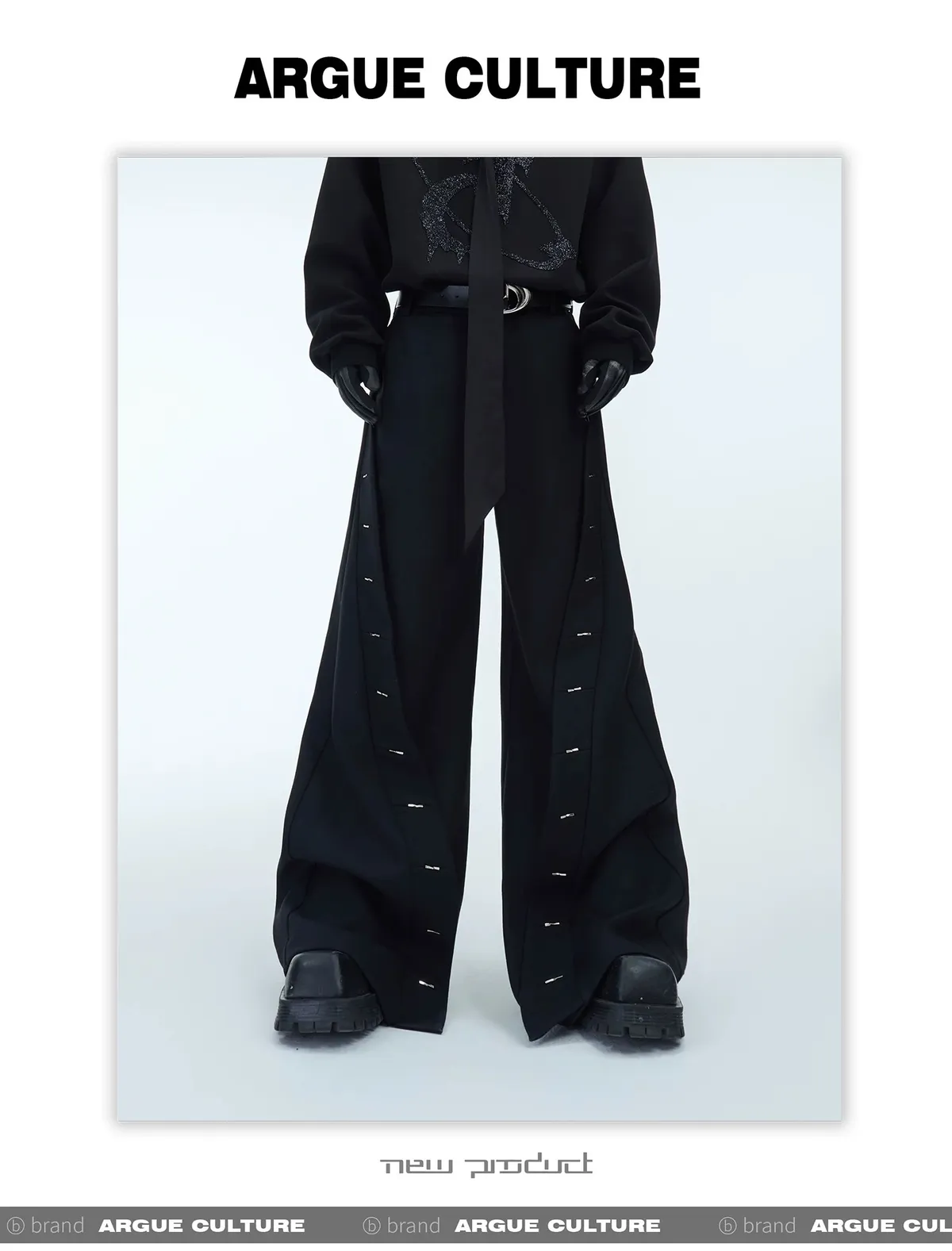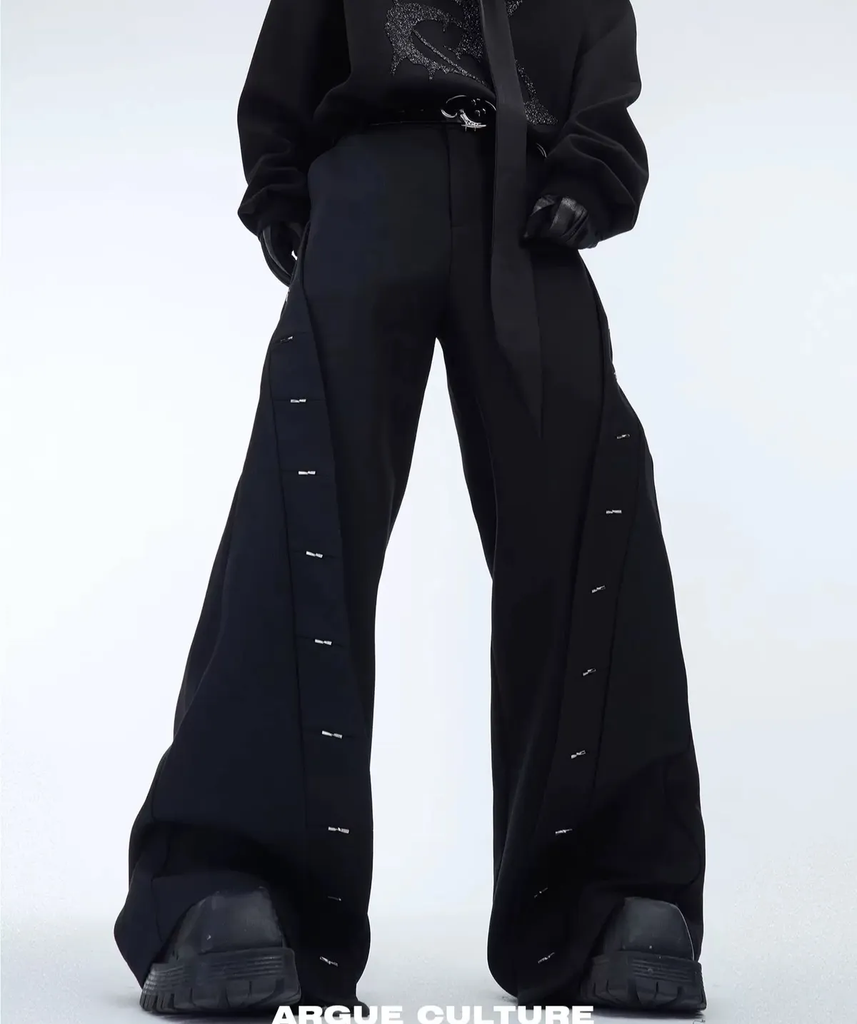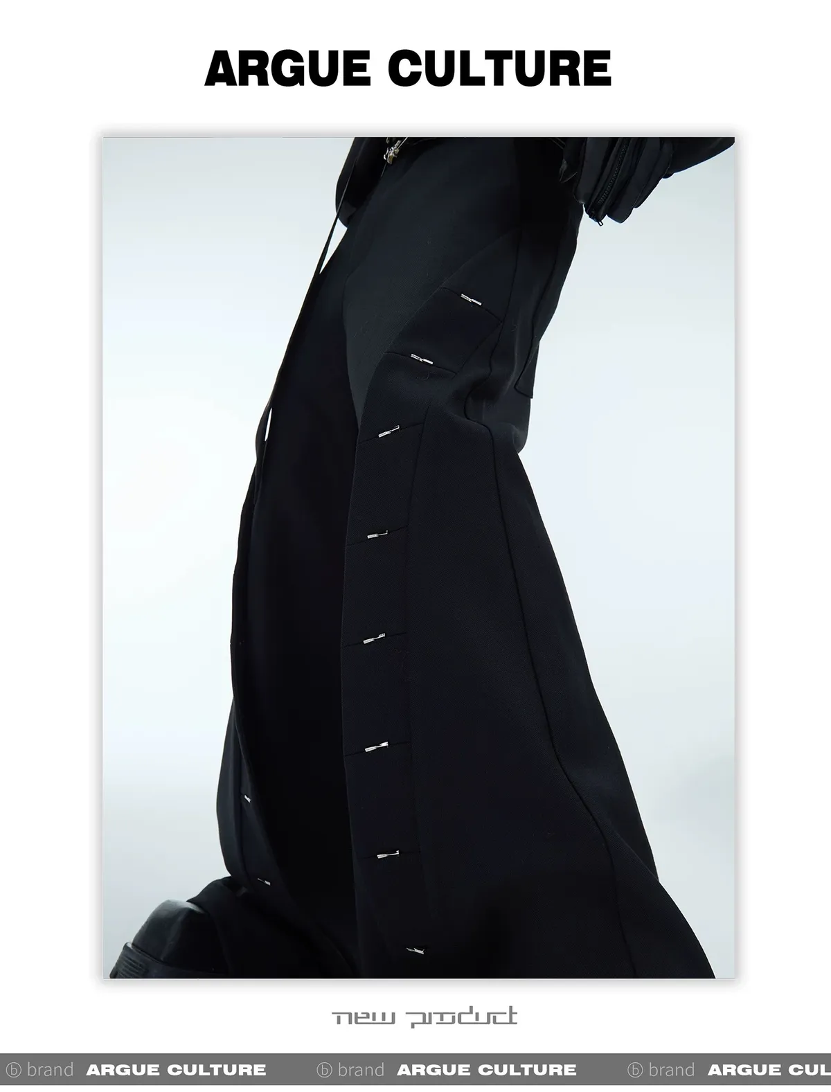 ARGUE 設計感 金屬釘 分割 西裝褲(黑色)