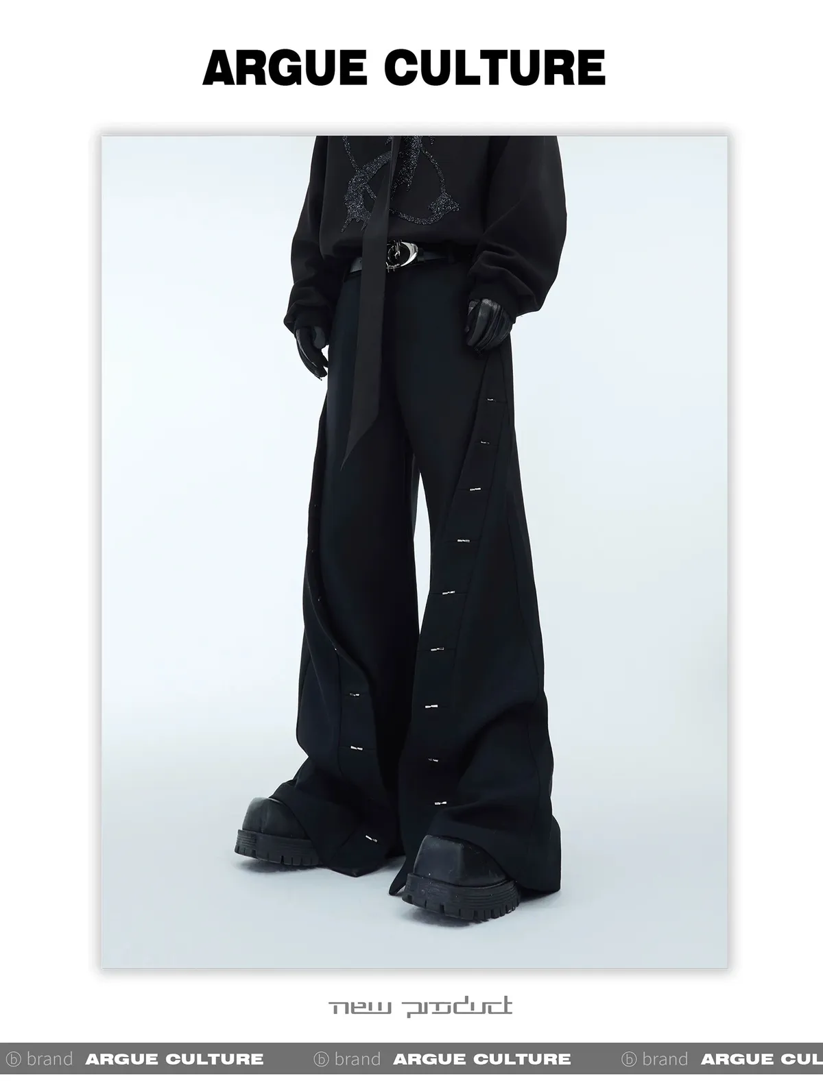 ARGUE 先鋒亮面 微喇叭 長褲(黑色)