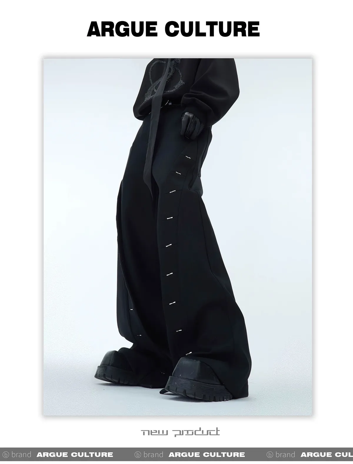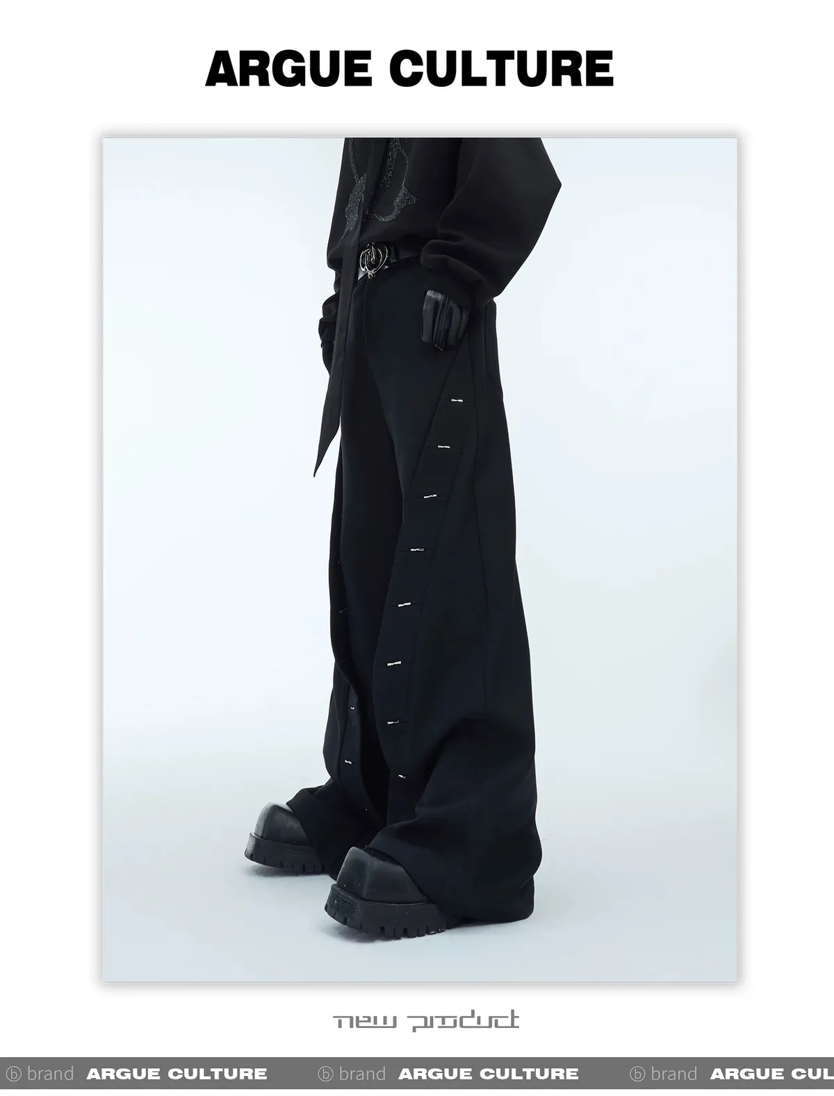 ARGUE 異形 結構皺褶 排扣 長褲(黑/杏)