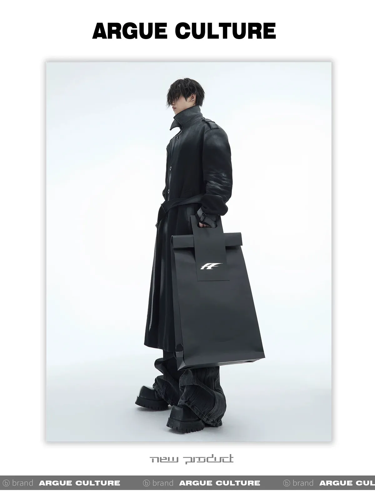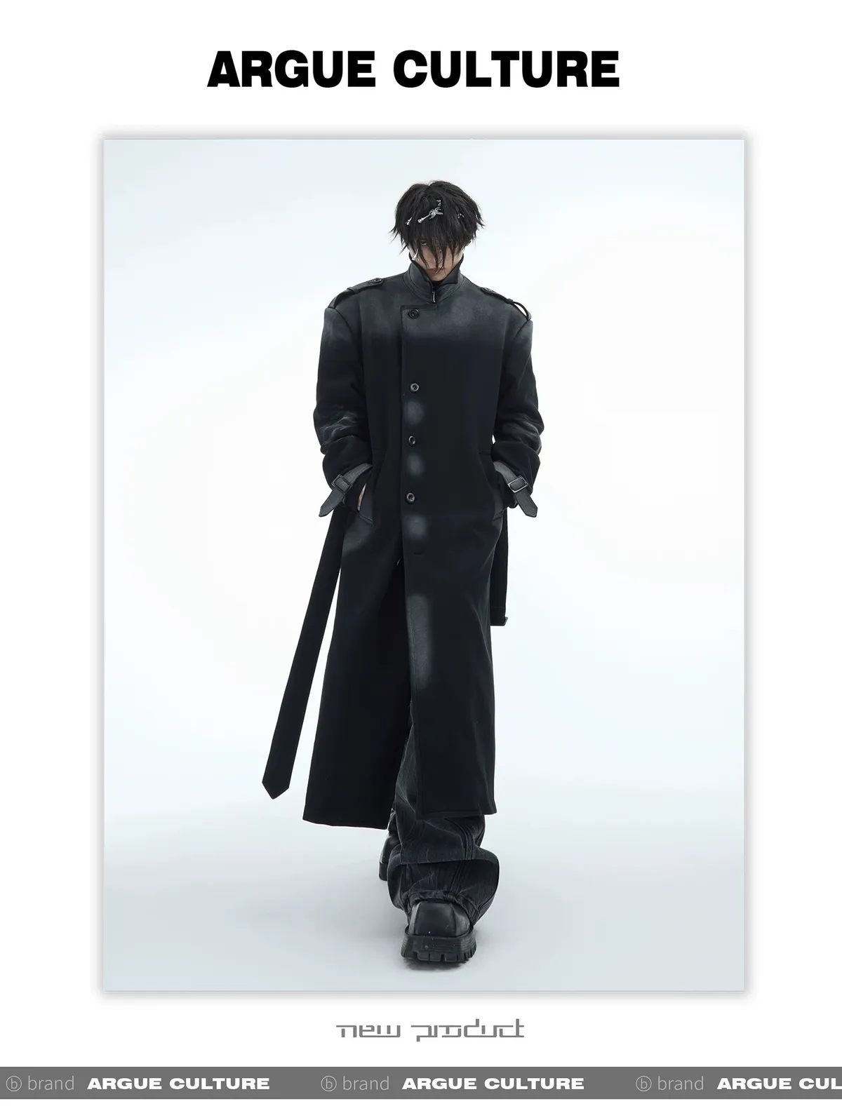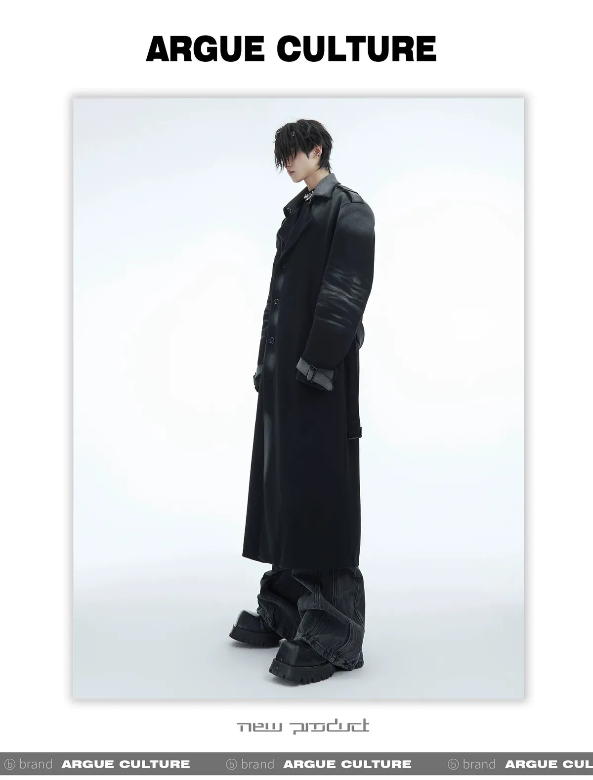 ARGUE 漸層做舊 廓形 大衣(黑色)