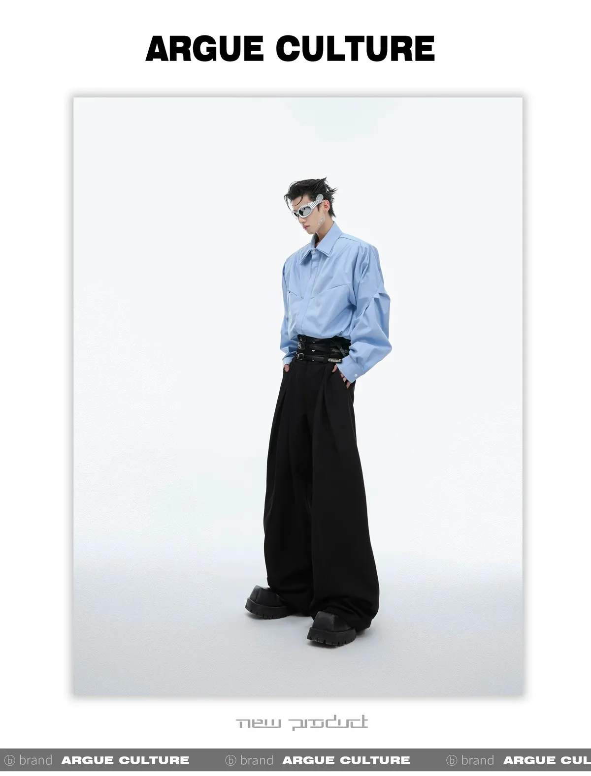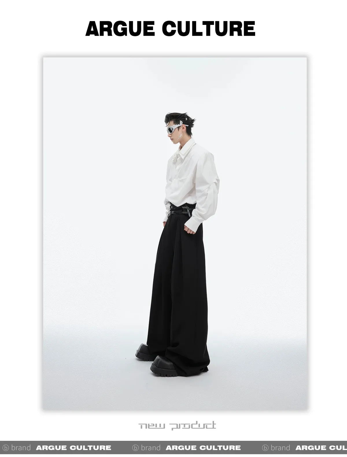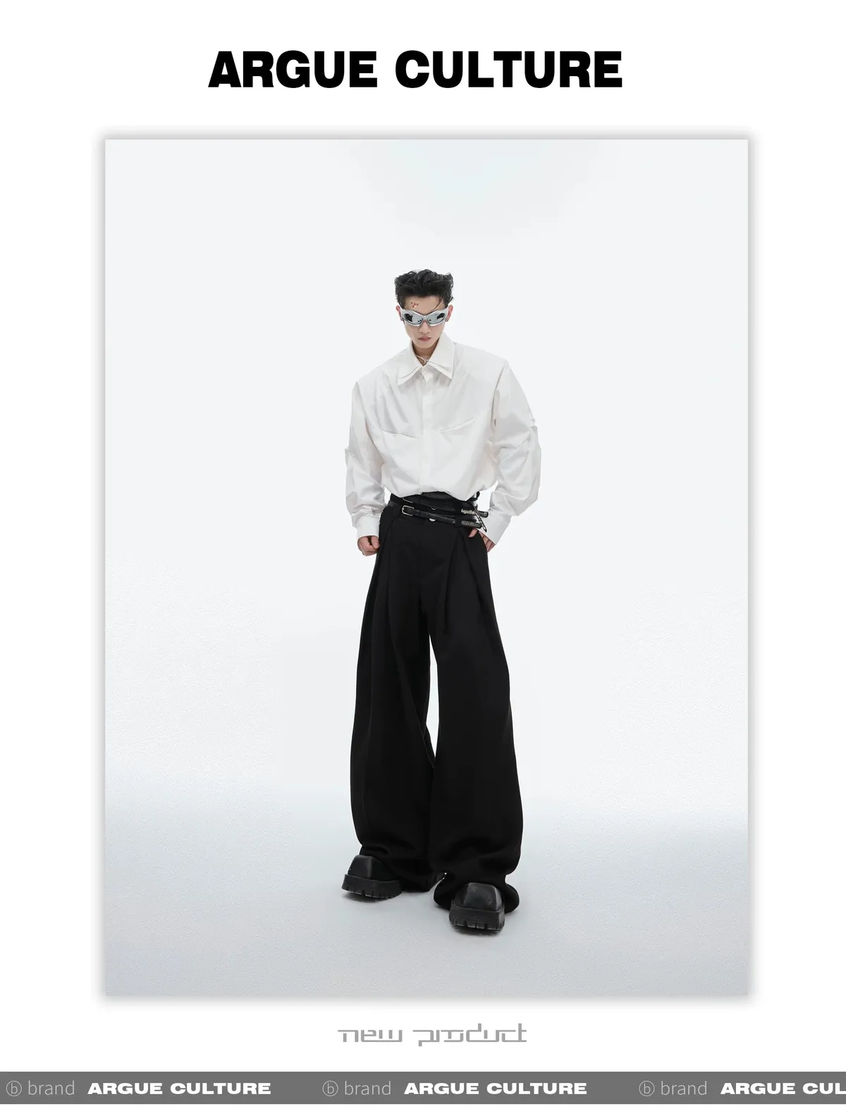 ARGUE 解構分割 卯釘 毛呢 西裝褲(黑/灰)