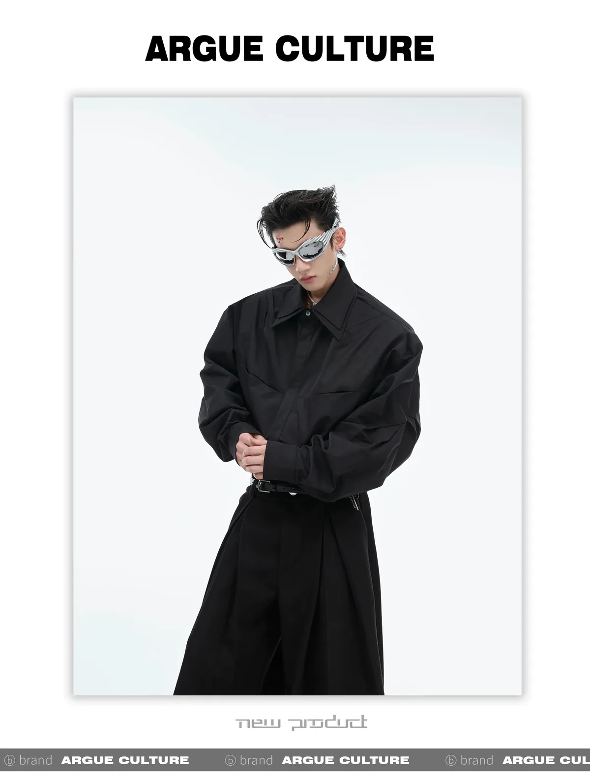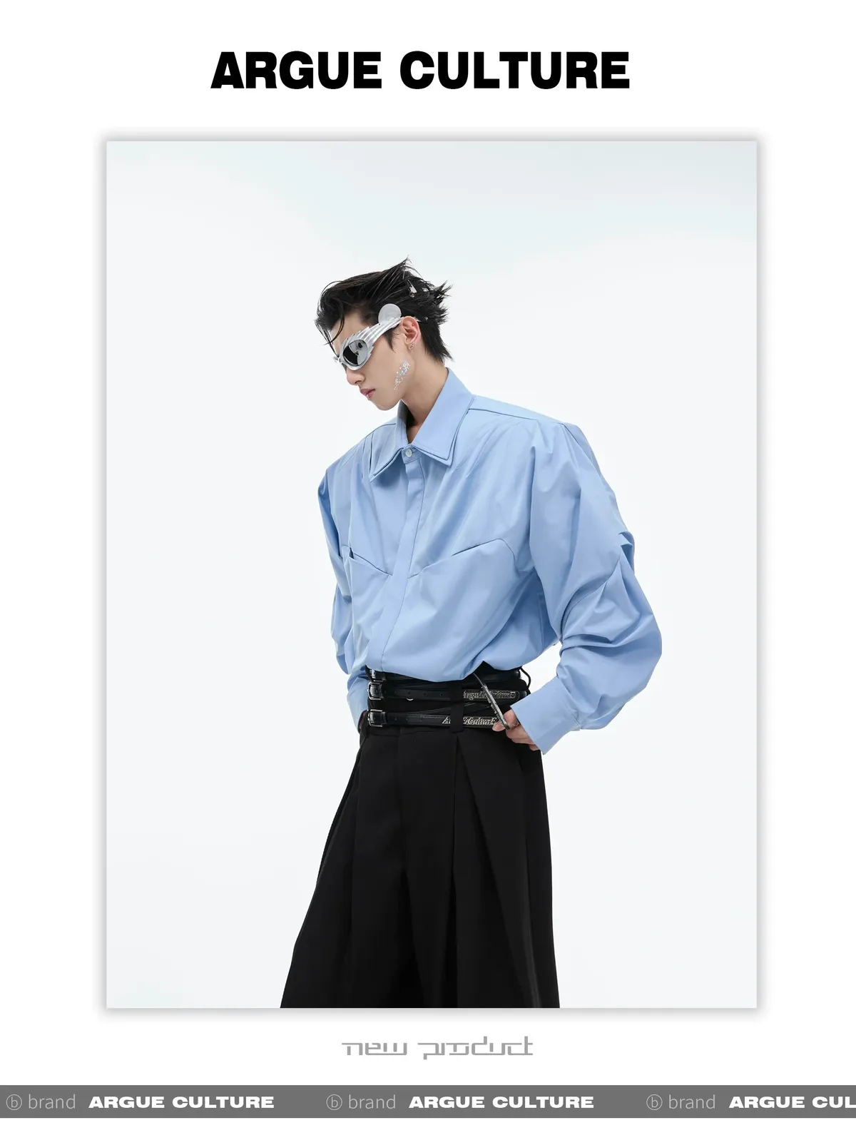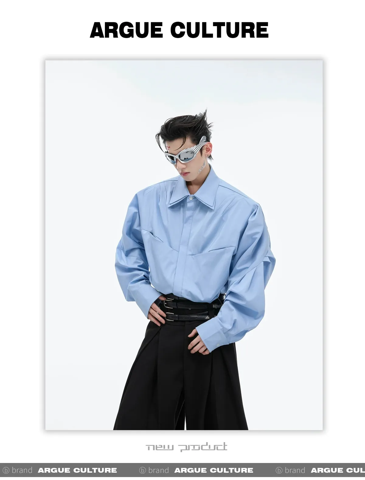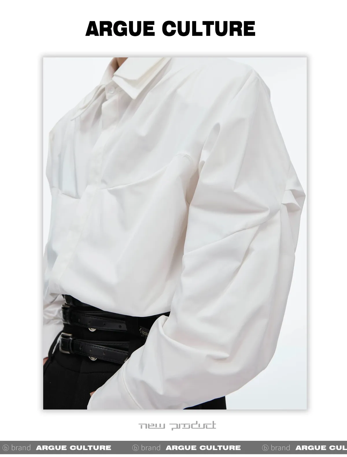 ARGUE 設計感 解構 雙層領 長袖 襯衫(黑/白/藍)
