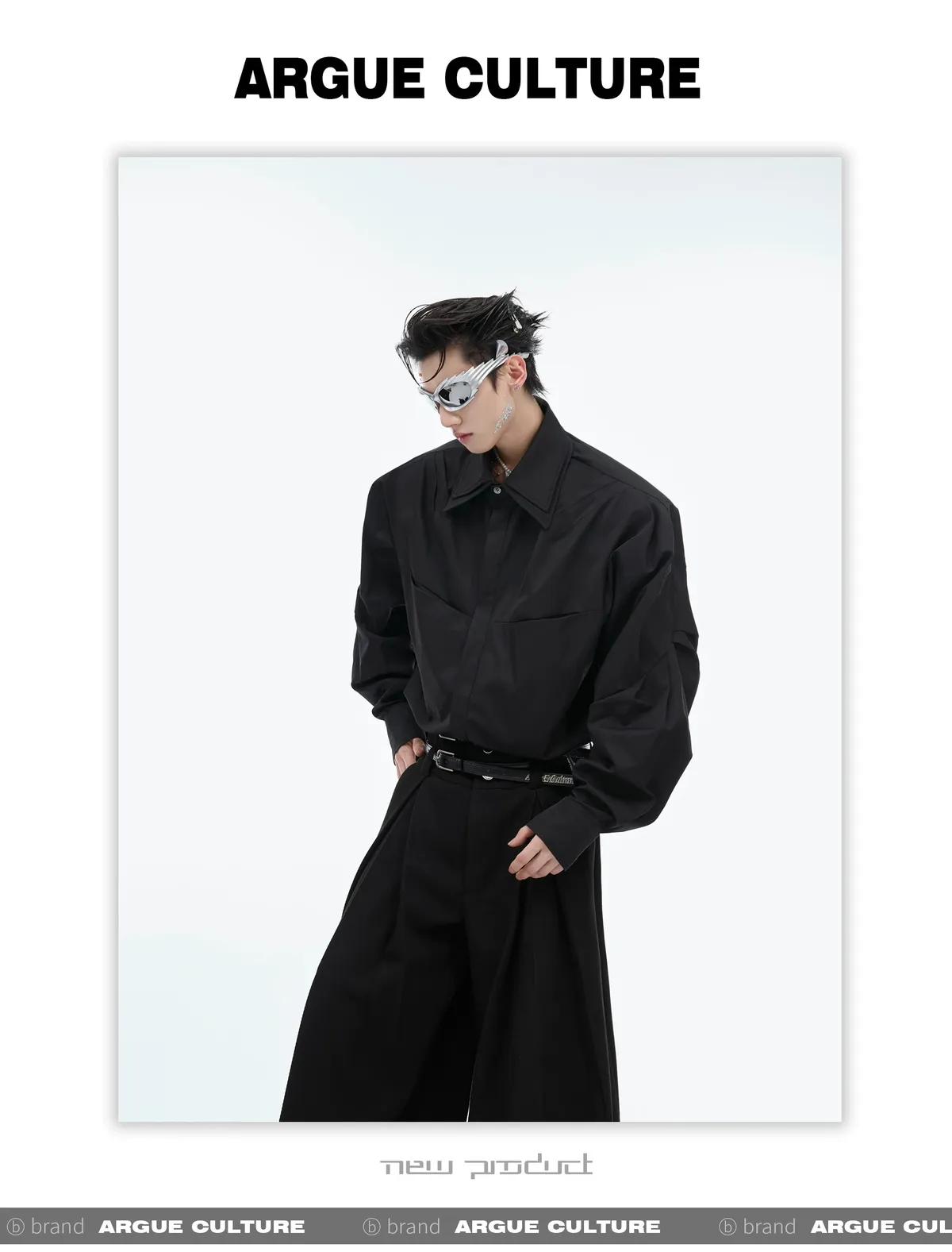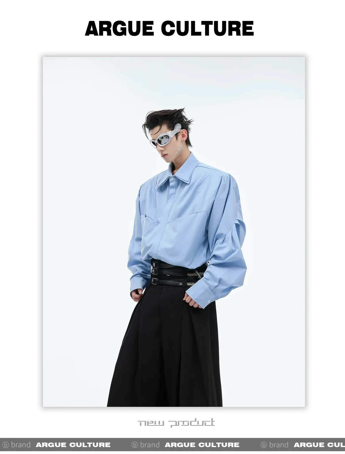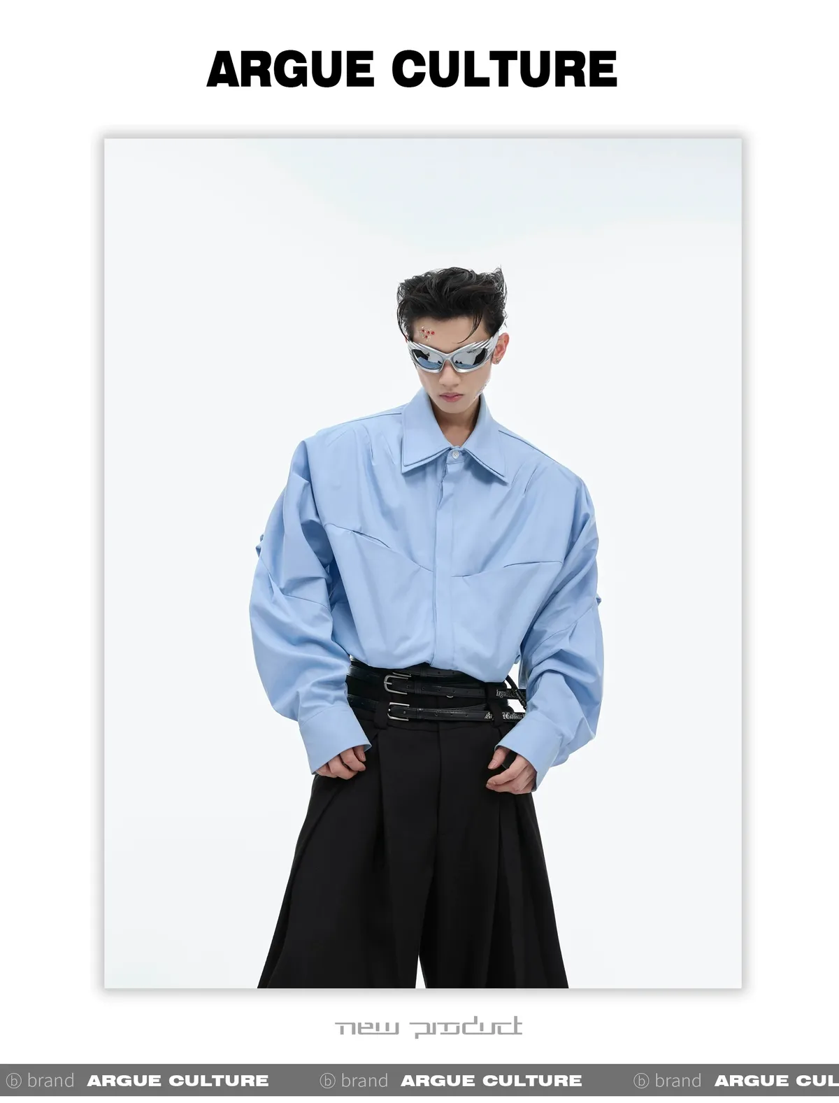 ARGUE 設計感 解構 雙層領 長袖 襯衫(黑/白/藍)