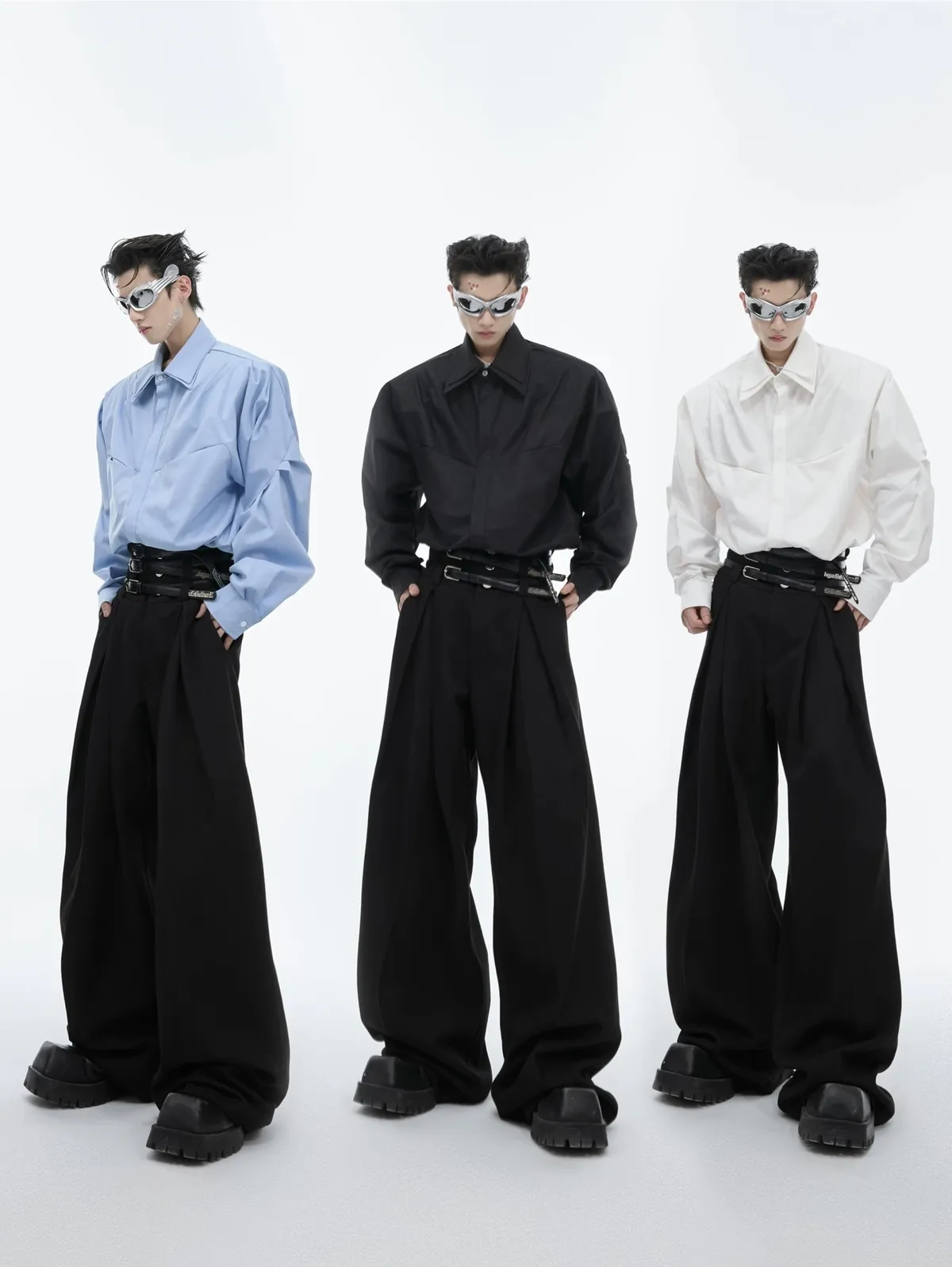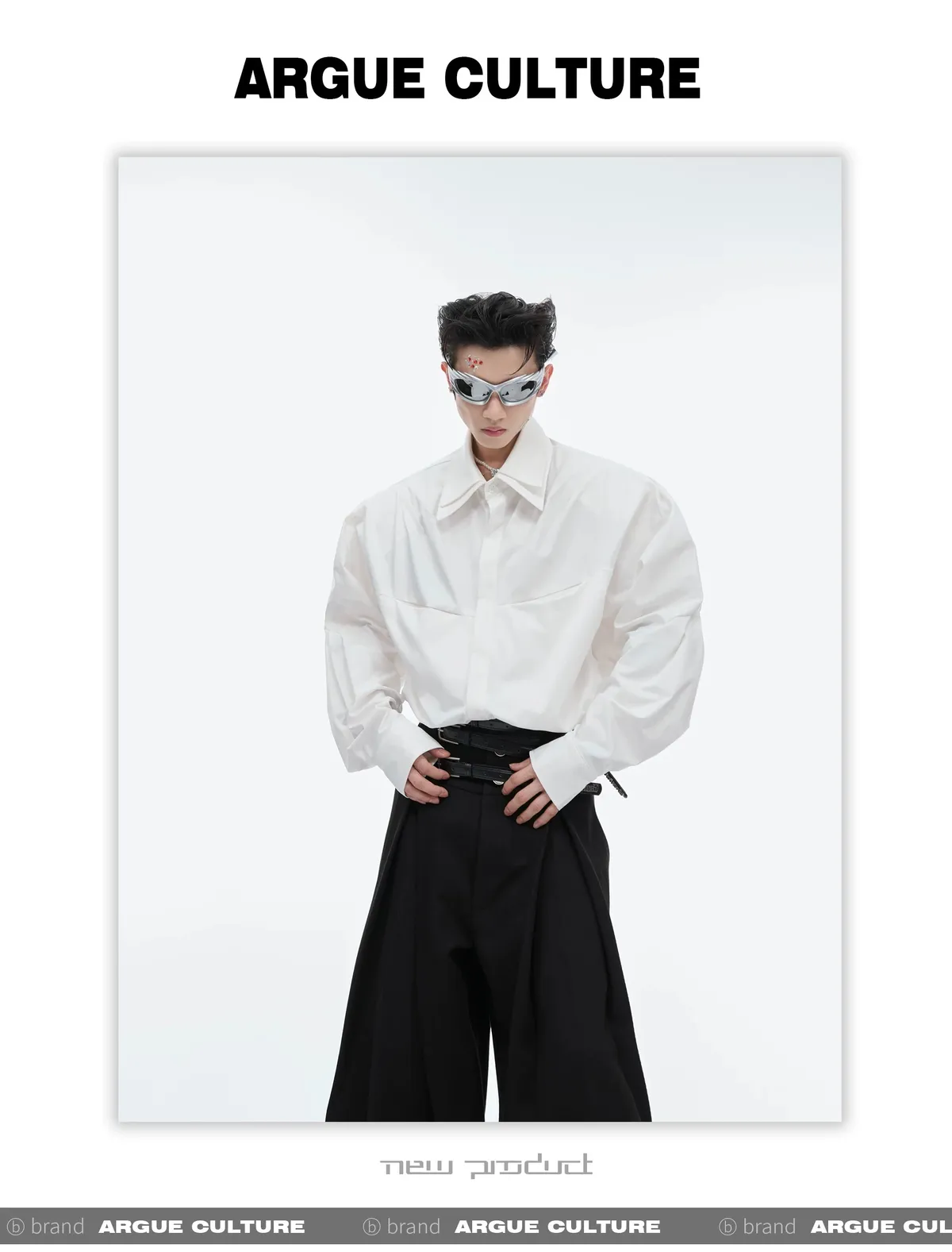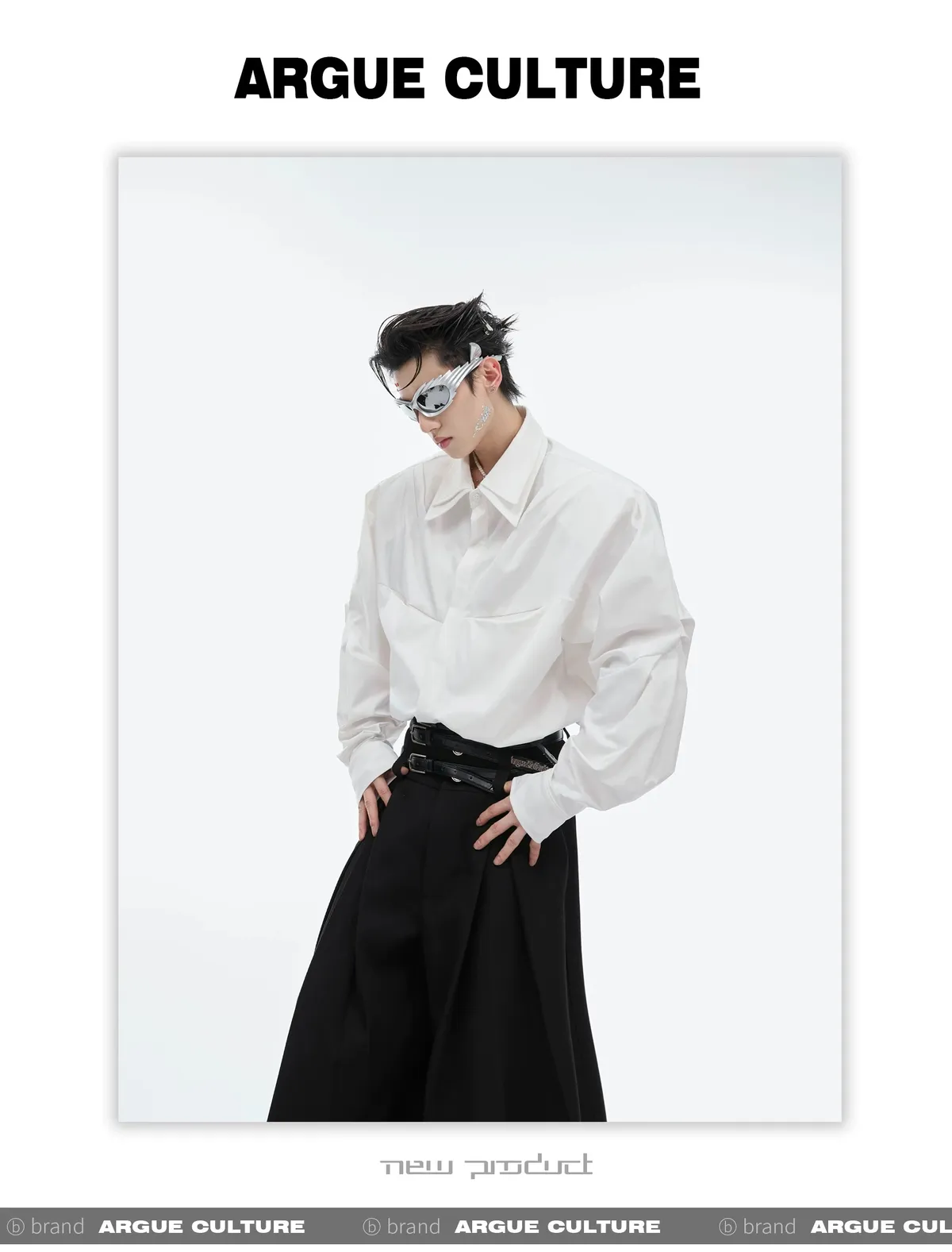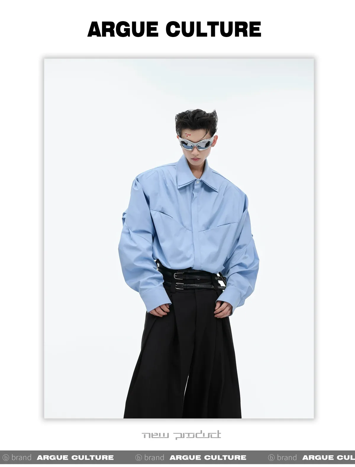 ARGUE 設計感 解構 雙層領 長袖 襯衫(黑/白/藍)
